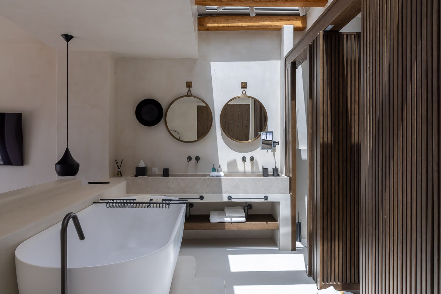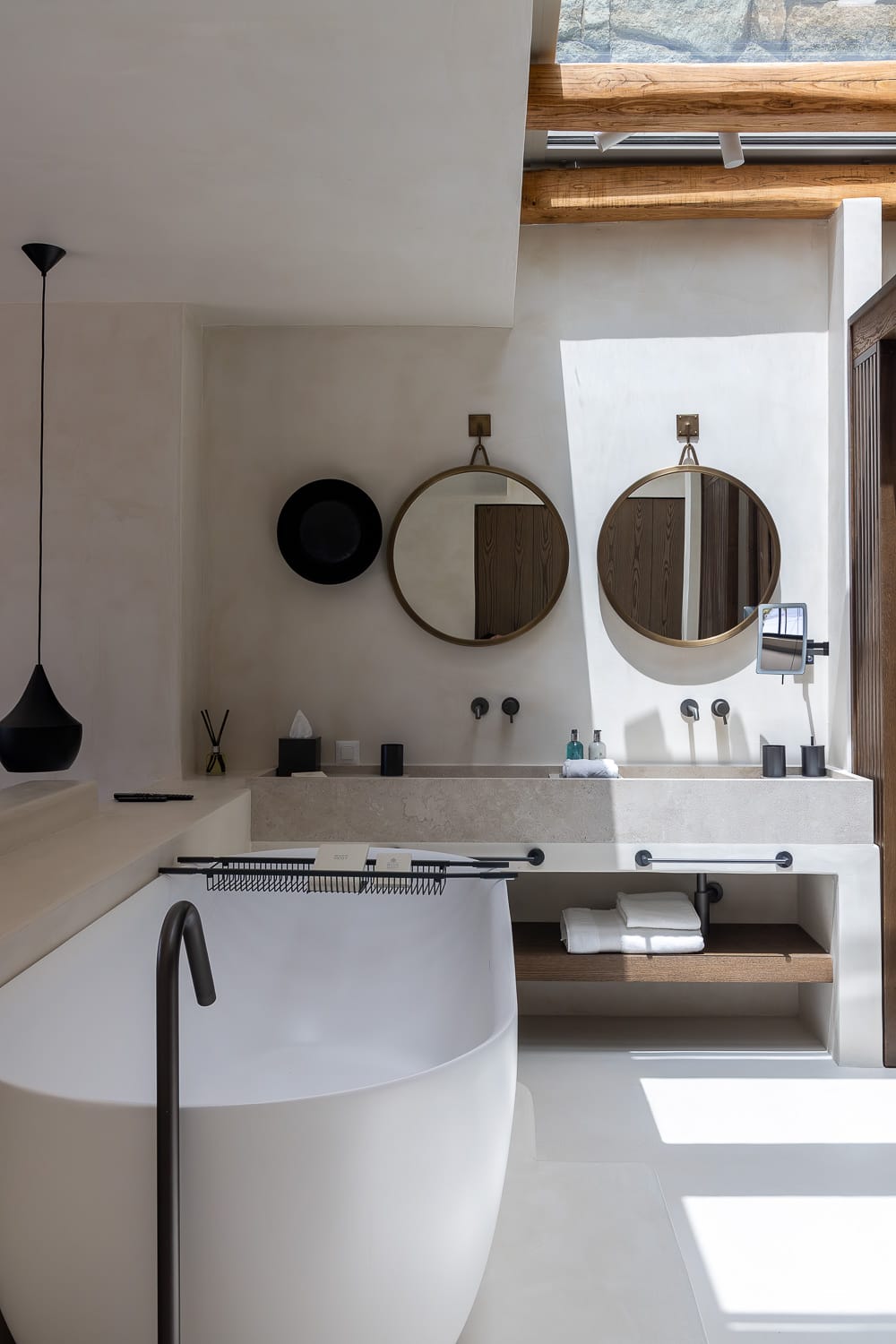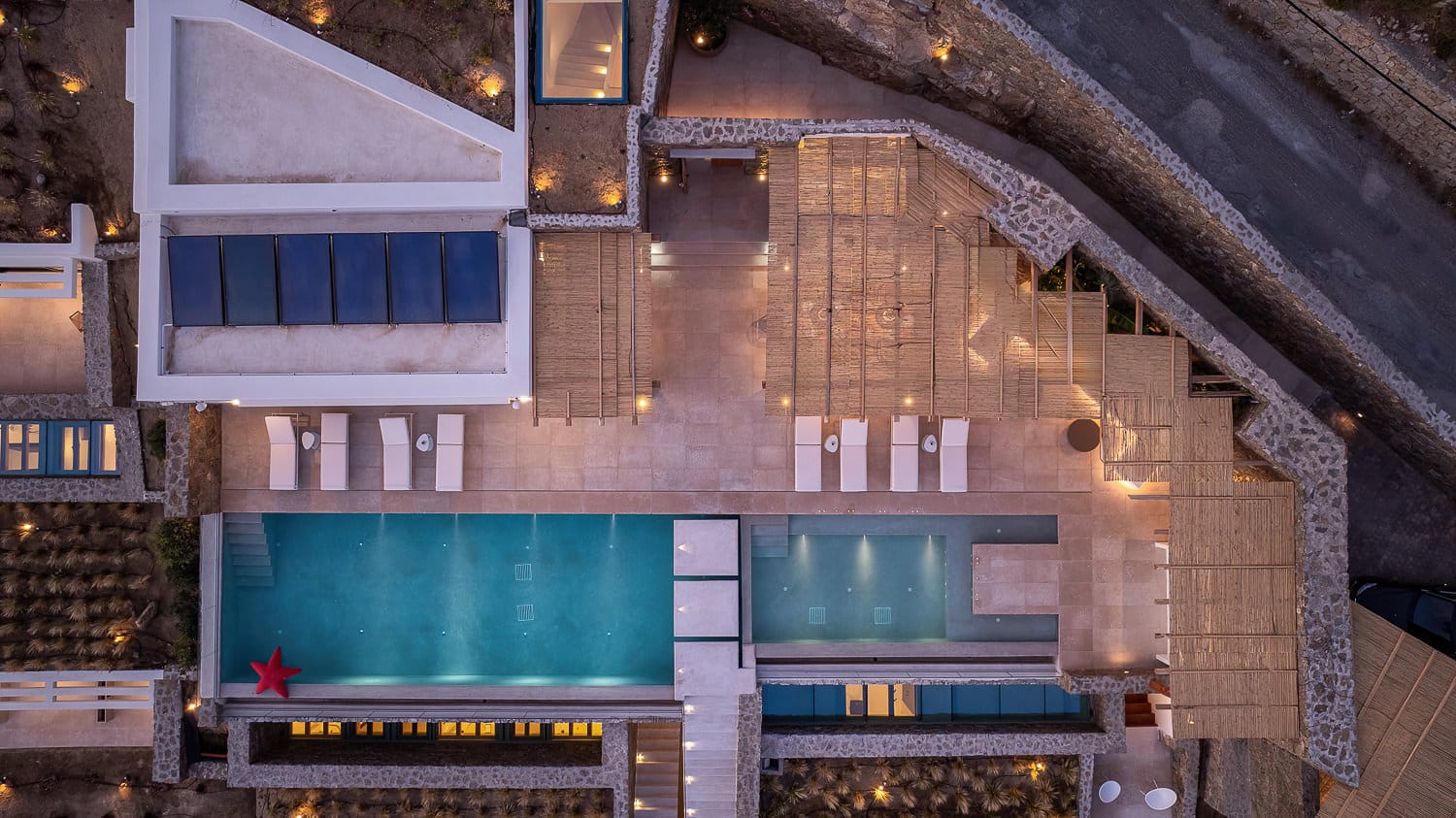 Both villas are ideally situated in Houlakia, offering serene privacy while being just a short drive from Mykonos Town. Guests can explore world-renowned beaches, vibrant nightlife, and cultural landmarks while retreating to the peace and luxury of their villa.