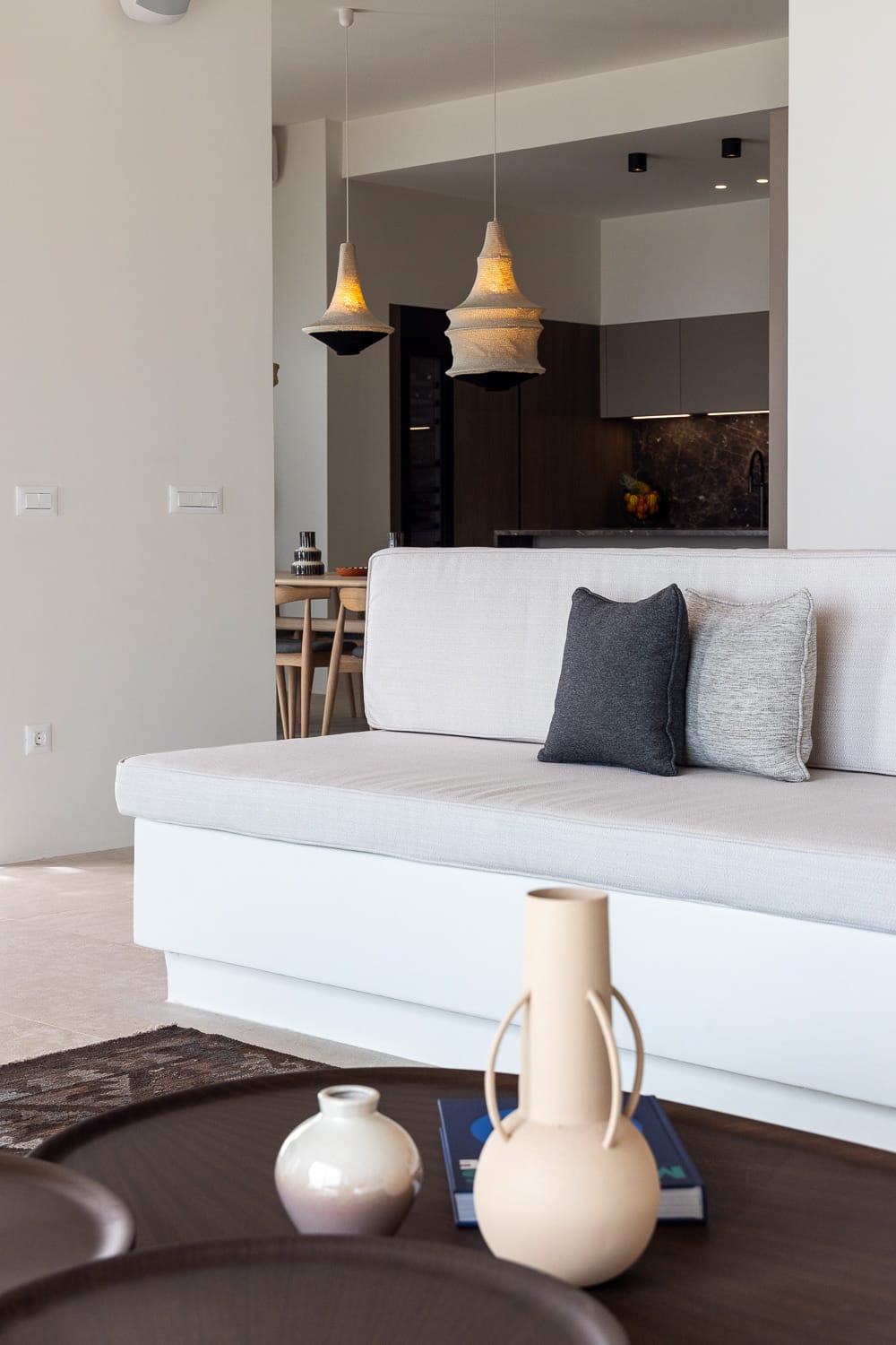 Horizon Analema Villa sets the stage for sophisticated living. The open-plan living area is a haven of comfort and style, featuring elegant furnishings, tasteful décor, and seamless indoor-outdoor flow. Large windows flood the space with natural light and frame the villa's stunning surroundings.