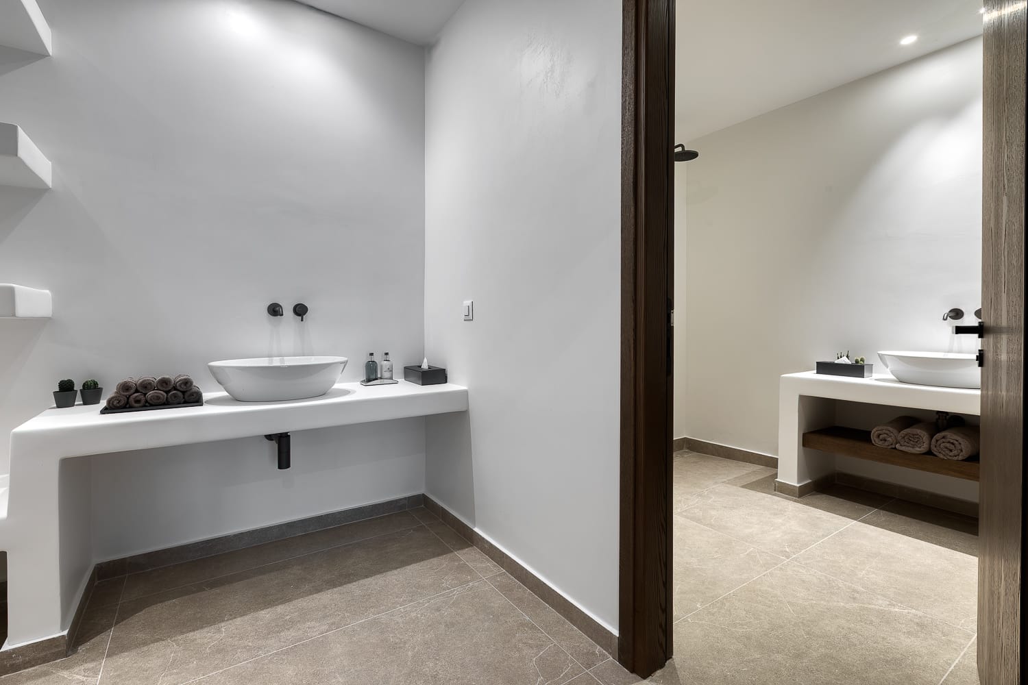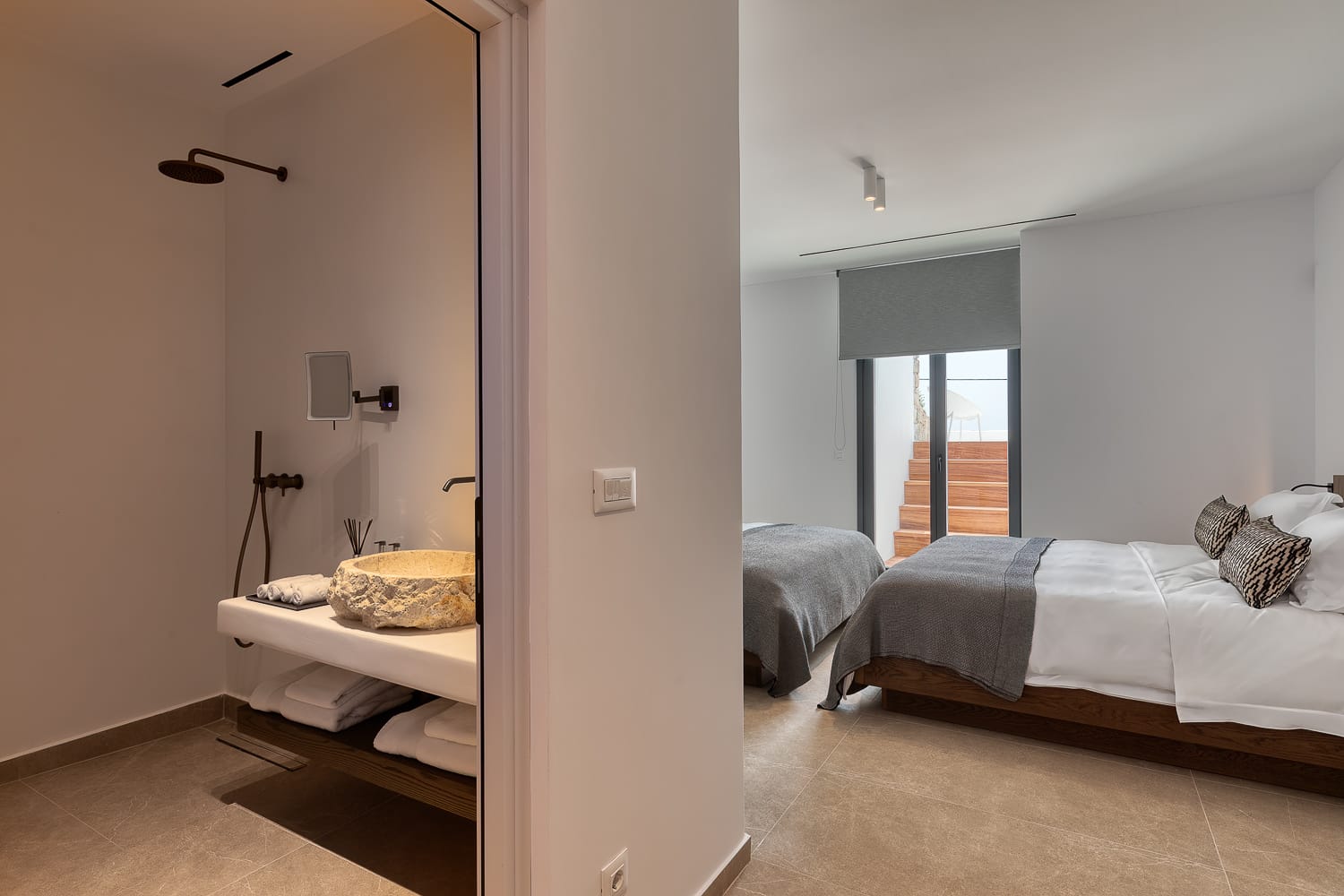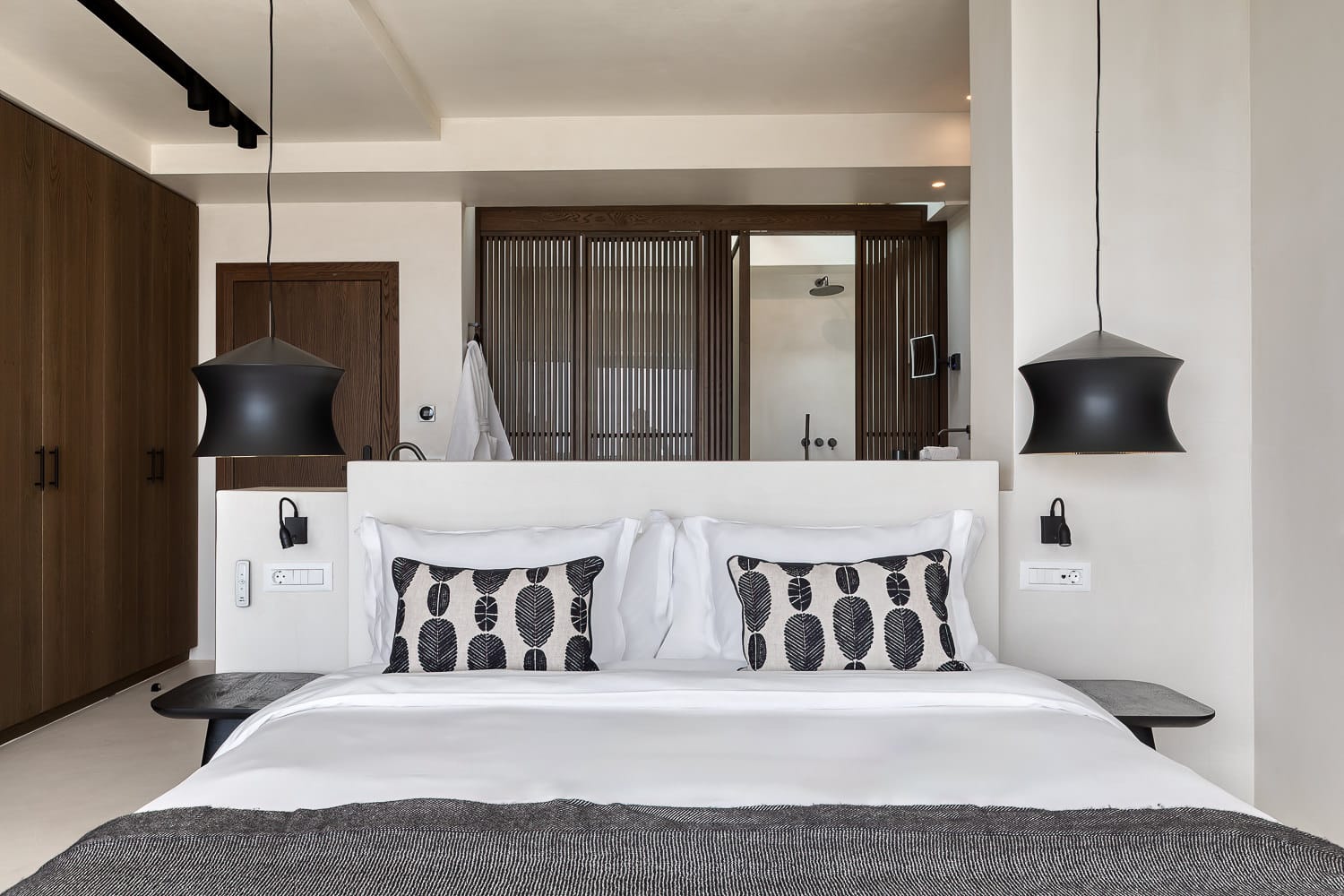 Horizon Analema Villa comfortably accommodates up to twelve guests across six spacious bedrooms, each with a private en-suite bathroom. These serene retreats are designed for ultimate relaxation, featuring plush bedding, premium furnishings, and large windows that provide captivating sea or garden views. Bathrooms are finished with designer fixtures and stocked with Molton Brown amenities, offering a five-star experience.