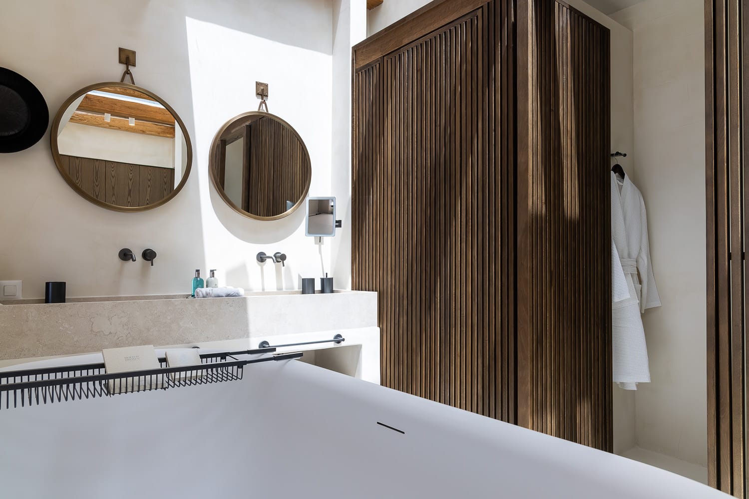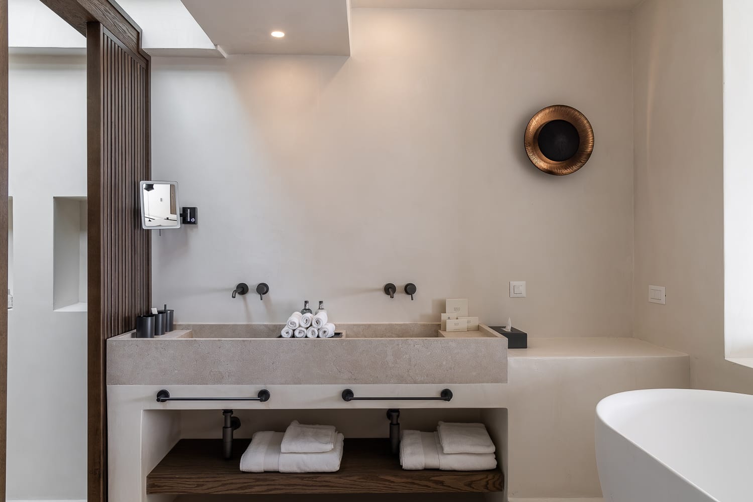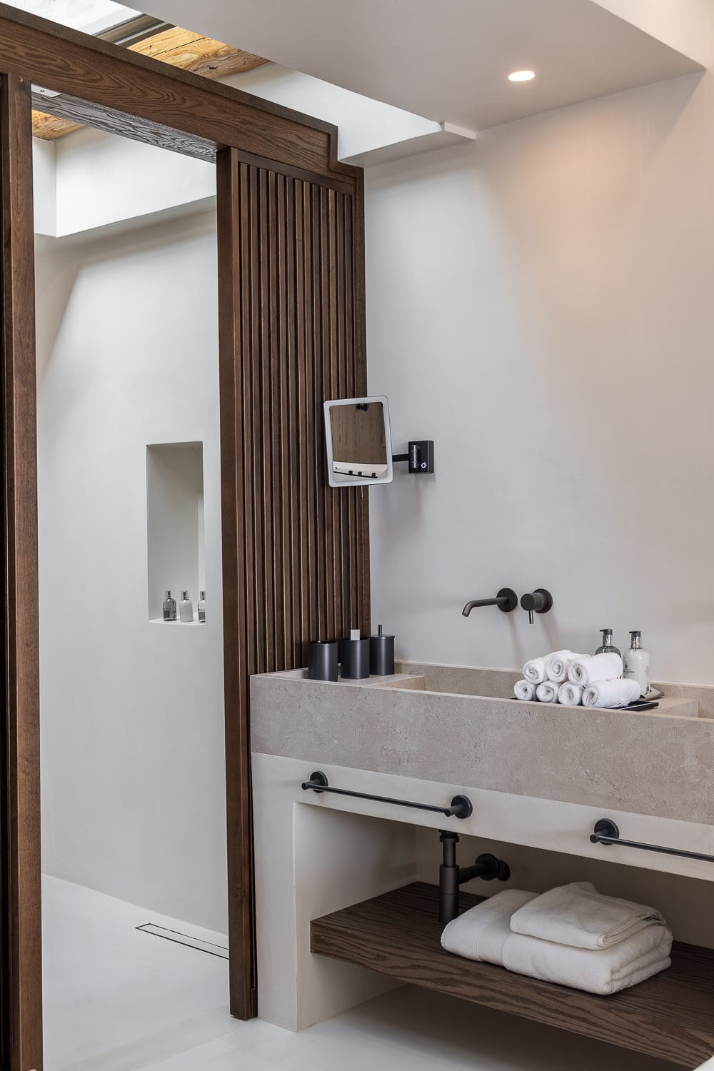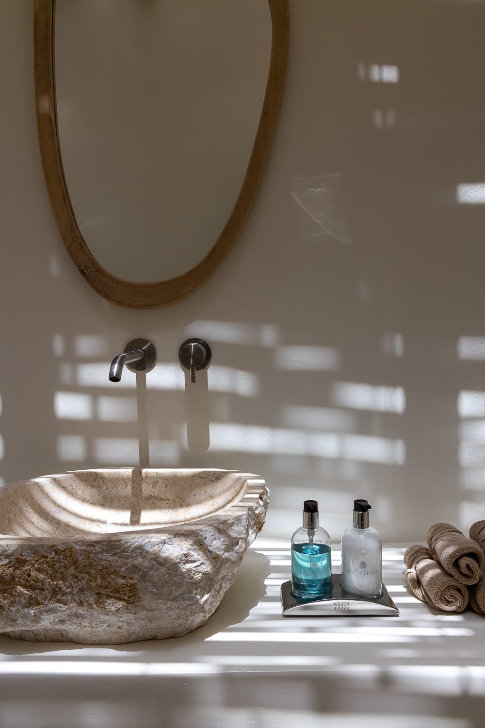 Horizon Analema Villa comfortably accommodates up to twelve guests across six spacious bedrooms, each with a private en-suite bathroom. These serene retreats are designed for ultimate relaxation, featuring plush bedding, premium furnishings, and large windows that provide captivating sea or garden views. Bathrooms are finished with designer fixtures and stocked with Molton Brown amenities, offering a five-star experience.