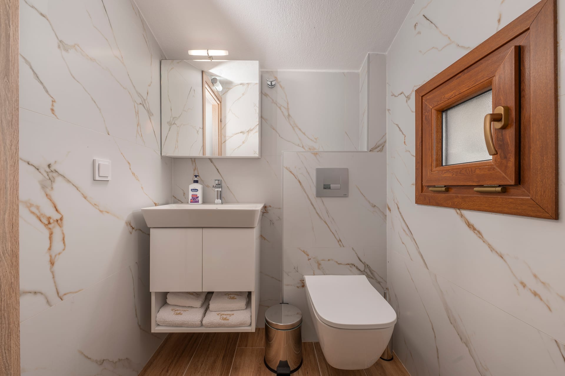 The kitchen is fully equipped including electric oven and stove, microwave, toaster, water boiler, dishwasher, Nespresso coffee machine, fridge with freezer.