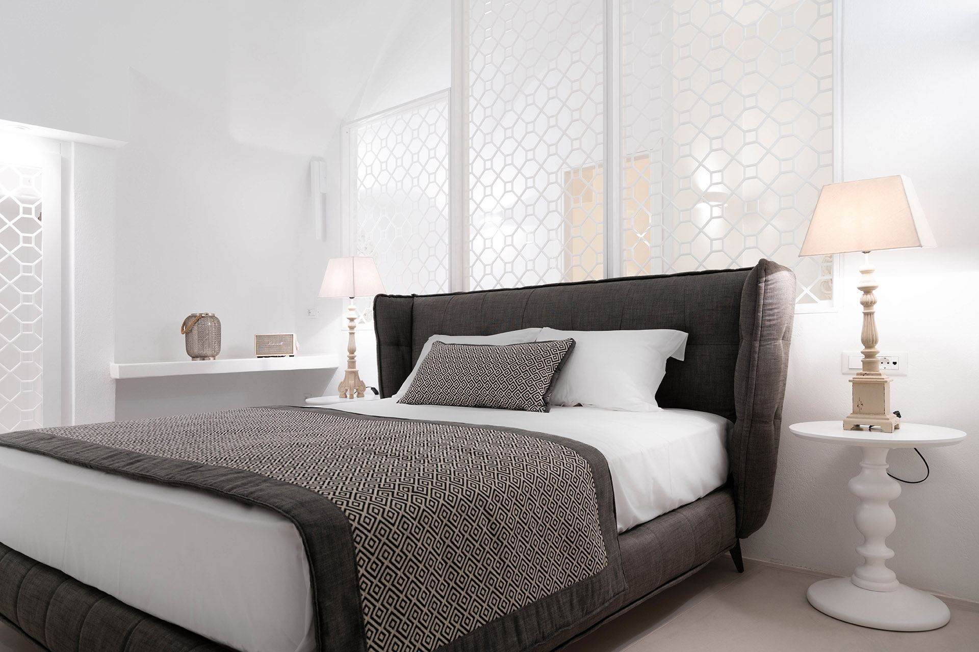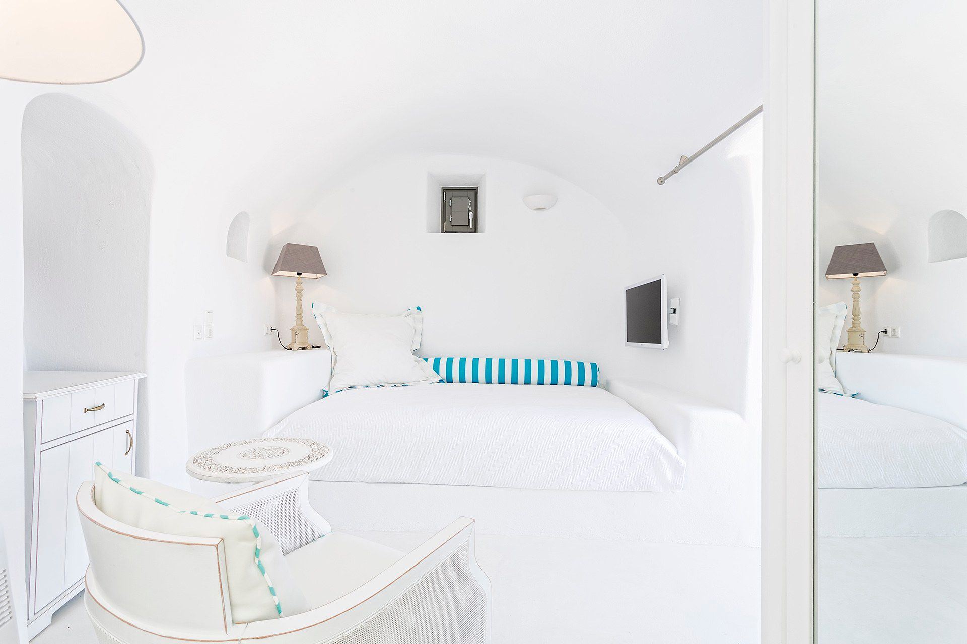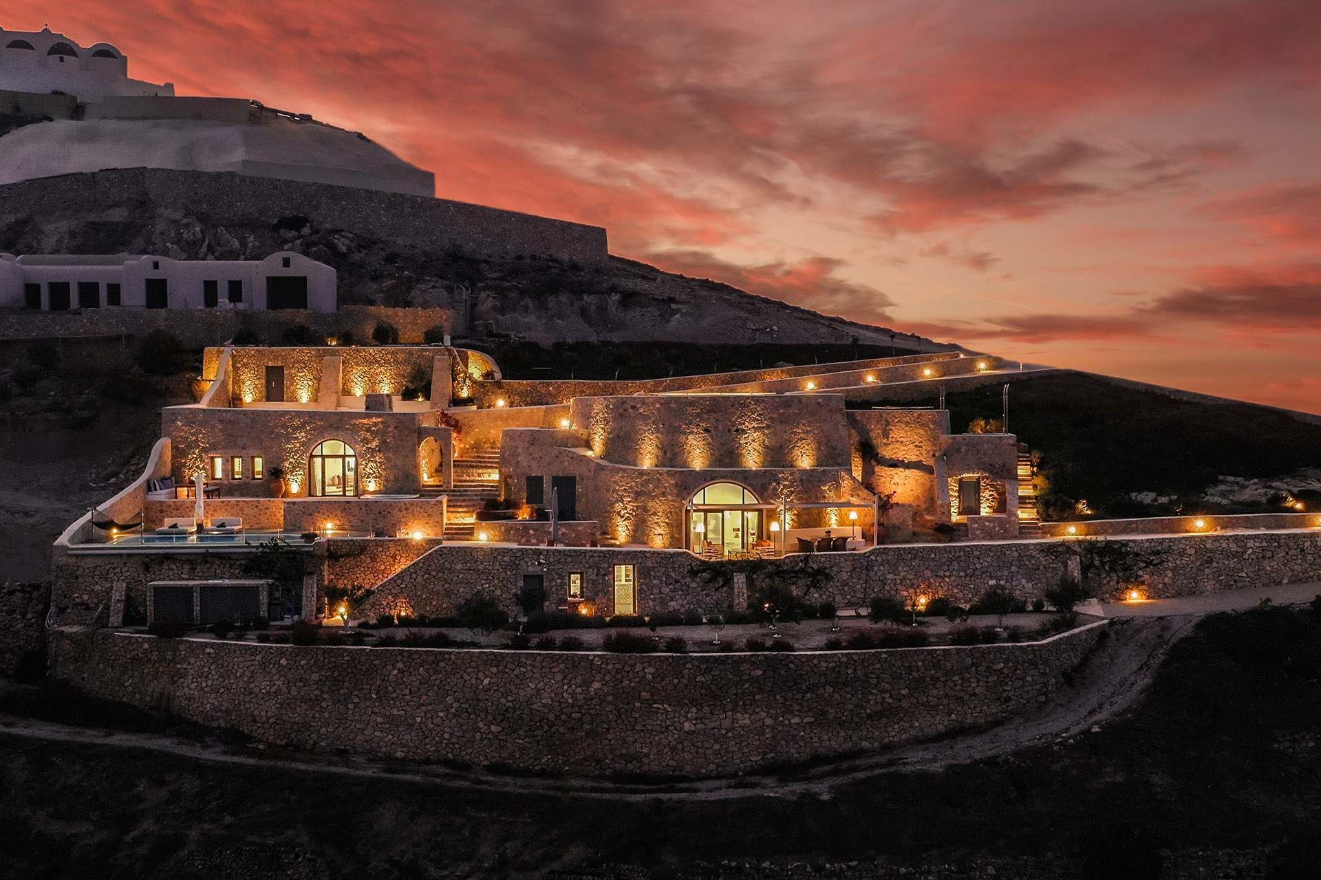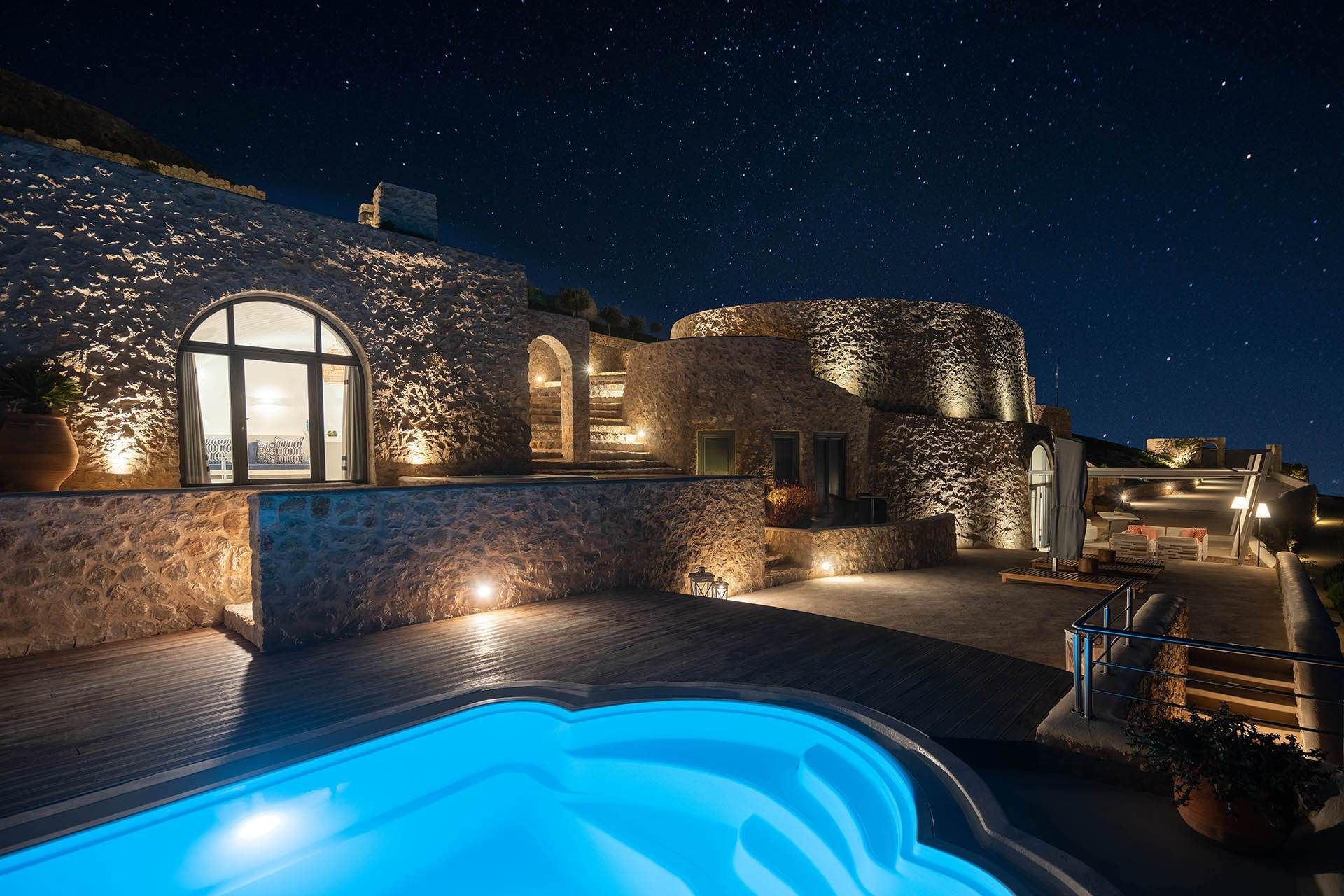 Located in Pyrgos Kallistis, in the middle of the island, this luxury Santorini villa welcomes up to 10 guests across 5 bedrooms. A renovated heritage property of ingenious design, Celadon was originally a lime kiln that has been carefully restored and integrated into this unique architecture—balancing clean-lined living with a strong sense of place. Set inland for privacy yet within easy reach of Santorini’s highlights, it is the perfect option for a relaxing and luxurious vacation.