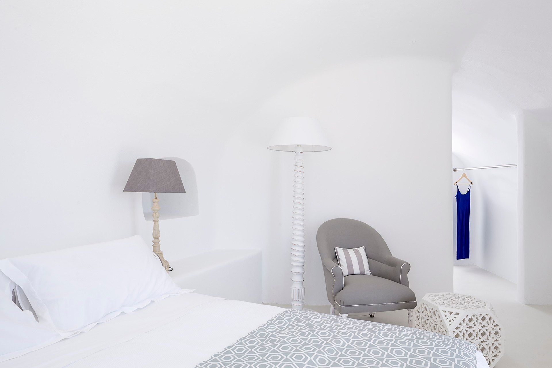Wide, sun-washed outdoor areas feature a private infinity pool, unobstructed sea views, a separate stone-built outdoor jacuzzi on a raised platform, a shaded lounge area under a pergola, and luxurious sun beds. From the moment you step onto the terrace, the landscape takes over. You will find plenty of cozy spots to hang out, grab a snack, or just enjoy the starry night. Surrounded by native greenery and herb bushes, Celadon also offers a petite roof terrace made for sunrise yoga.