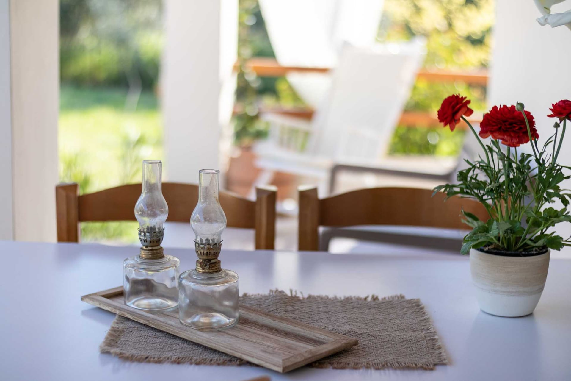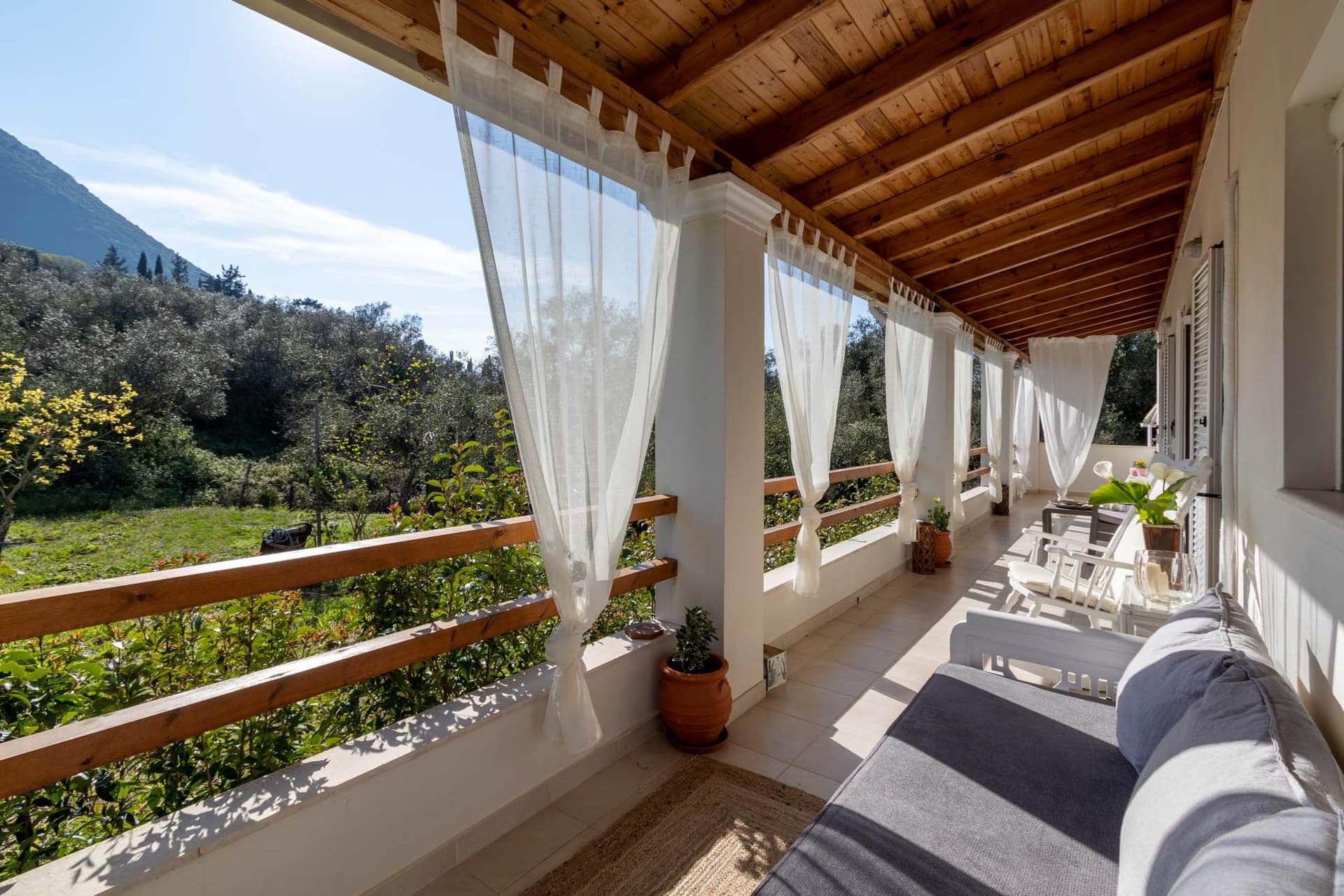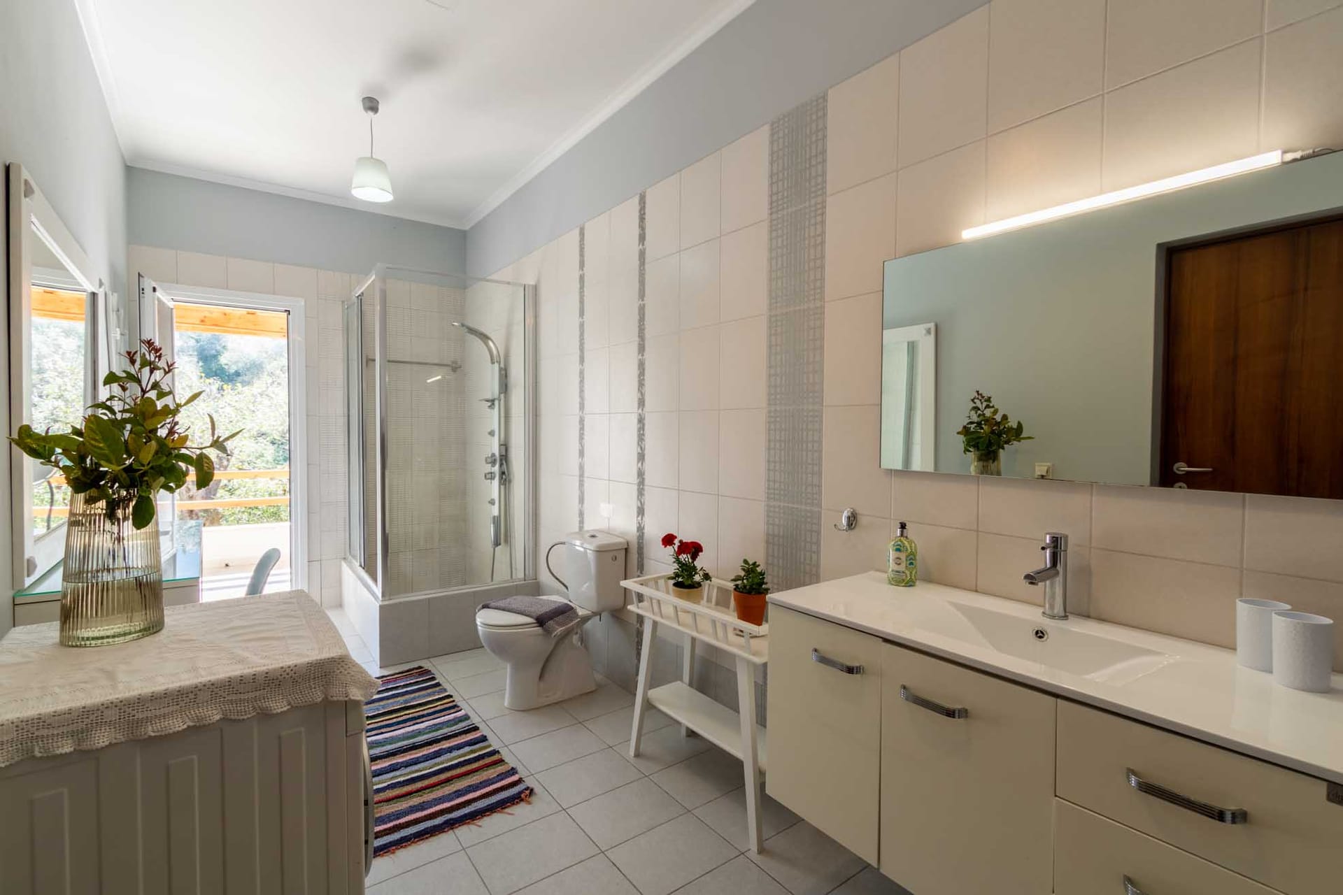 Double bedroom (1,40m x 2,00m) incl. sat. LCD TV 24'' and access to common balcony with view to garden, olive grove and Vatos hill