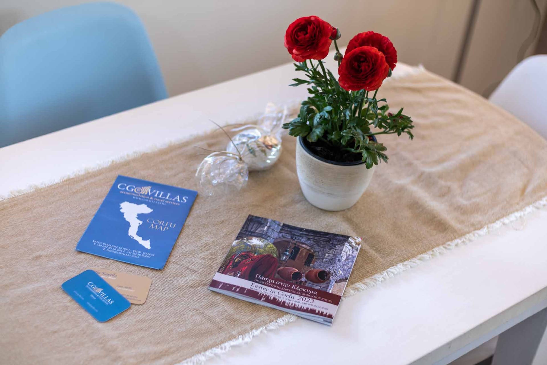 Double or twin bedroom with new king size Coco-Mat beds and mattresses which are also convertible into single beds (0,90m x 2,00m) incl. sat. LCD TV 24'' and access to common balcony with view to garden, olive grove and Vatos hill