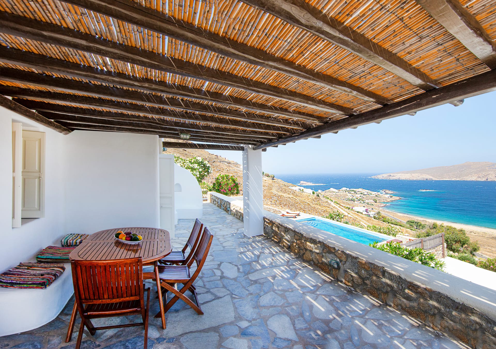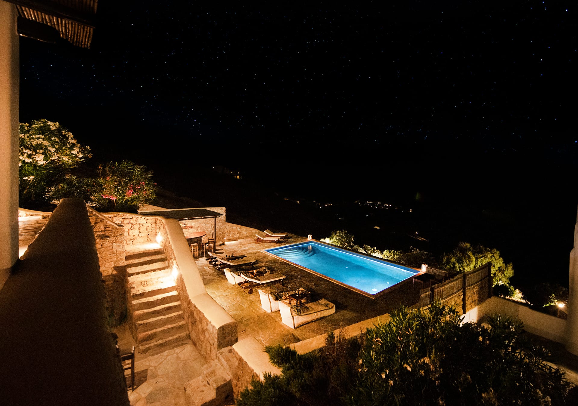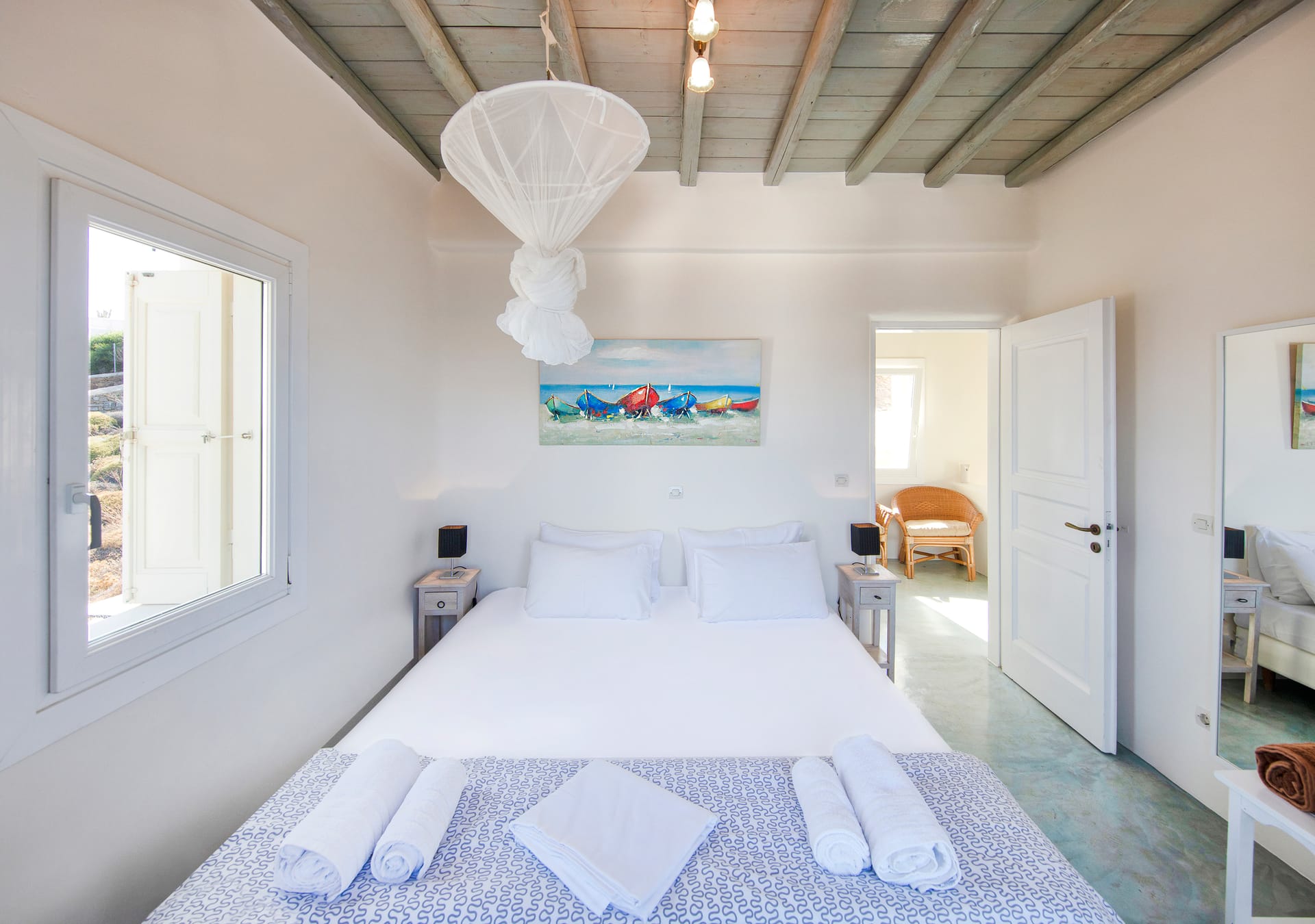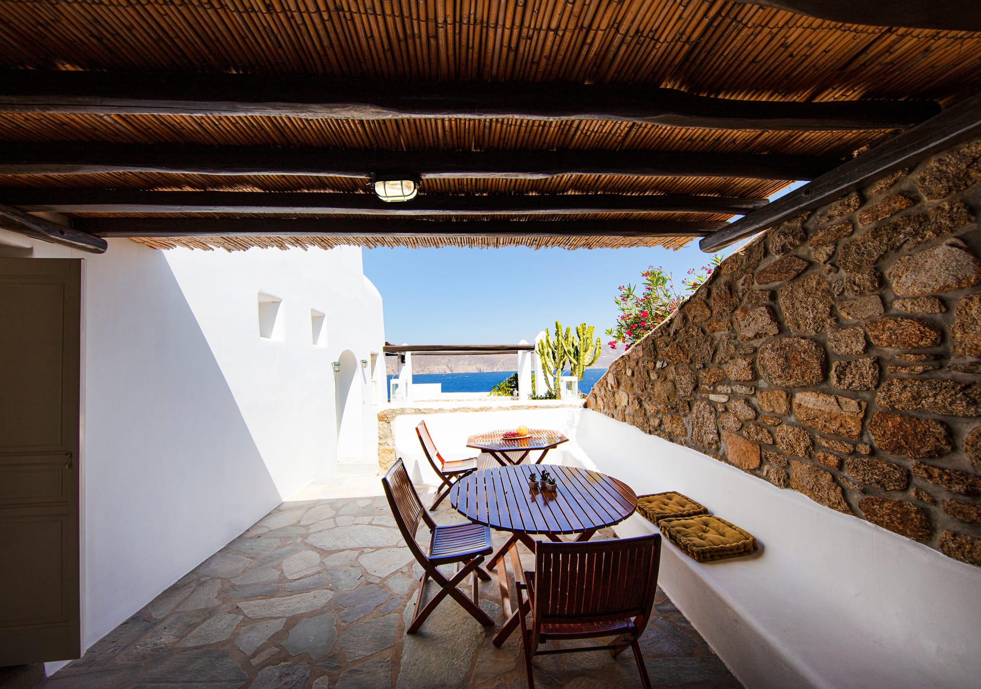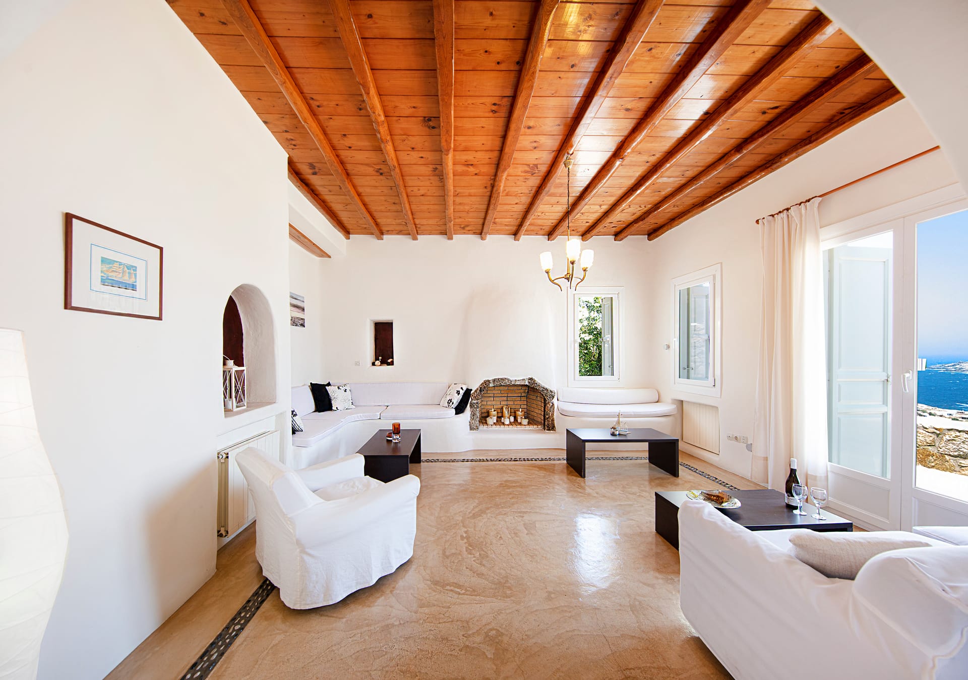 The villa enjoys a privileged position with extensive sea view over the Aegean Sea and the northern coast of the island, which unveils the true beauty of Mykonos Greece original landscapes. It is eight minutes away from Mykonos town and near to island's cosmopolitan attractions.