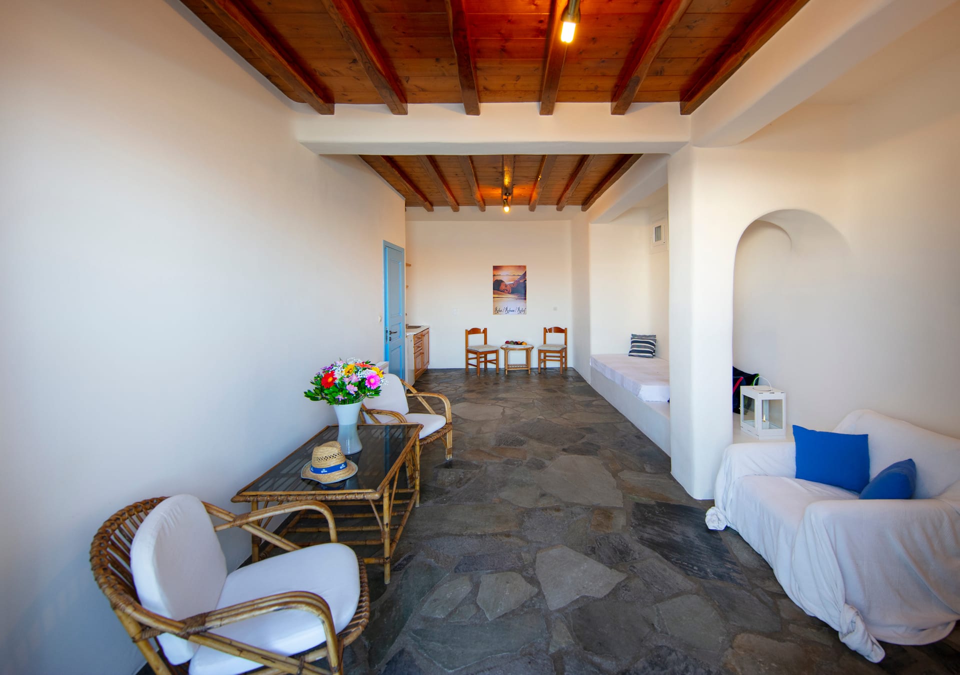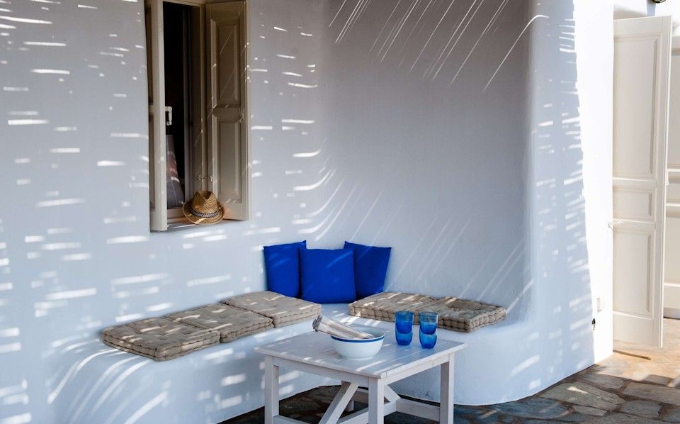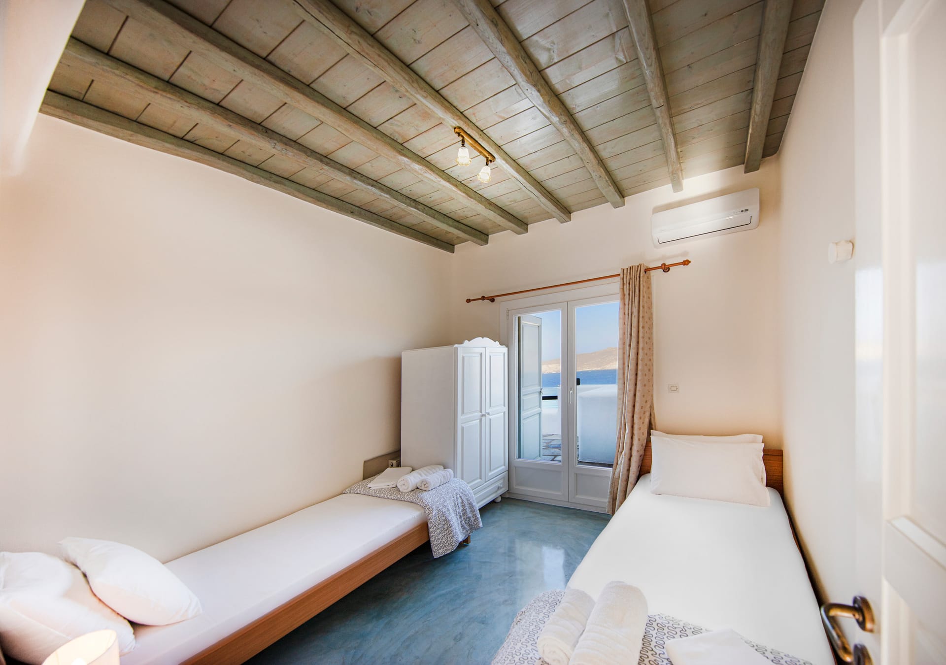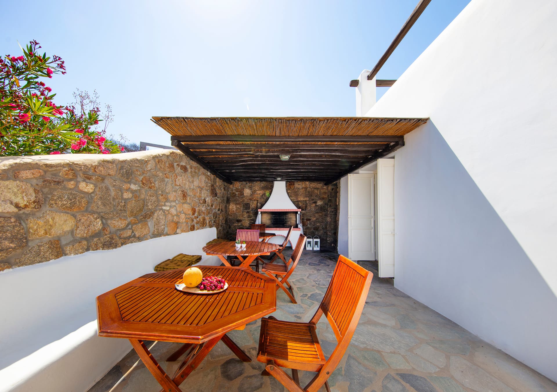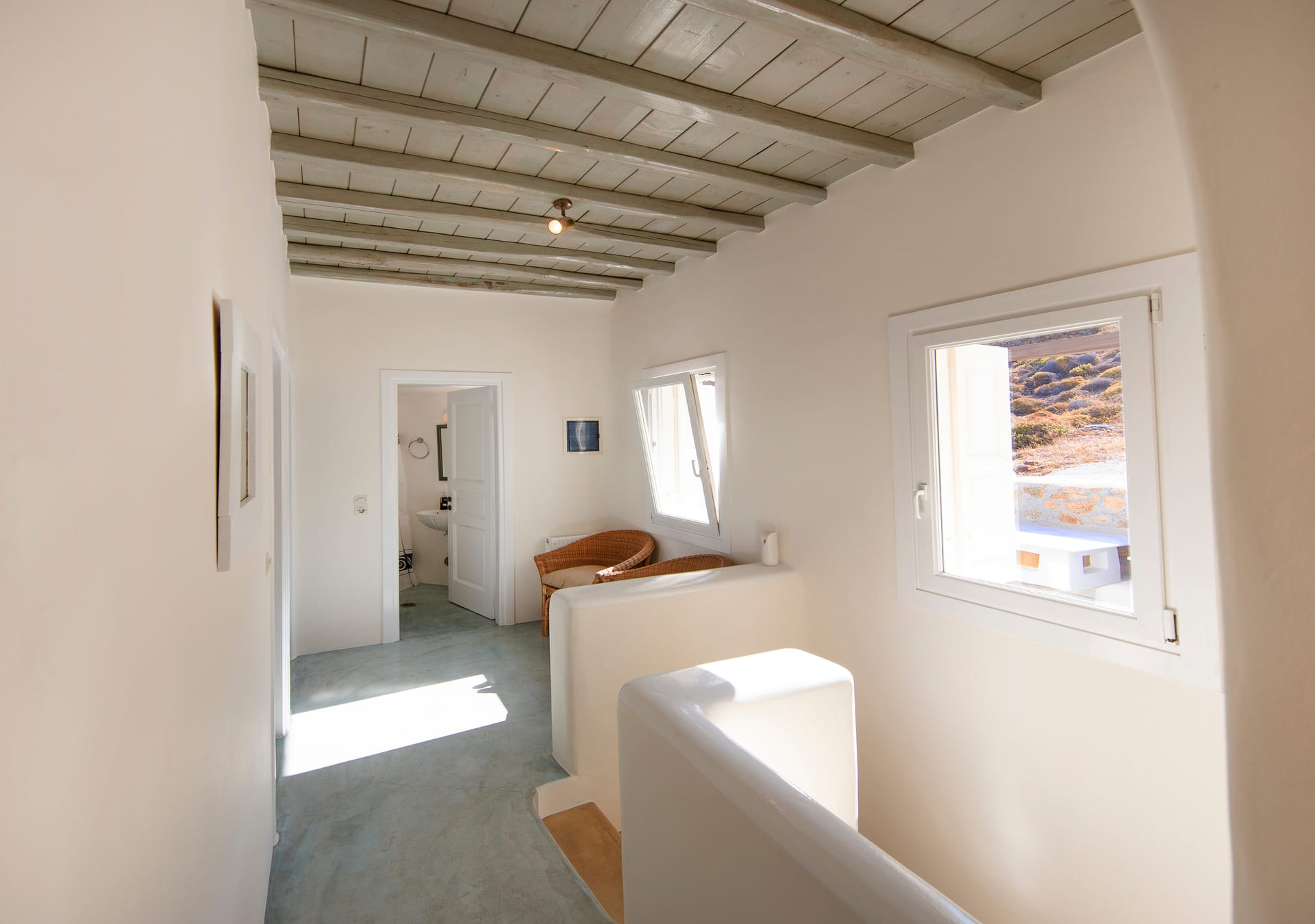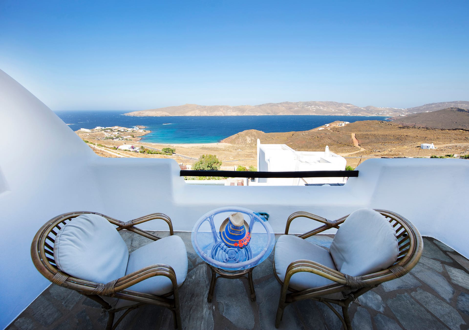 The villa enjoys a privileged position with extensive sea view over the Aegean Sea and the northern coast of the island, which unveils the true beauty of Mykonos Greece original landscapes. It is eight minutes away from Mykonos town and near to island's cosmopolitan attractions.