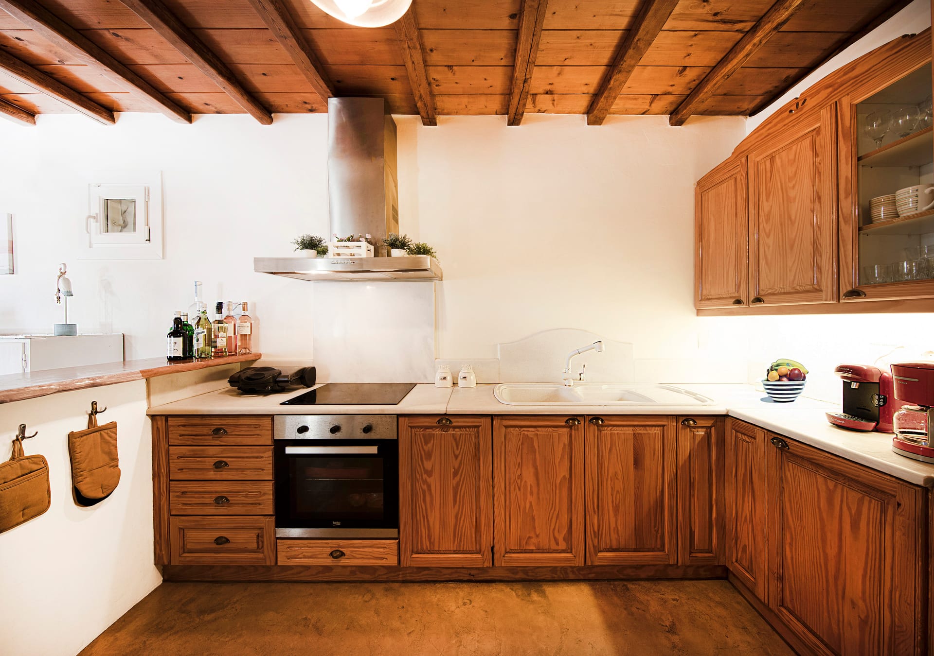 The interior of the house is fully furnished and is composed of three levels. The middle level has a very comfortable sitting room and a large kitchen with open informal dining room, very functional and nicely designed. The master bedroom with its bathroom is also situated there. On the top level there are three bedrooms (two bedrooms with double bed and one bedroom with two single beds), which are bright and spacious and have spectacular view at the sea. The lower level of the villa has its own separate entrance and includes a bedroom with a stone-build double bed, a bedroom with a semi-double bed, sitting room with stone-build single bed, a small kitchen and a bathroom.