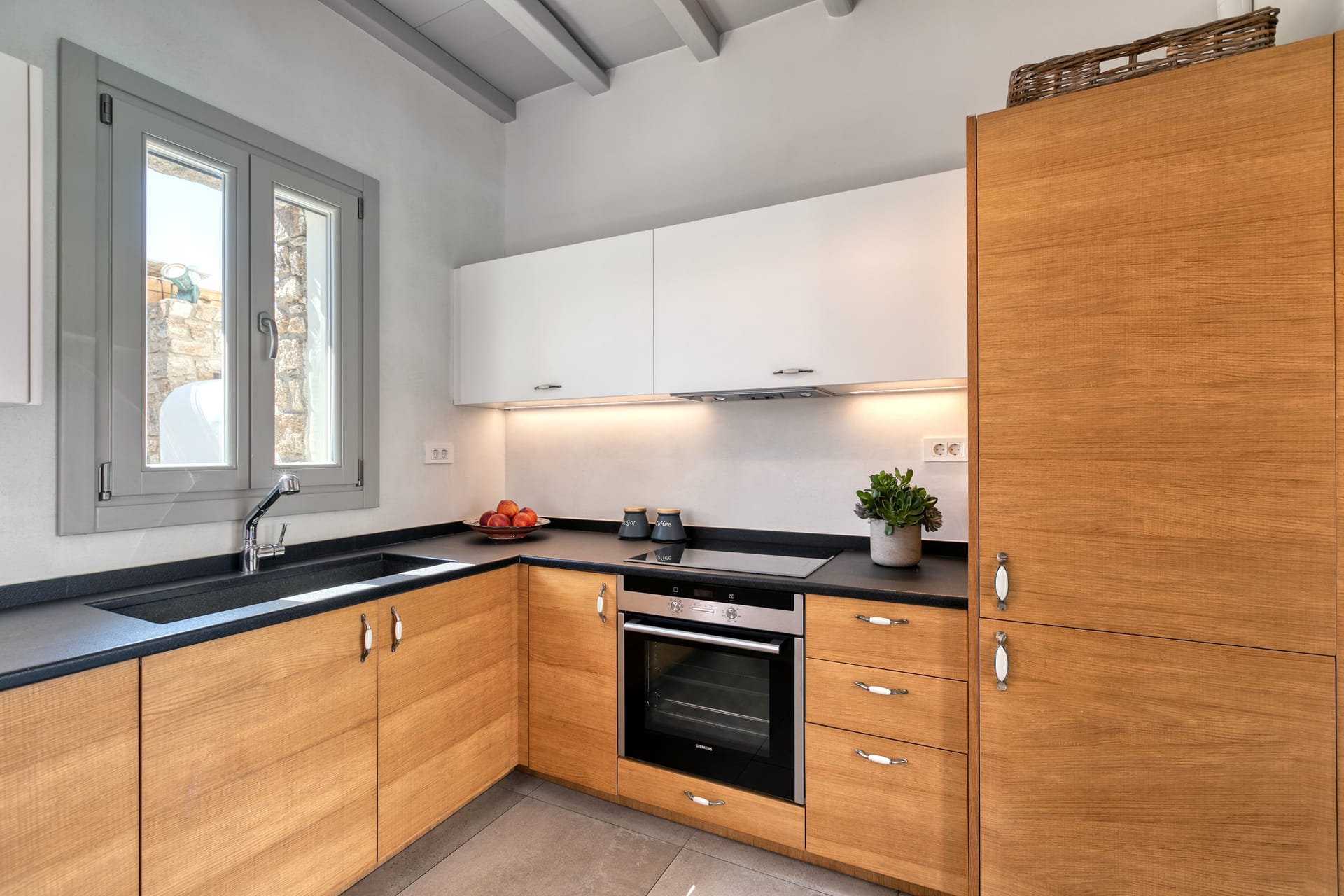 An open-plan fully equipped kitchen