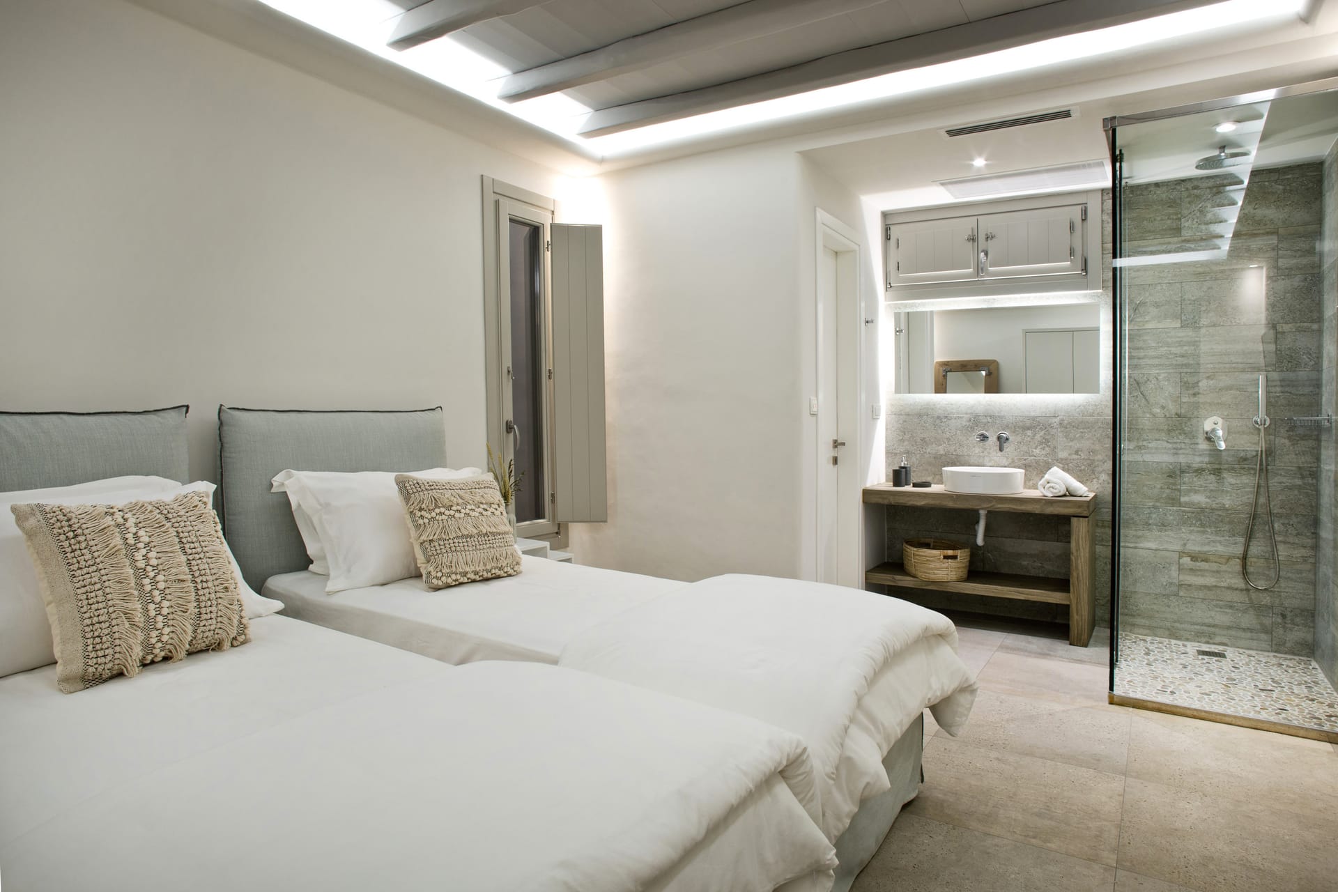 A Twin Bedroom with twin beds and an en-suite bathroom