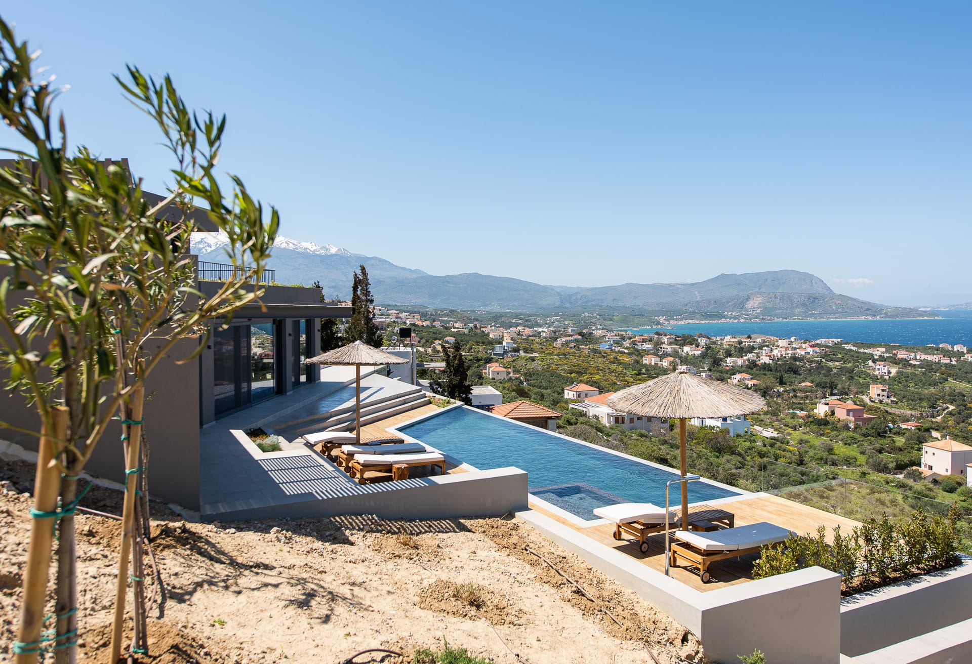 The estate can accommodate 14 guests. It is stretches on multiple levels: the ground floor, the lower ground floor and the first floor and consists of 7 en suite bedrooms total, which someone can find in the Main Villa.