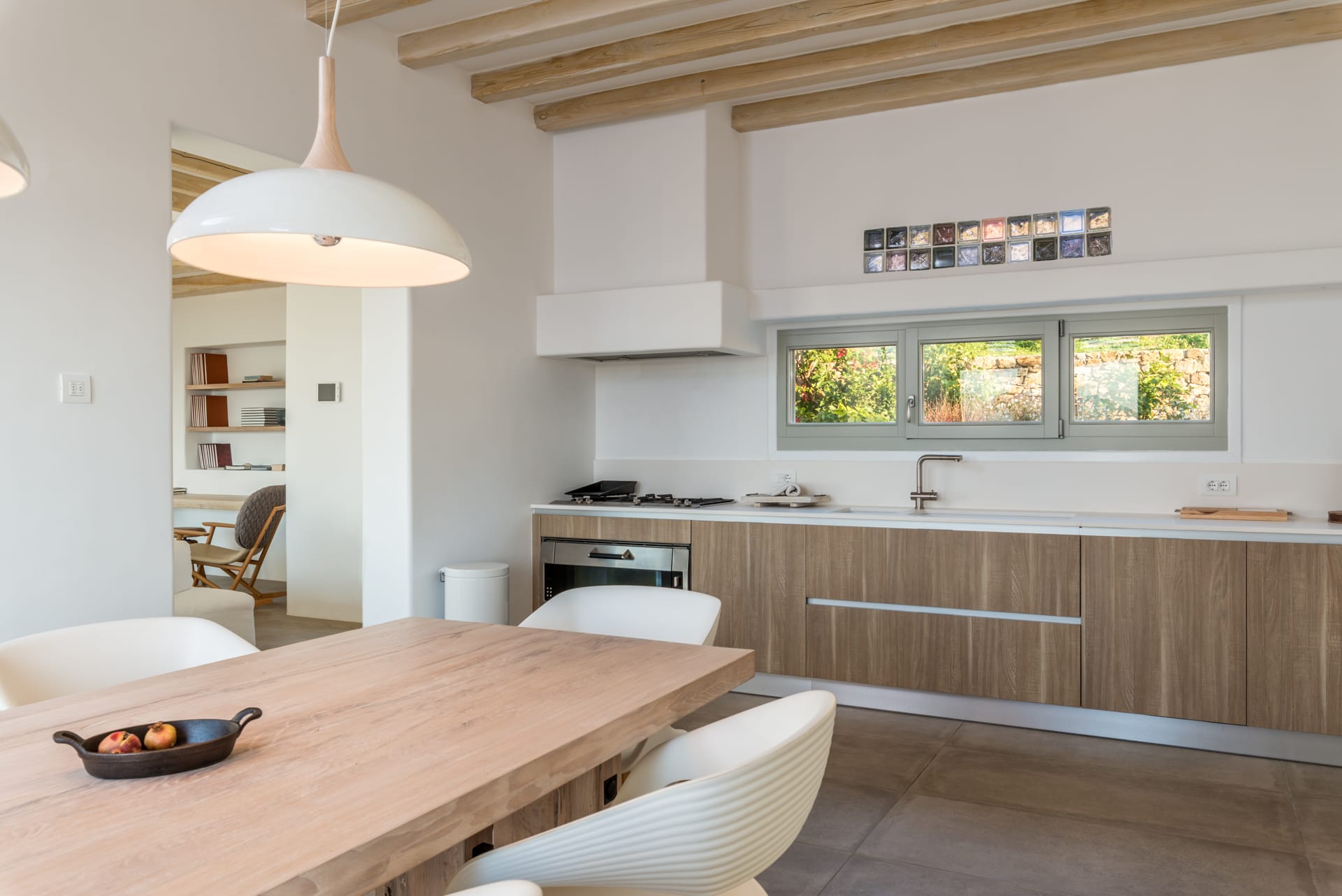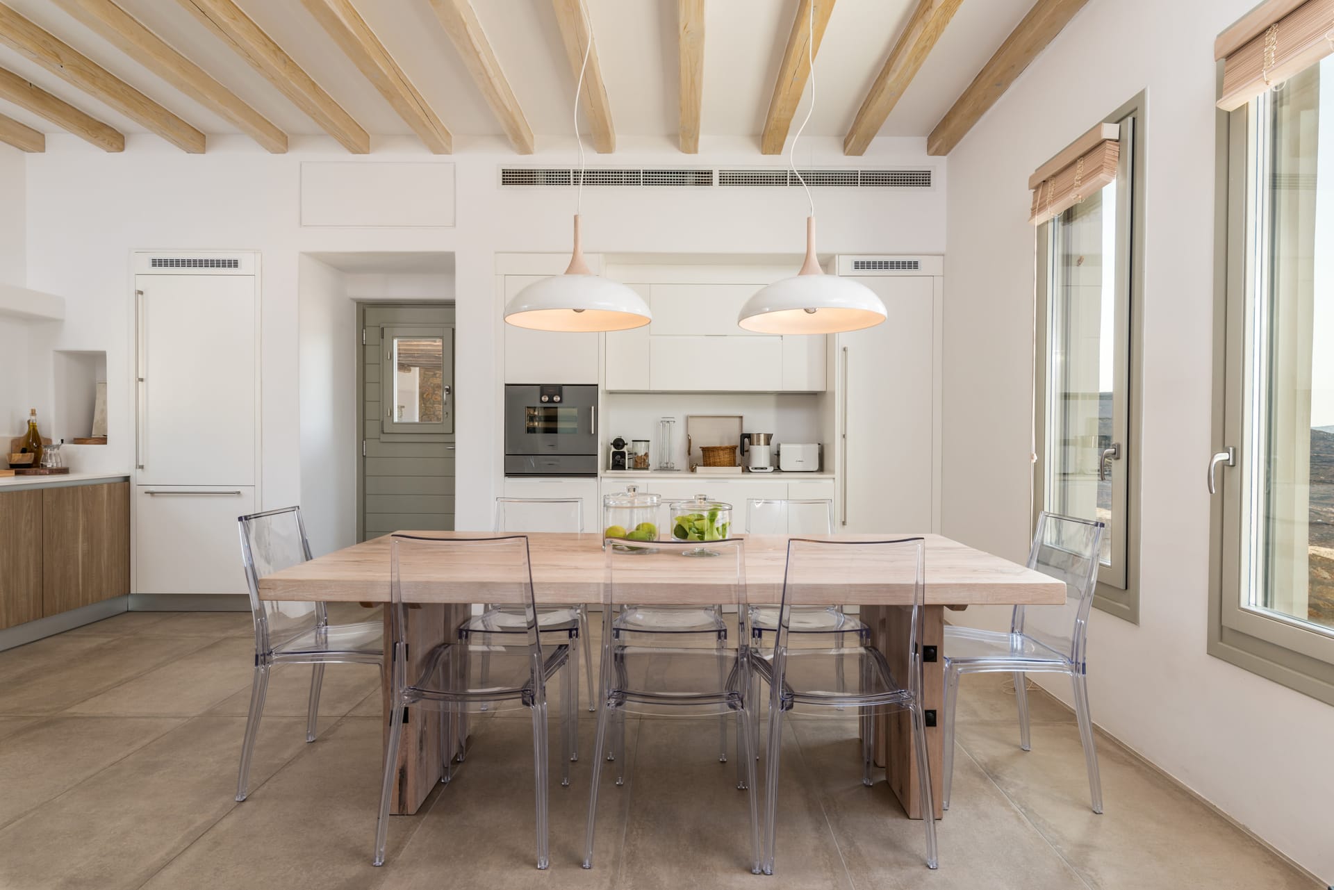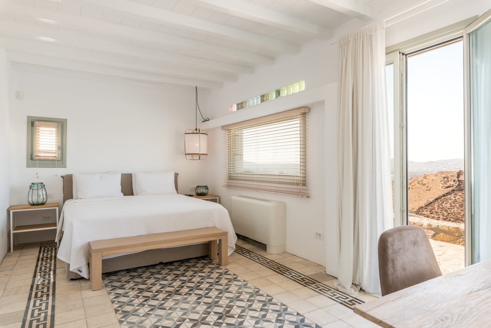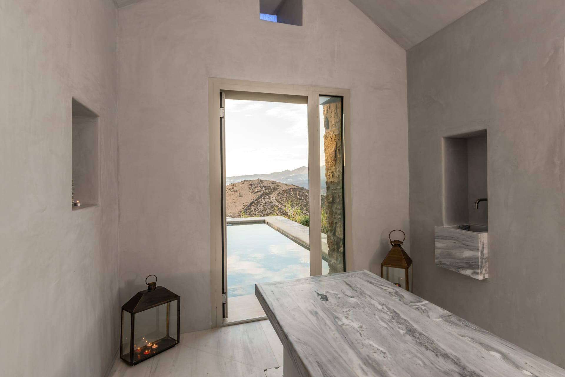 The stone-build design of the villa combined with the minimal Cycladic architecture create the perfect design for all those who value high aesthetic. Furthermore, the spacious exterior spaces of the villa and the large pools provide its guest with the perfect spots to relax and unwind.
