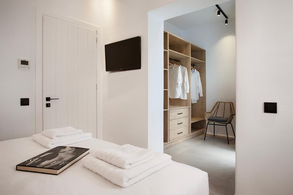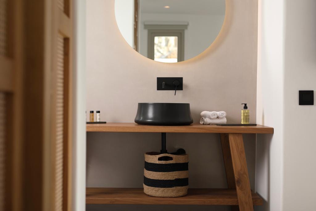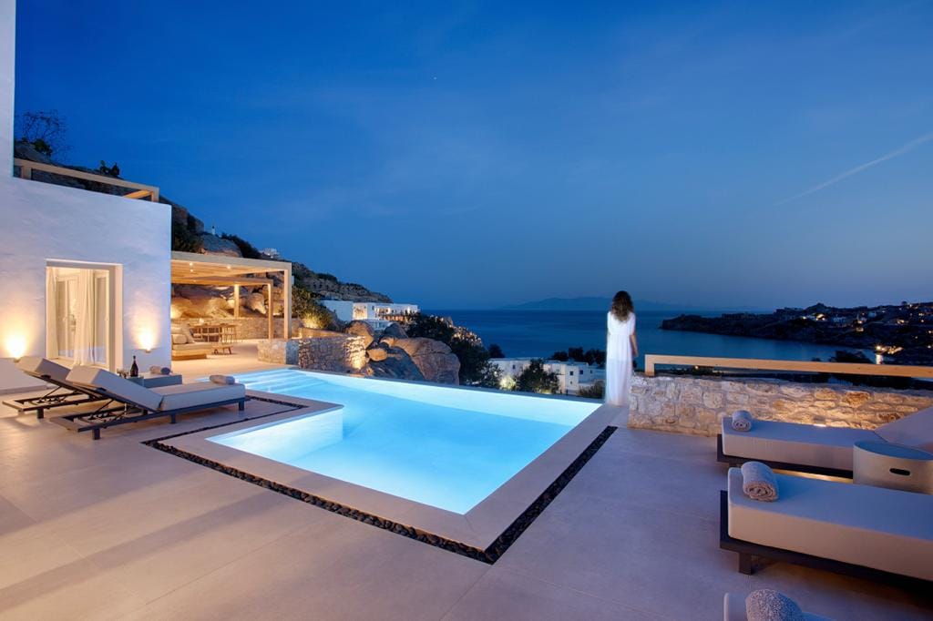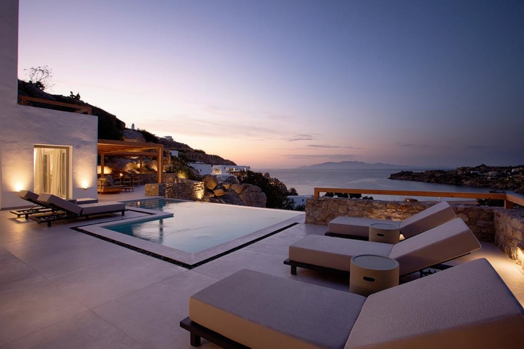 The outdoor area has an infinity private swimming pool, sunbeds, a very nice lounge area, and a shaded dining table, all with unobstructed views of the Aegean sea and super paradise beach. Some would say that is the ideal place to relax and enjoy your holidays with your loved ones.