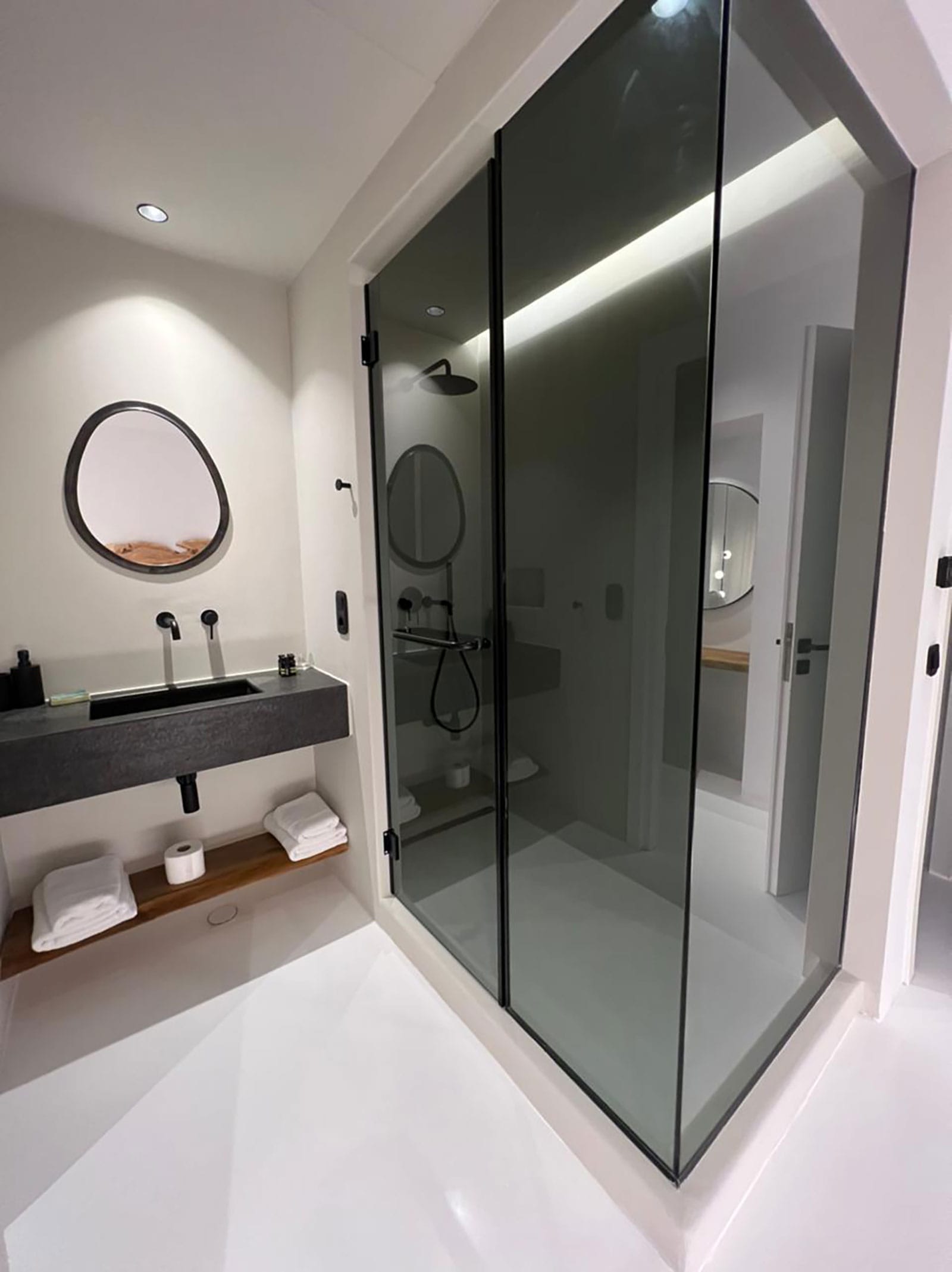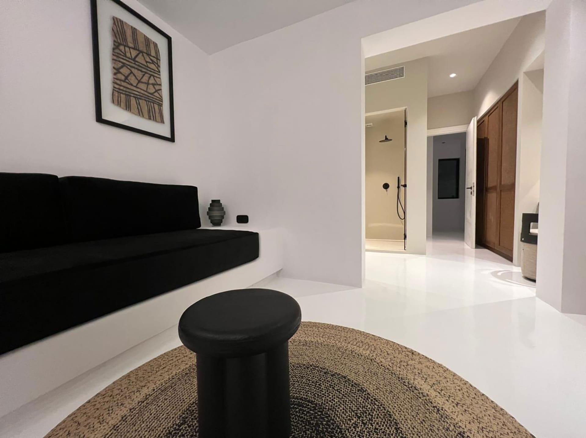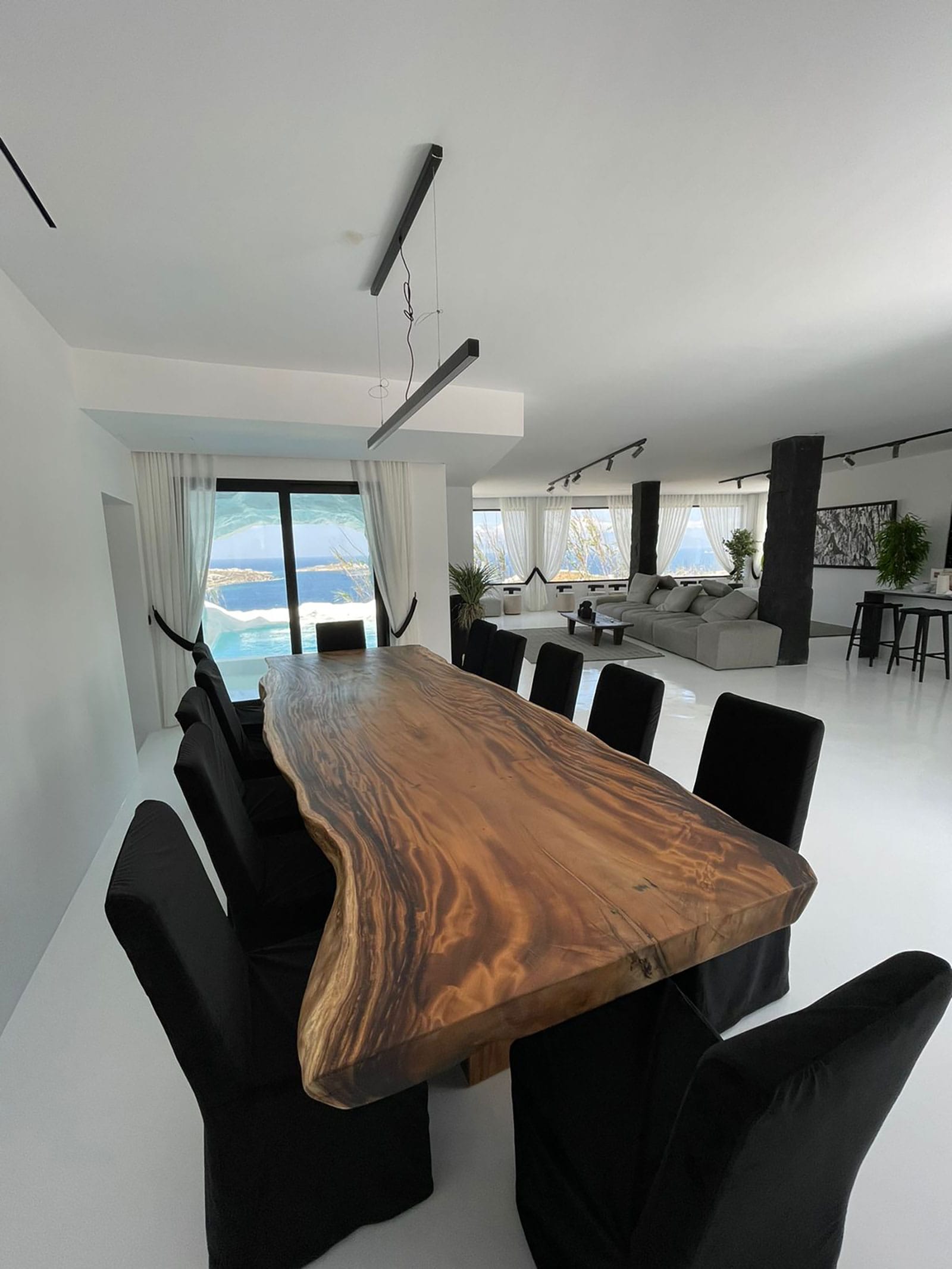 This luxury property is located very close to Mykonos town and to the most famous southern beaches. The Villa has a minimal design with whitewashed and black touches with enormous windows overlooking majestic views. Modernist in structure but with a strong Cycladic heart.