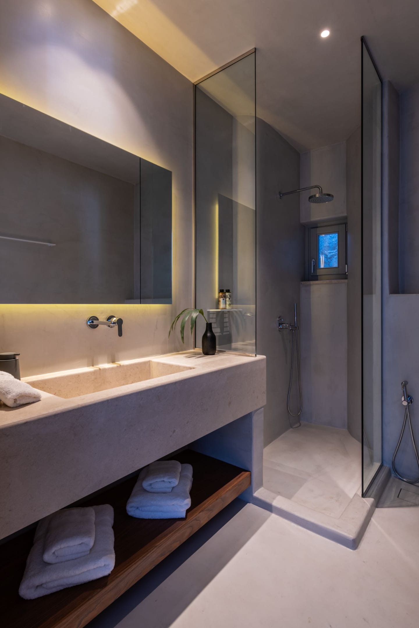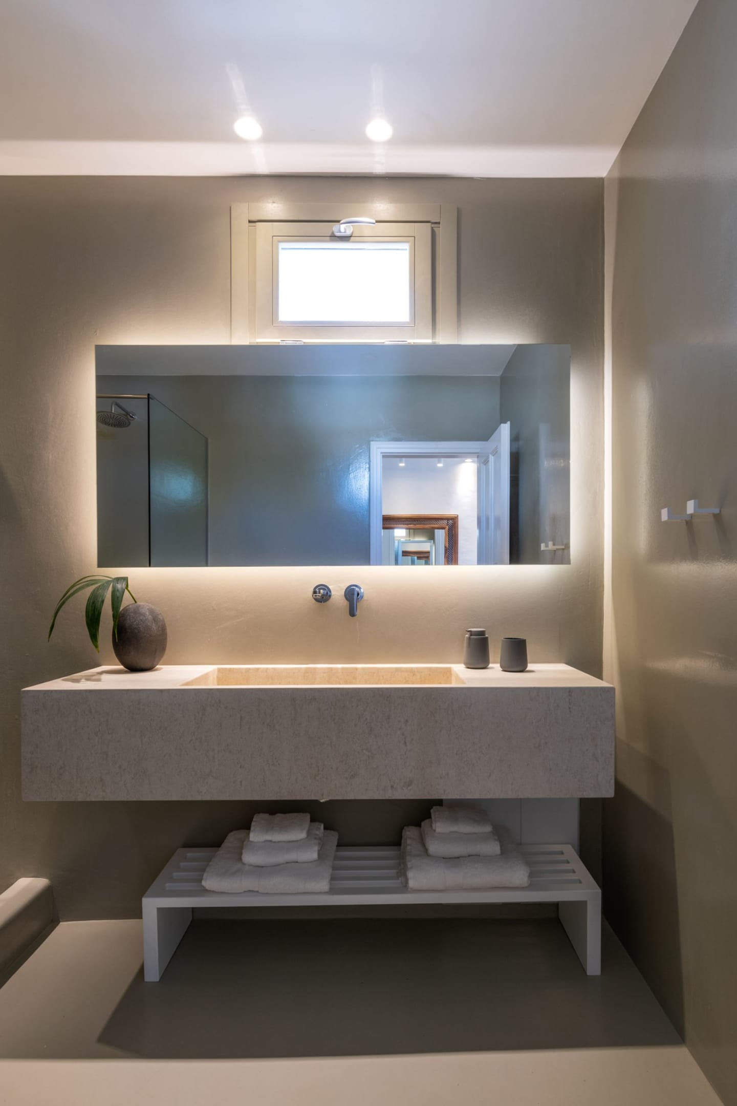 The unmistakably Mykonian design, inspired by Cycladic minimalism, is whitewashed with minimal Art Deco interiors. The villa combines luxury and absolute privacy, providing the ultimate escape with cozy interiors and relaxed ambience, private swimming pool, surrounded with granite rocks and the vast lounges for relaxing. Incredible attention is devoted to every single detail, with an outdoorsy approach that does not compromise the cozy indoor living, like the elegant decoration with wooden furniture in earth tones and the home décor.