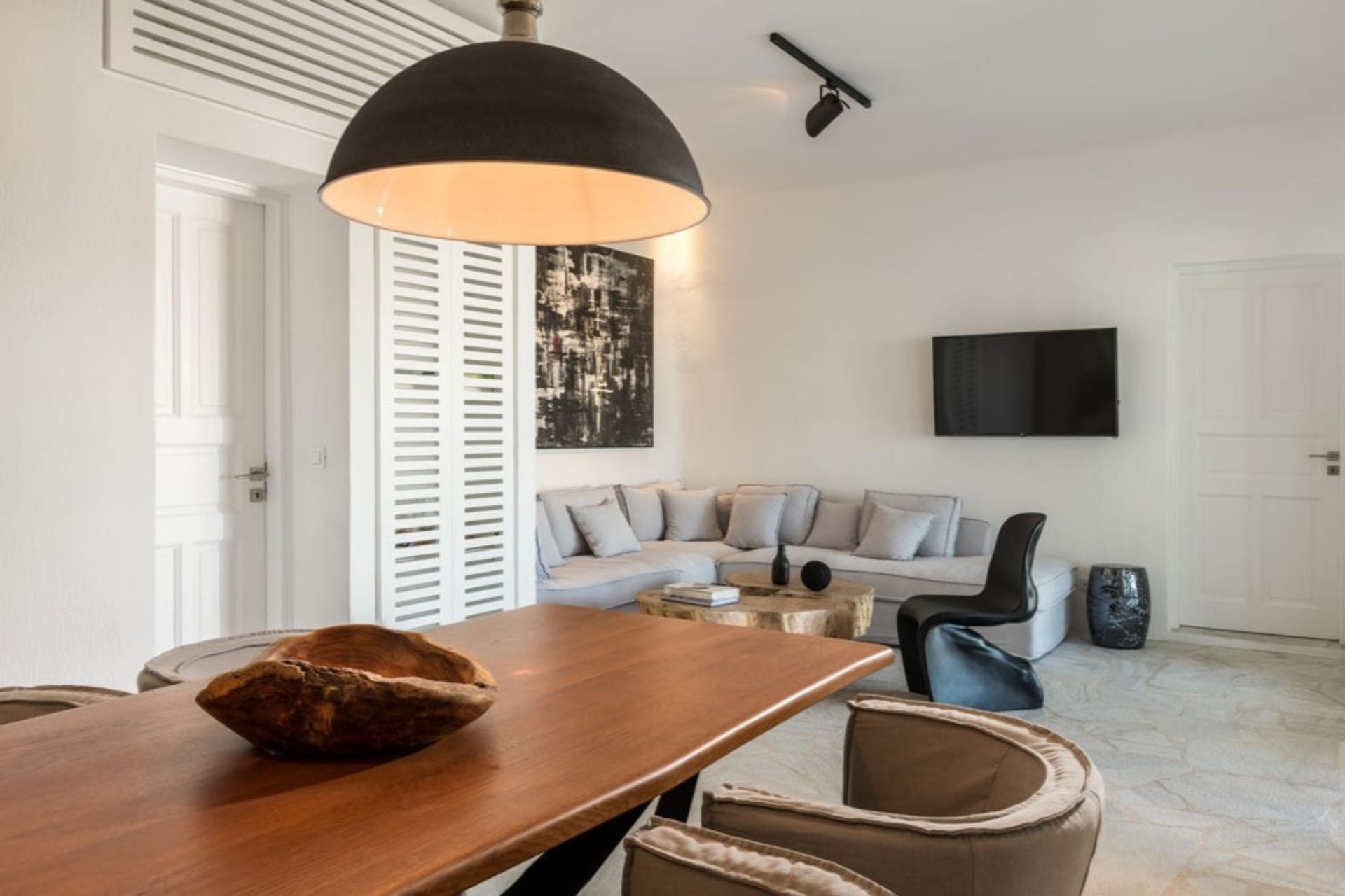 - whitewashed with minimal Art Deco interiors