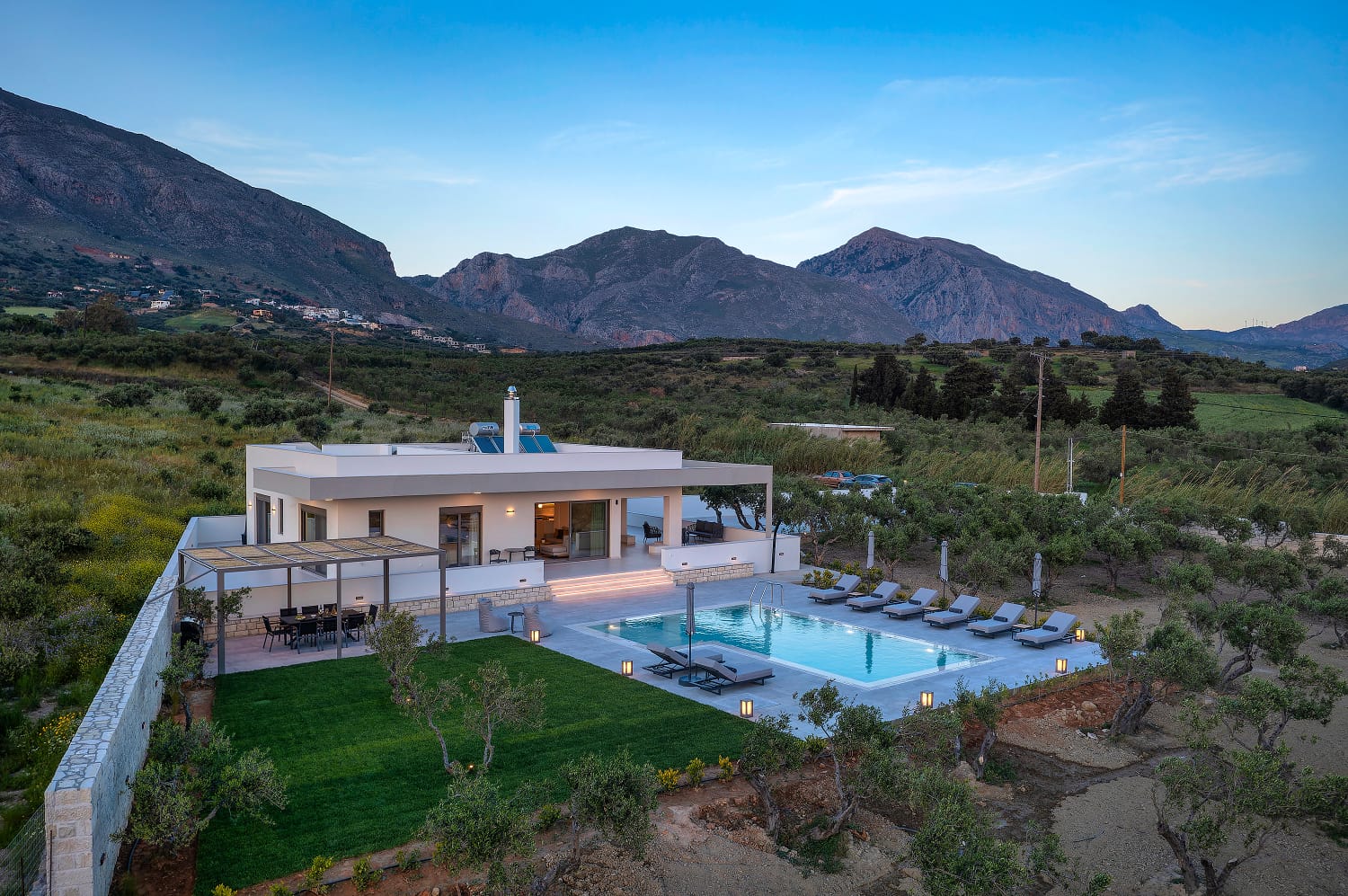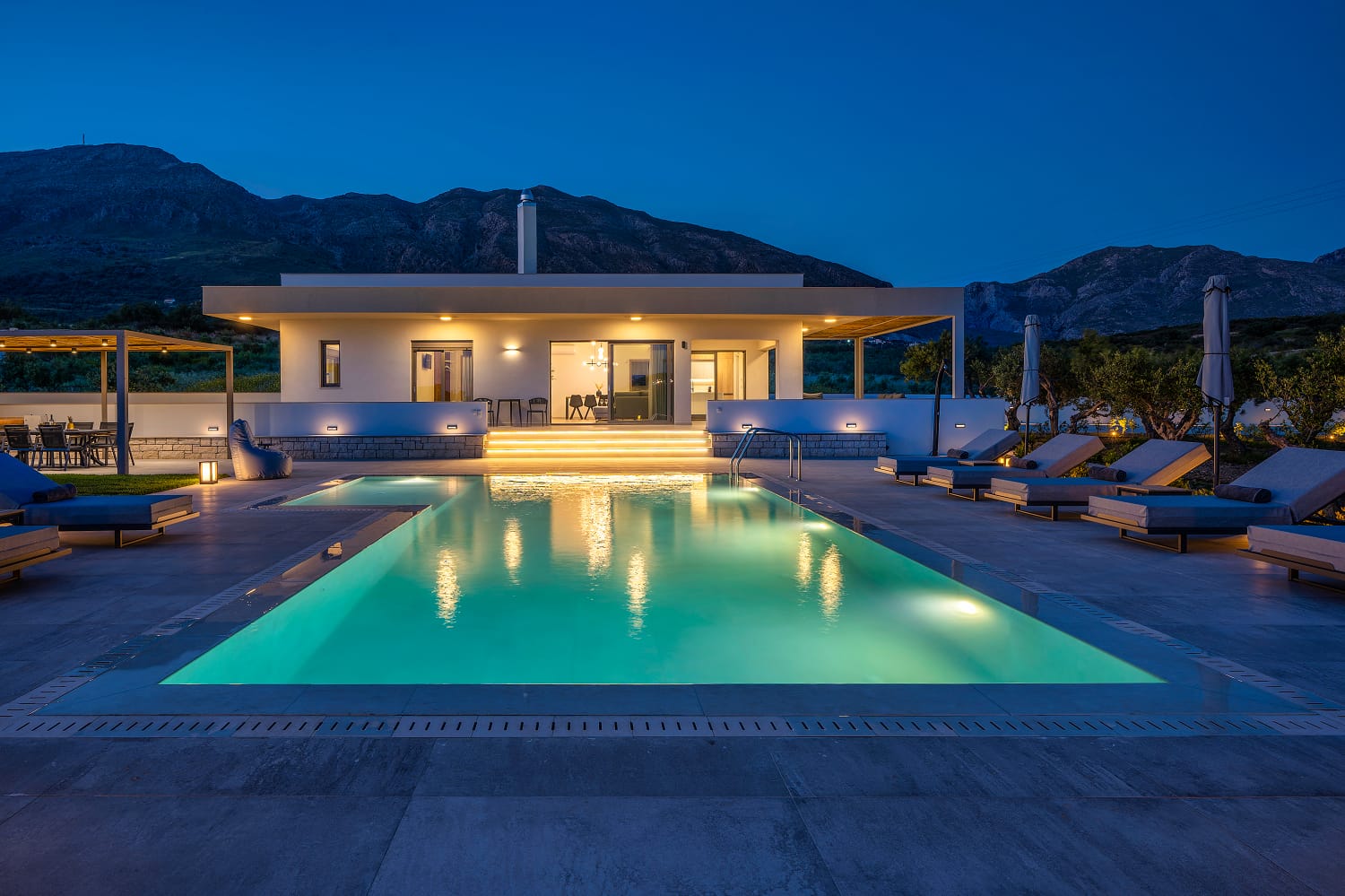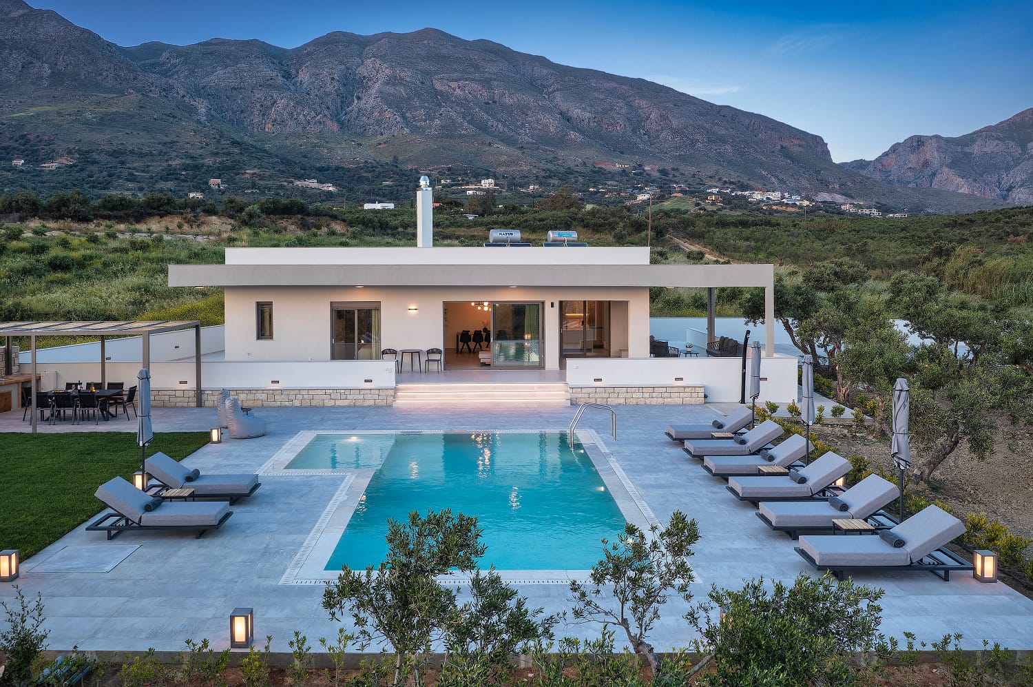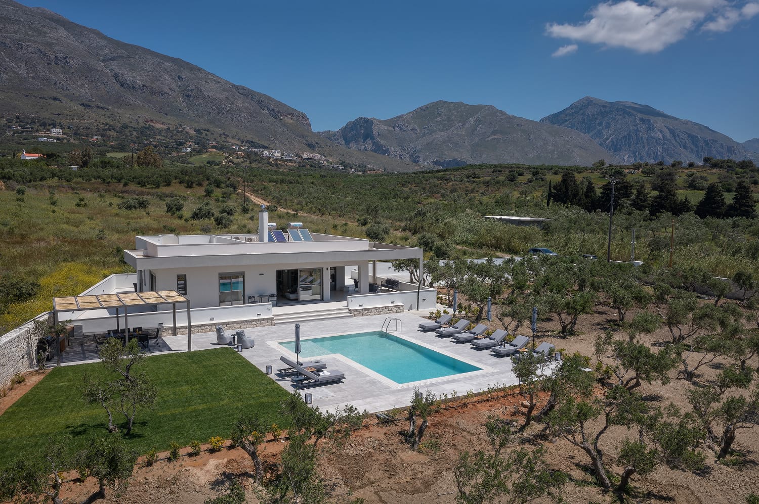 In the outdoor area, you will find a private infinity swimming pool with comfortable sunbeds, BBQ facilities, a shaded lounge, a hammock, and a dining area. The terraces and balconies have also lounge and dining areas, with magnificent sea views.