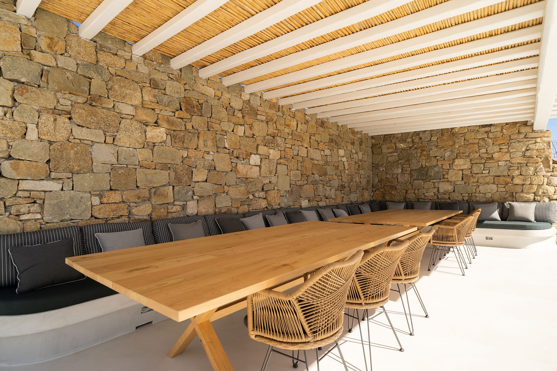 Open-air shaded lounge and dining area