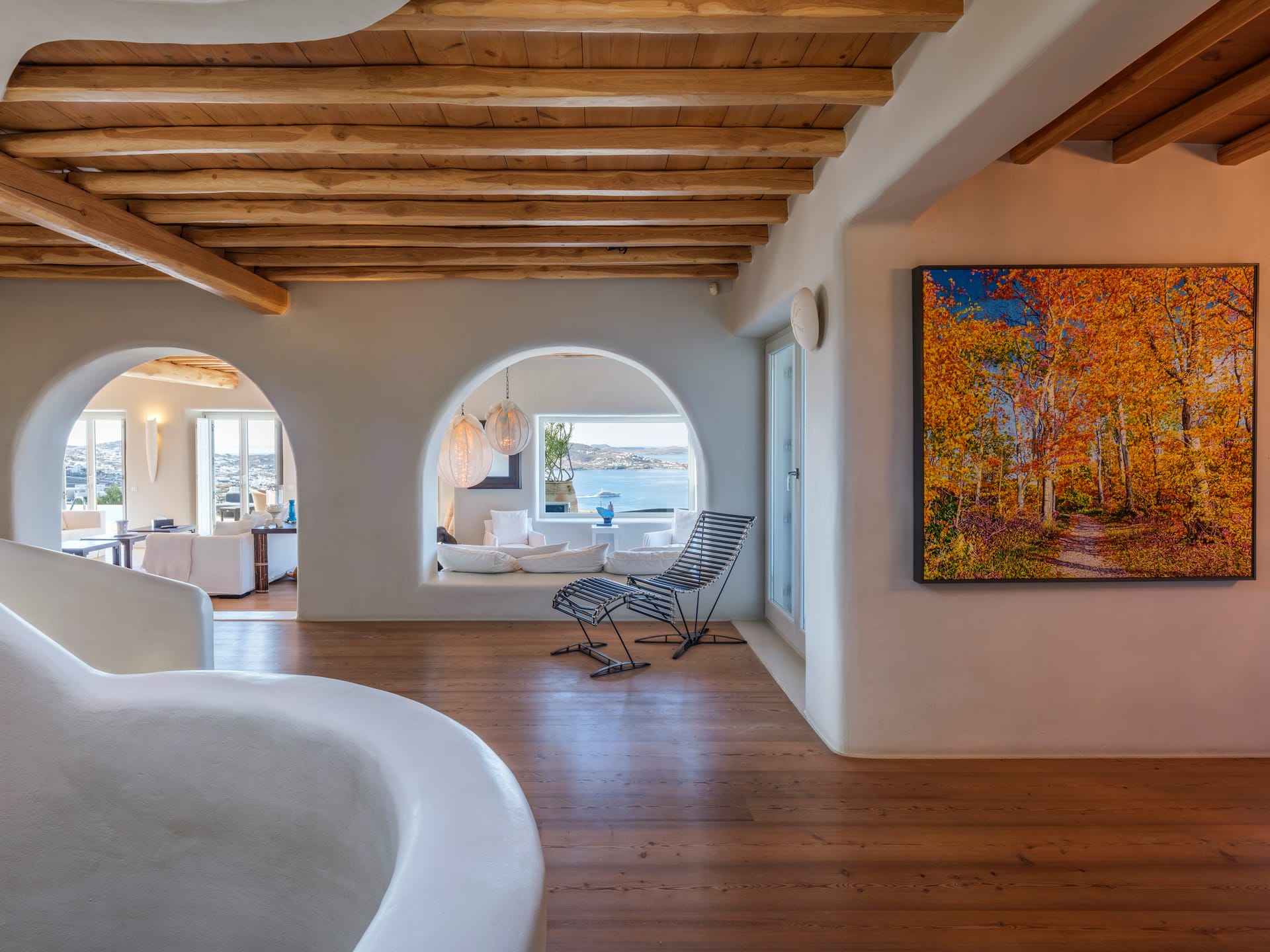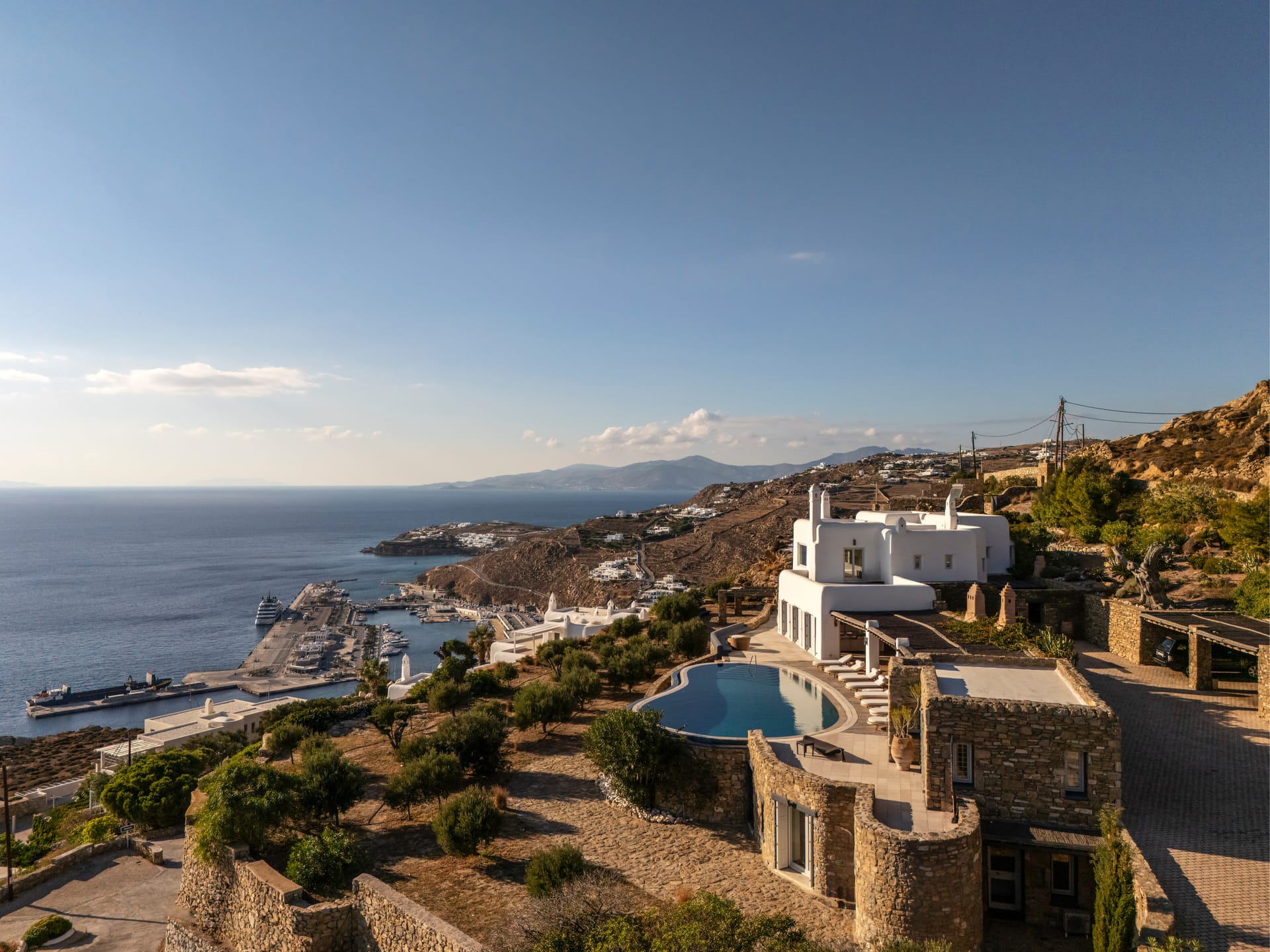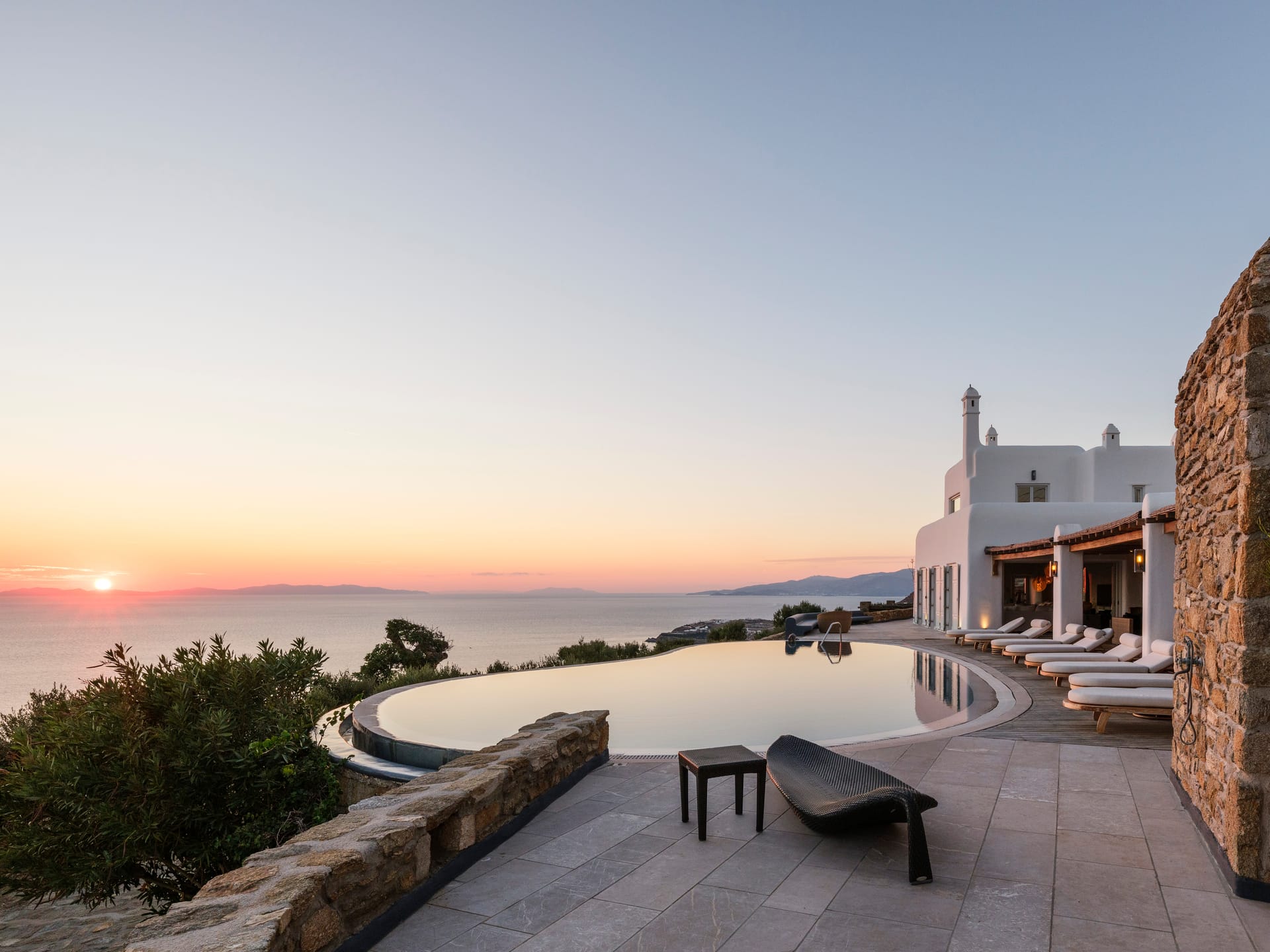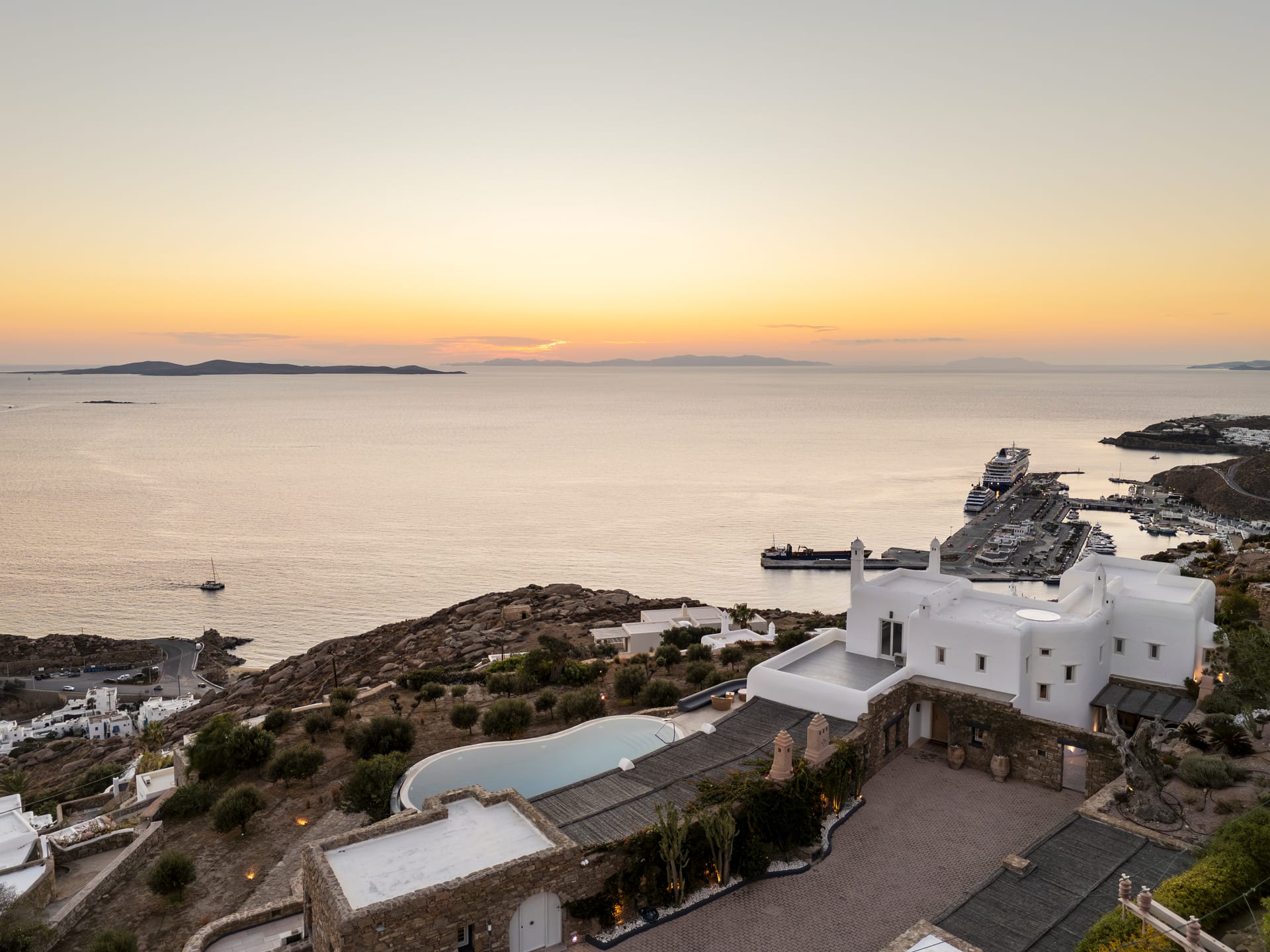 Exhale stress, inhale the panoramic views from your heavenly bed in one of the 10 bedrooms of Montessito Villa. This top-luxury property is nestled on the top of a hillside, just minutes away from Mykonos Town and boasts a huge infinity pool for treasured moments of leisure and fun! Let yourself unwind while gazing at the boats sailing from the port through the sunset. The property offers complete privacy to its guest, and it conveniently close to Mykonos Town.