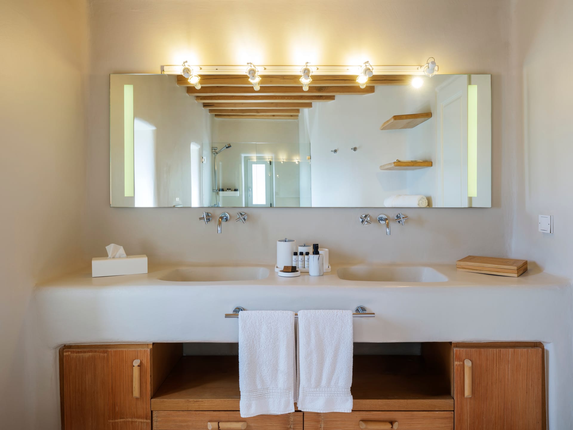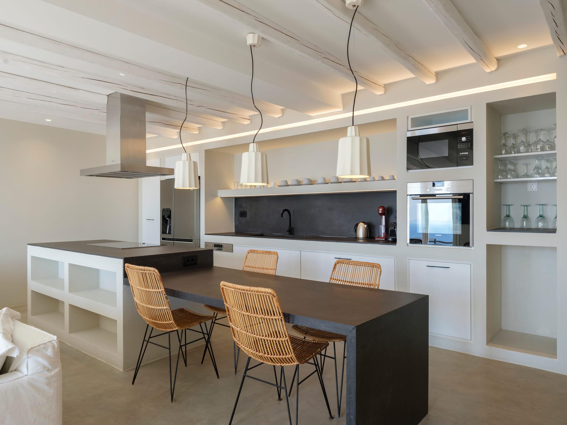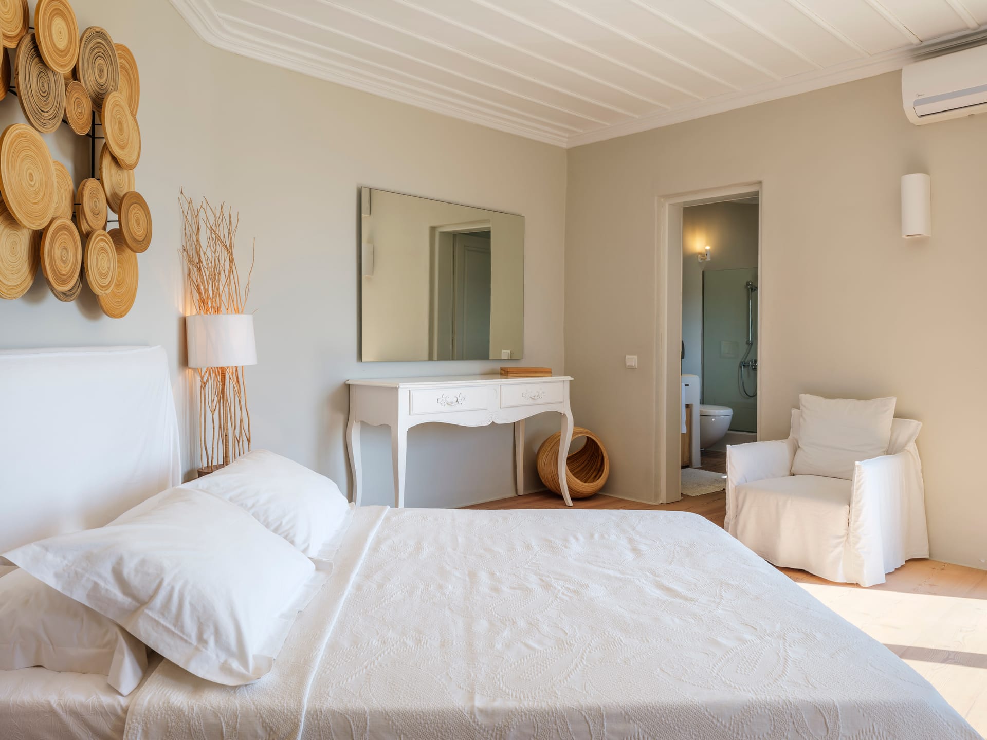 The villa can comfortably accommodate 20 guests and includes the Main Villa and the Guest House. It features 7 Double Bedrooms in the main structure, all featuring sea views and en-suite bathrooms. It also features a Guest House, with private independent entrance, offering 2 double bedrooms.