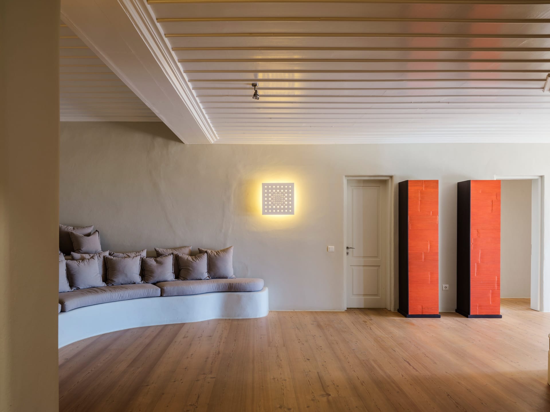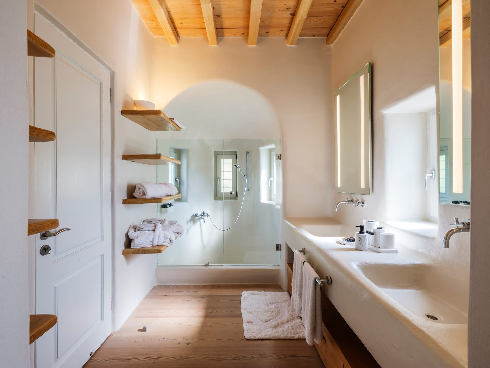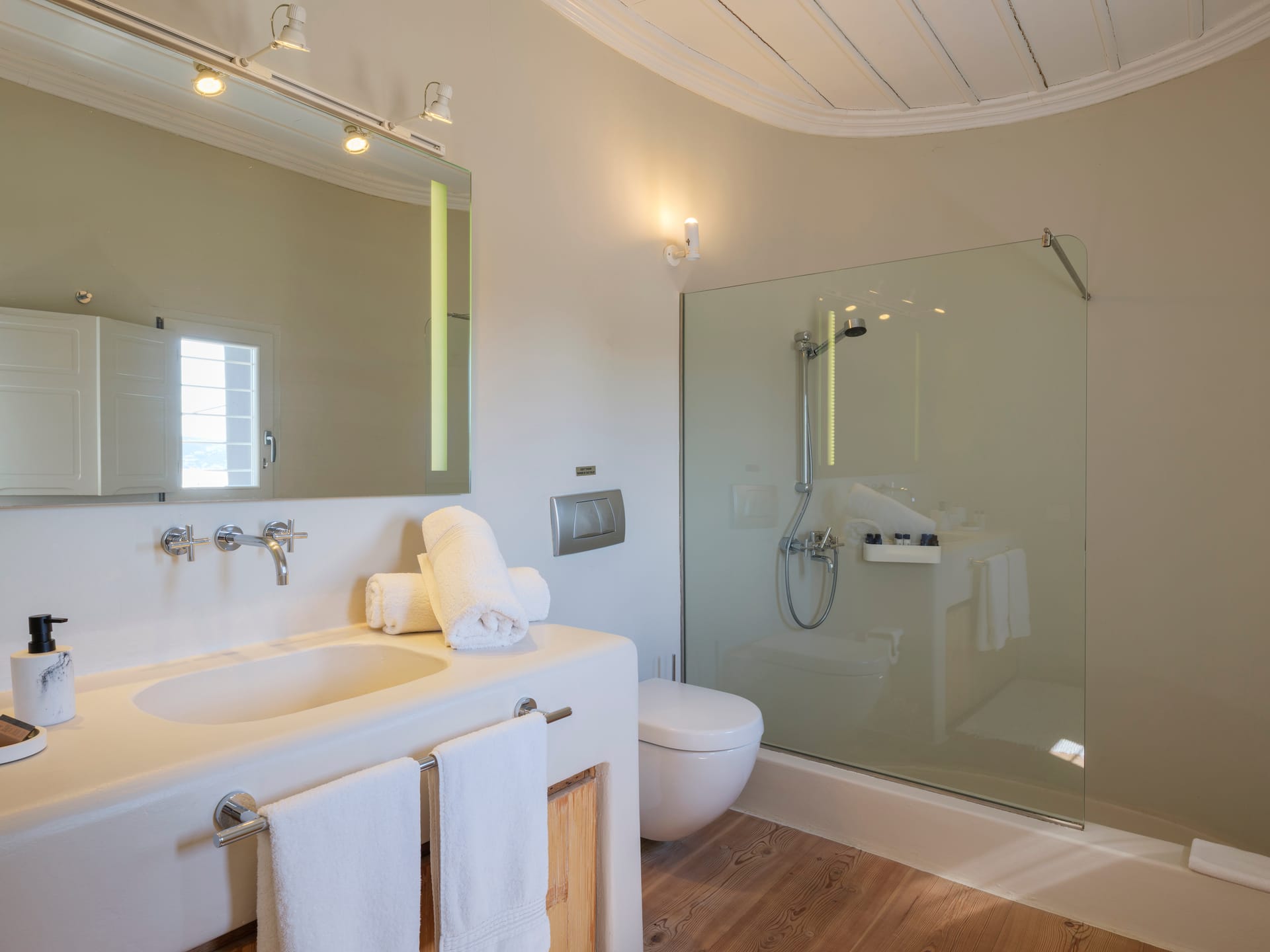 The villa can comfortably accommodate 20 guests and includes the Main Villa and the Guest House. It features 7 Double Bedrooms in the main structure, all featuring sea views and en-suite bathrooms. It also features a Guest House, with private independent entrance, offering 2 double bedrooms.
