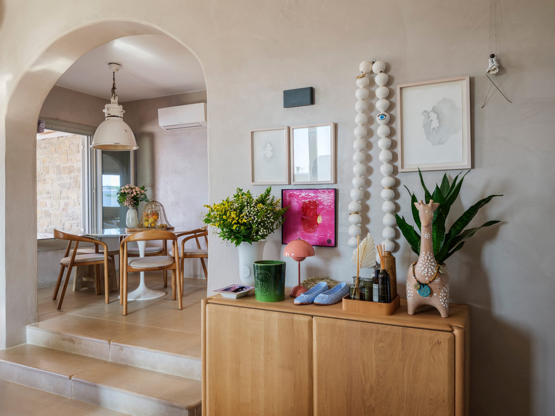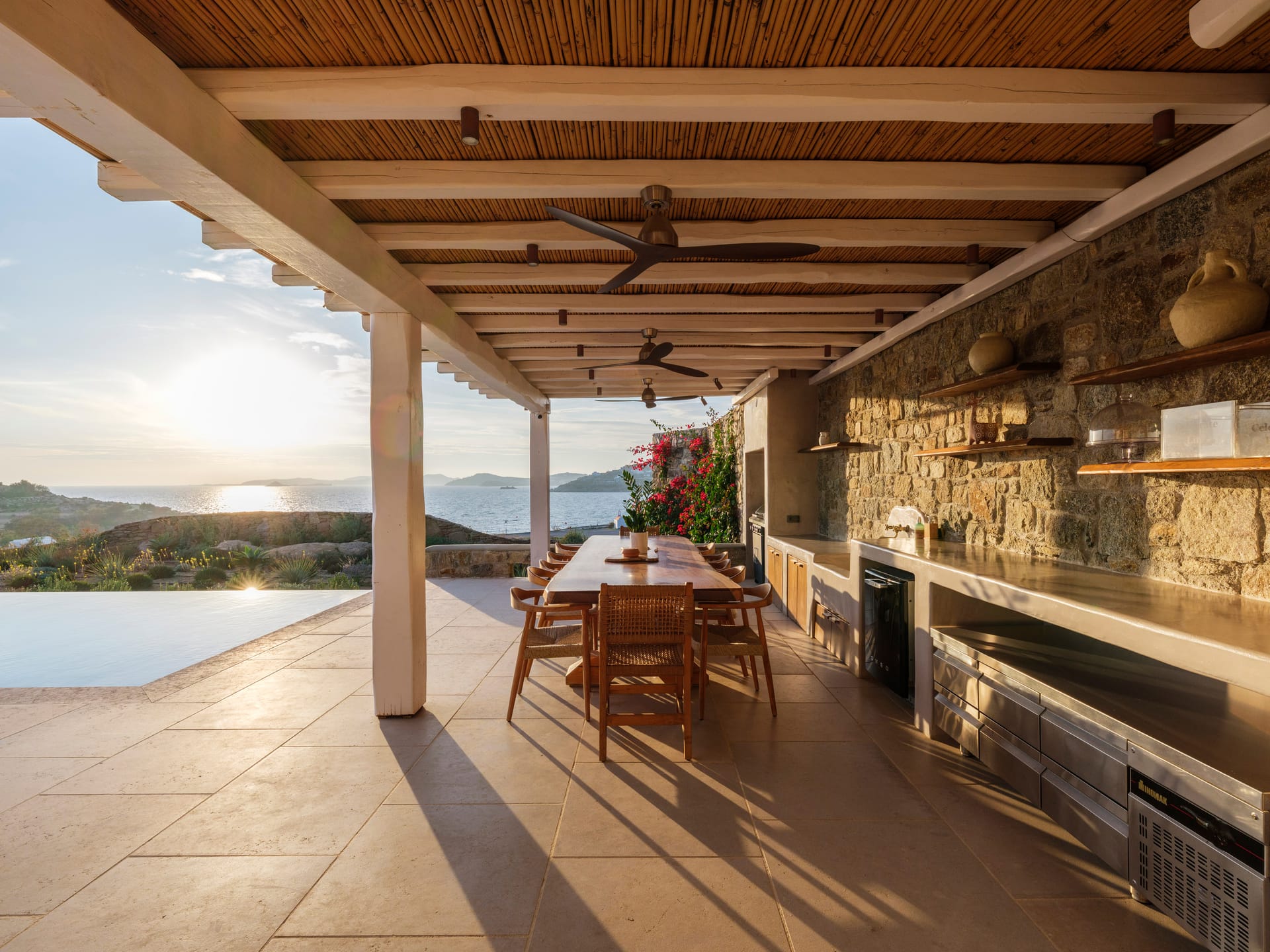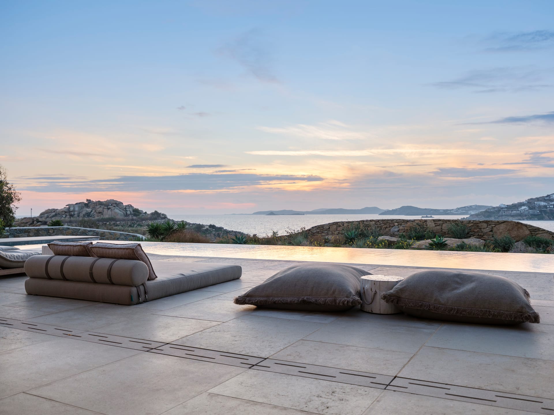 Sea Whisper Villa enjoys a privileged location in Paraga, perched just above Paraga Beach, Soho Roc House, and Scorpios Beach Club. Its design blends luxury with boho-inspired details, and the villa has been recently renovated to showcase breathtaking sunset and sea views.