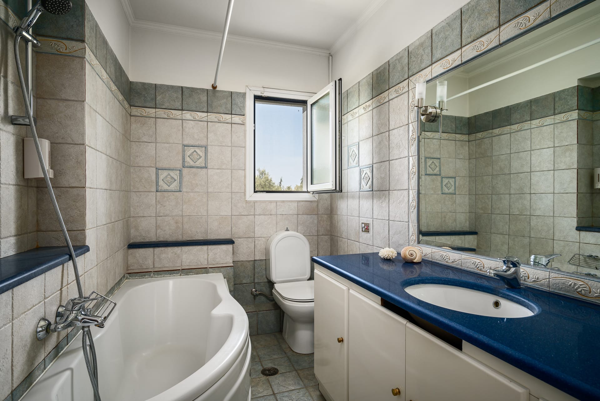 In addition, the spacious outdoor area with the bbq and dining table, provide the perfect opportunity to enjoy the warm and pleasant weather Corfu has to offer, while the large (5x10) outdoor swimming pool is there to cool you off during the hot summer days!