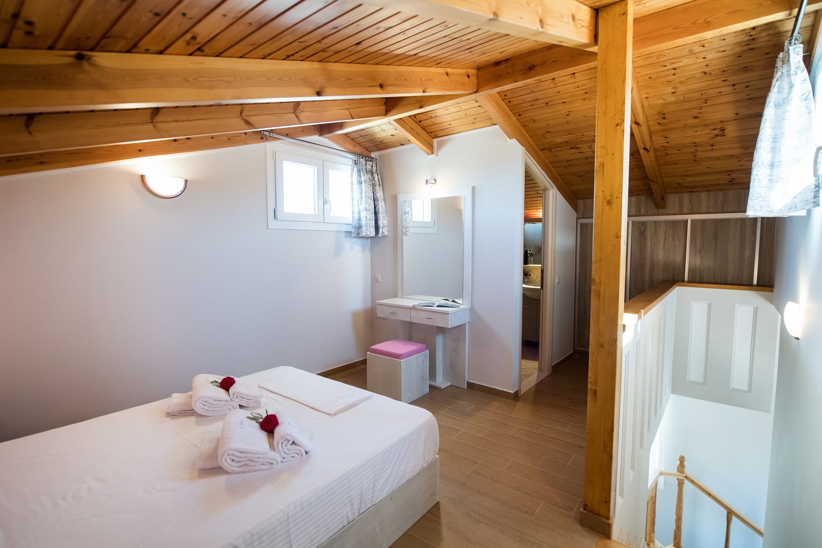 1 Large Double Bed (Bedroom 1), 1 sofa-bed (living room), 1 large double bed (bedroom 2-loft), Private Pool, Balcony, Terrace, Partial sea view, Pool view, Garden view, Mountain view, Outdoor furniture, Air Conditioning, Heating, Free Wi-Fi, Seating Area, Dining area, Flat Screen TV, Safe, Fully equipped kitchen, Kitchenware, Oven, Stovetop, Refrigerator, Toaster, Electric kettle, Coffee machine, Tea/Coffee maker, Dining table, 2 bathrooms with shower, Free toiletries, Hairdryer, Towels, Linen, Wardrobe/Closet, Washing machine, Clothes rack, Iron and ironing board, Soundproofing