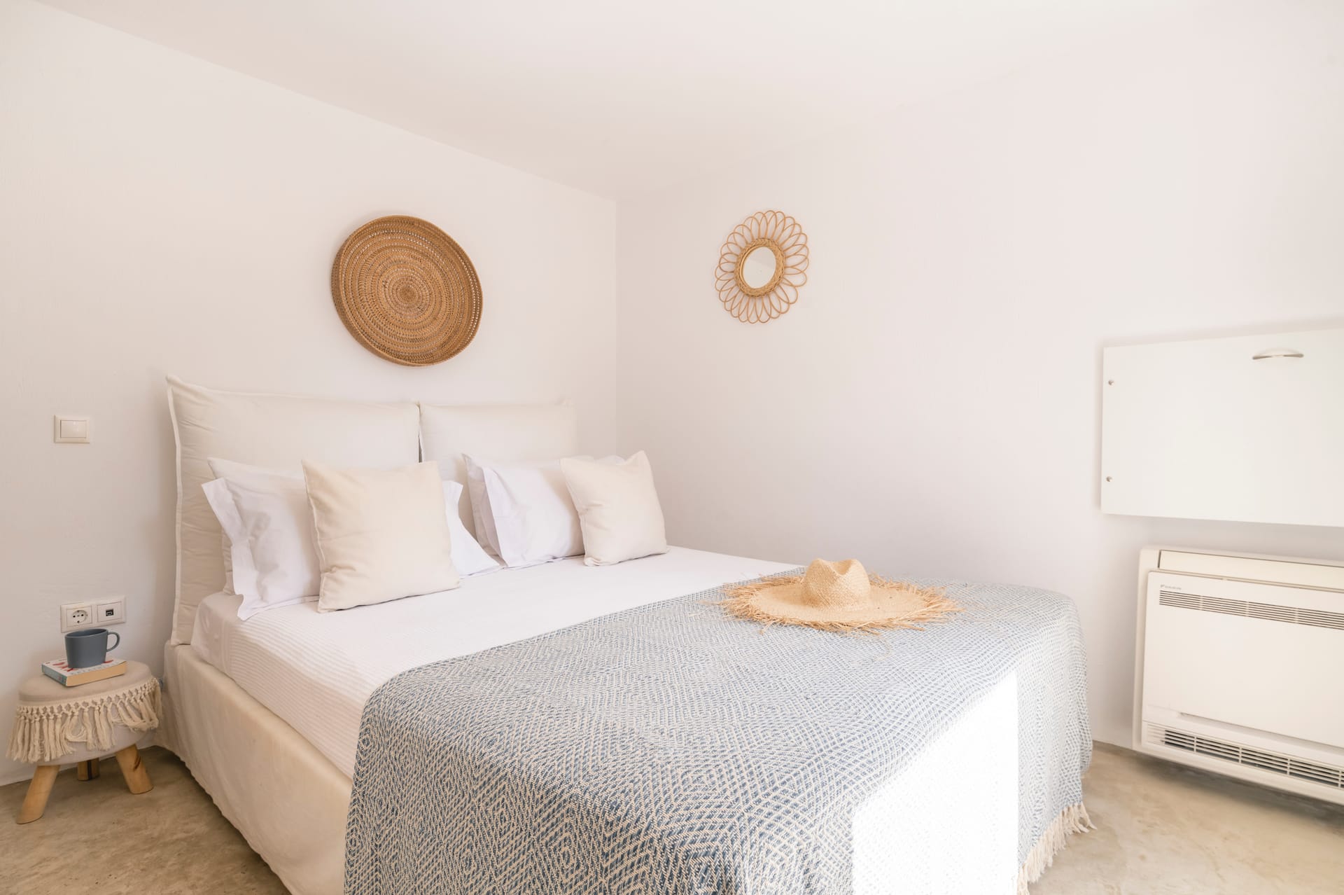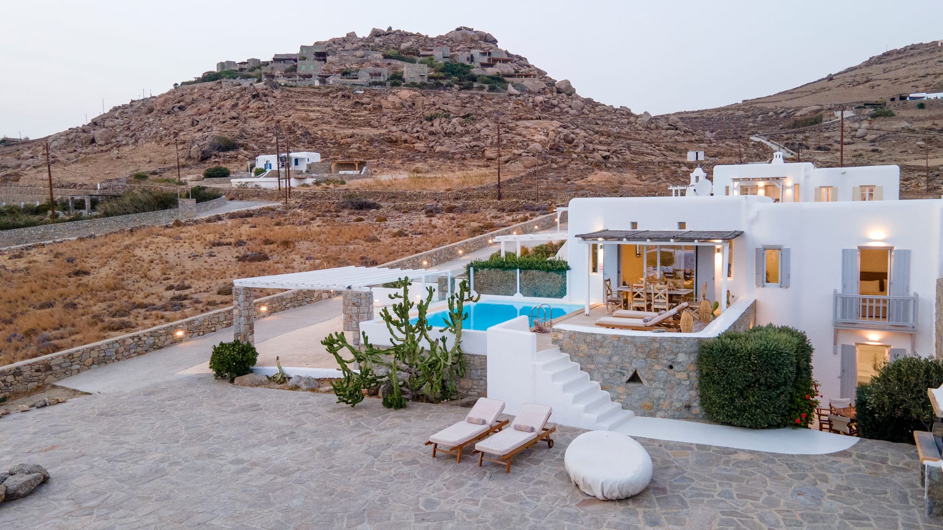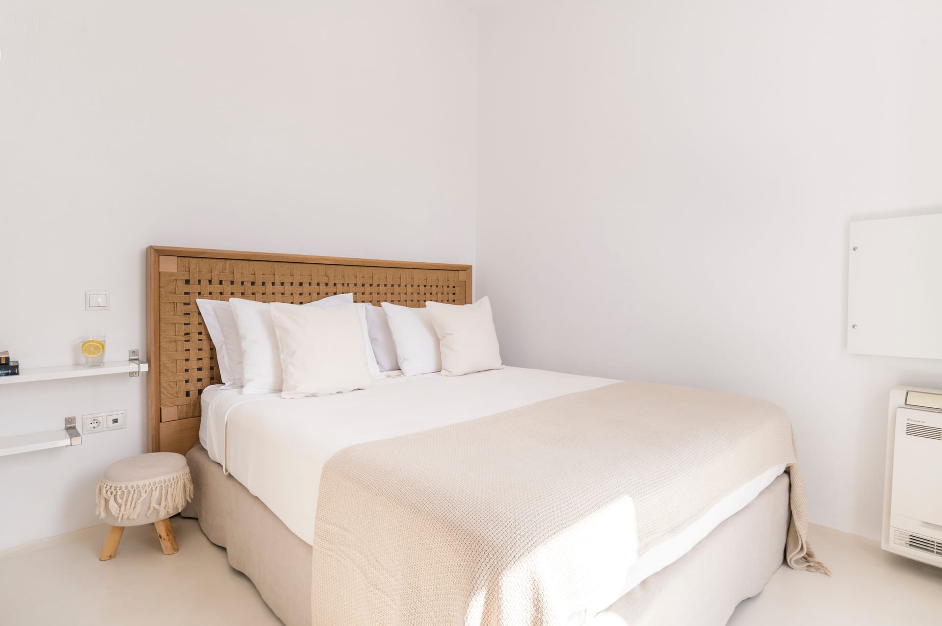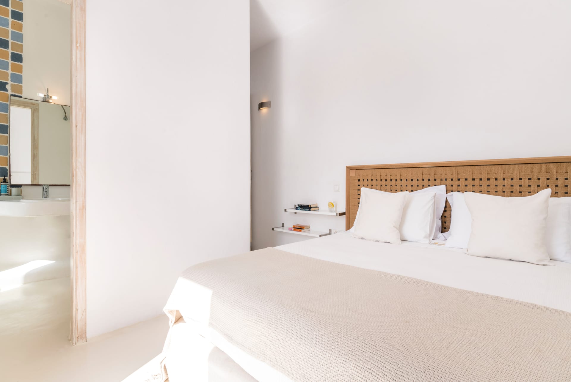 Our Villa is a 105sqm modern Mykonian house with private pool, incorporating 3 master-bedrooms with en-suite bathrooms, kitchen-living room and a large patio.