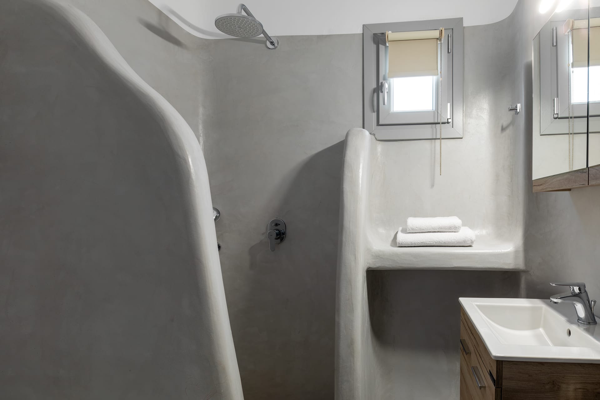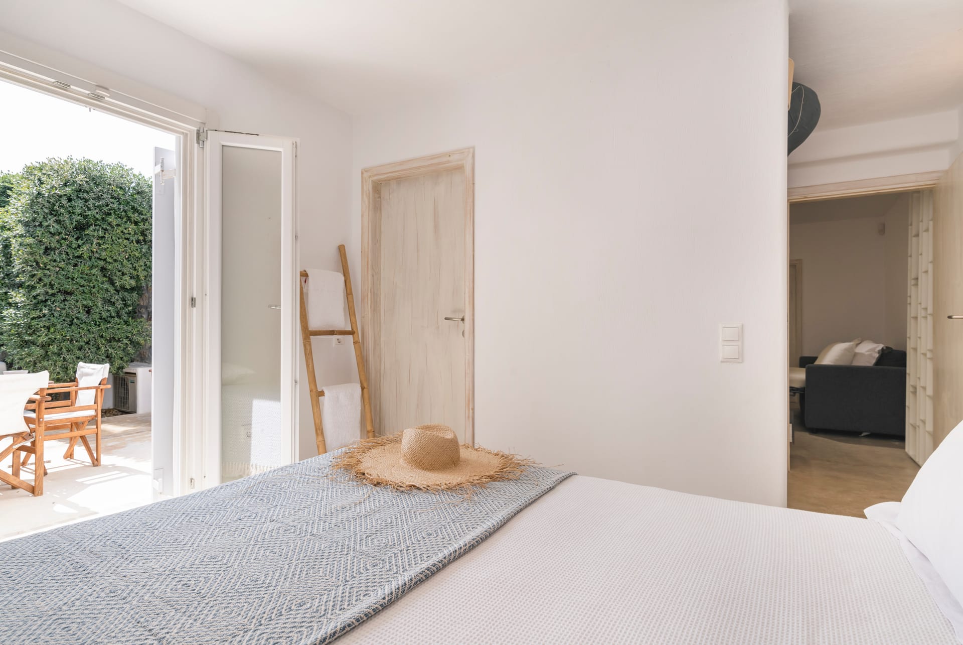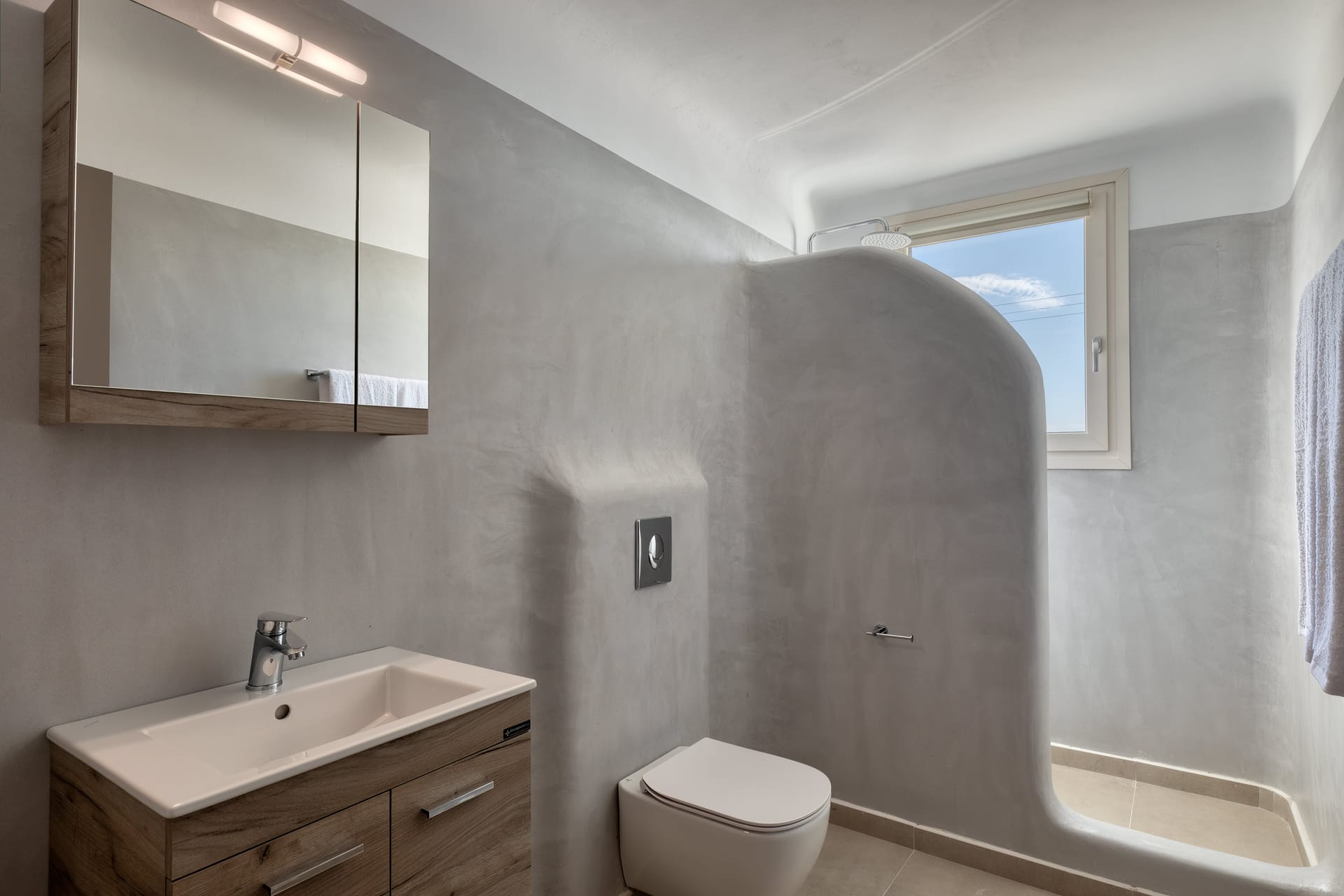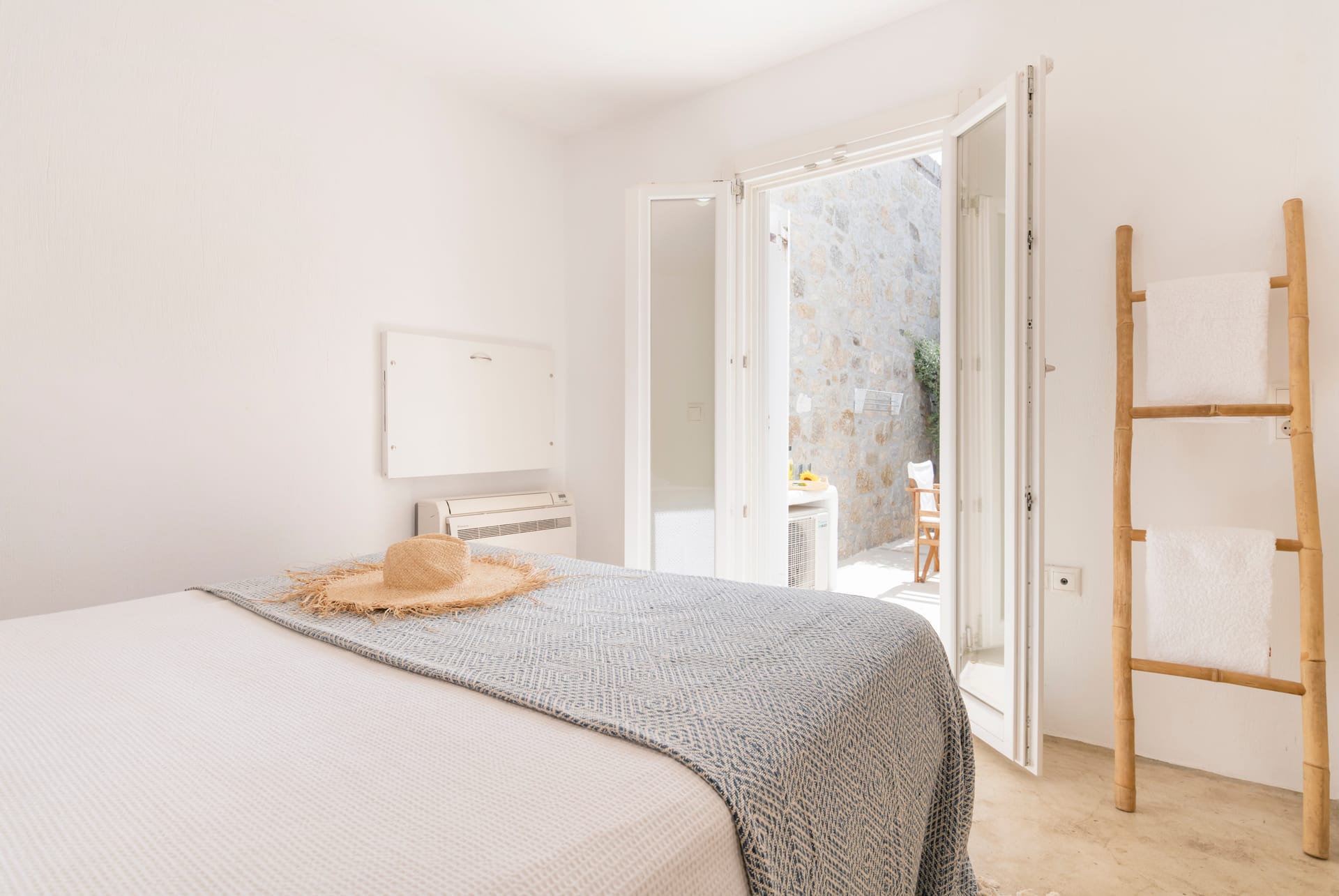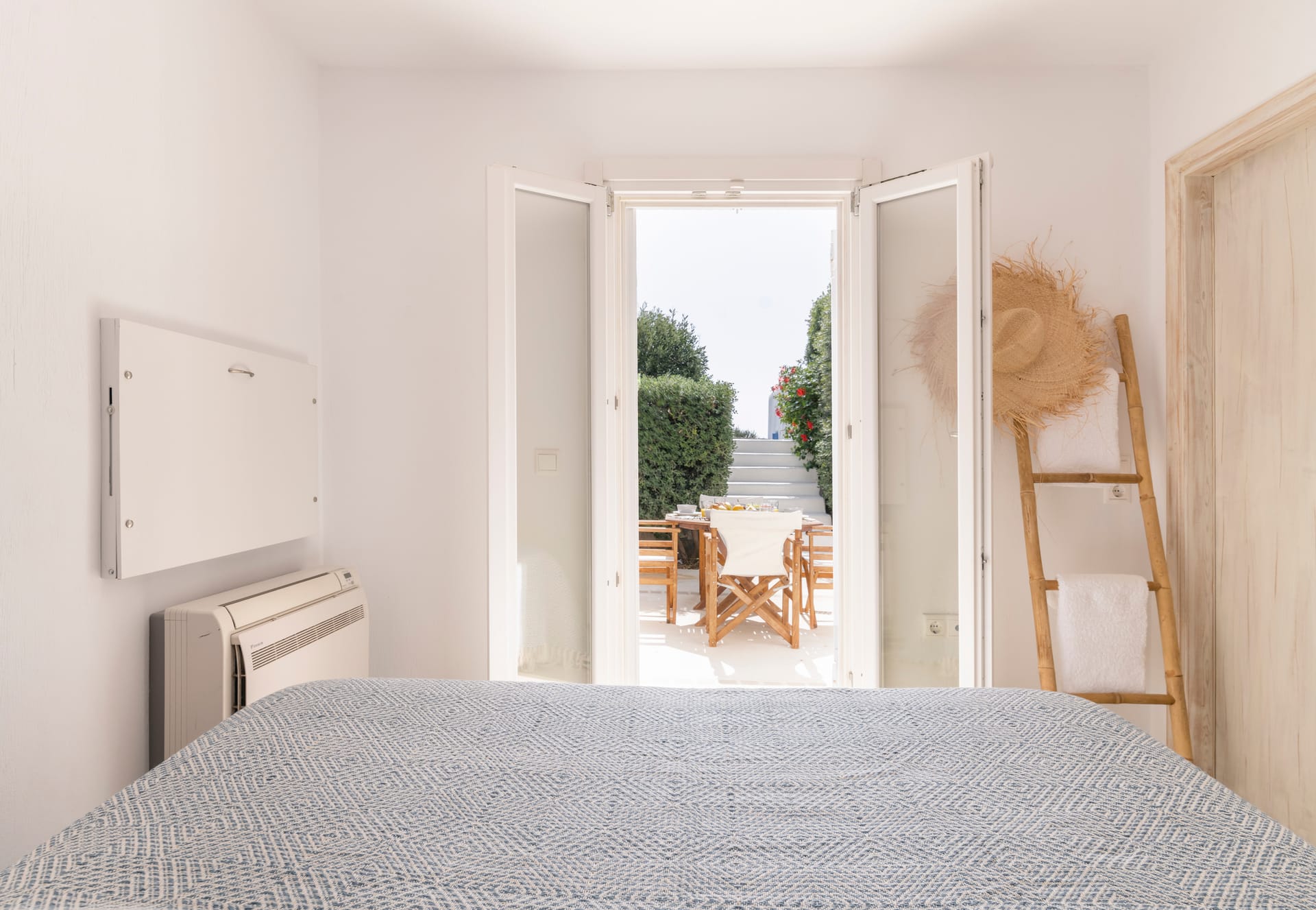 Our Villa is a 105sqm modern Mykonian house with private pool, incorporating 3 master-bedrooms with en-suite bathrooms, kitchen-living room and a large patio.