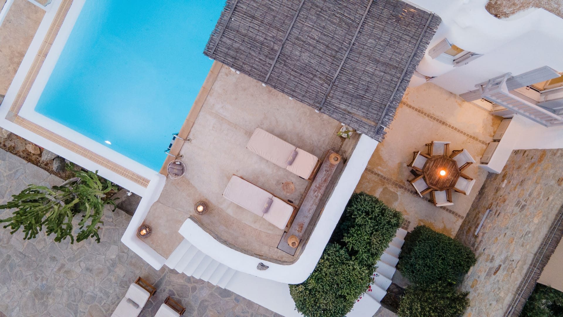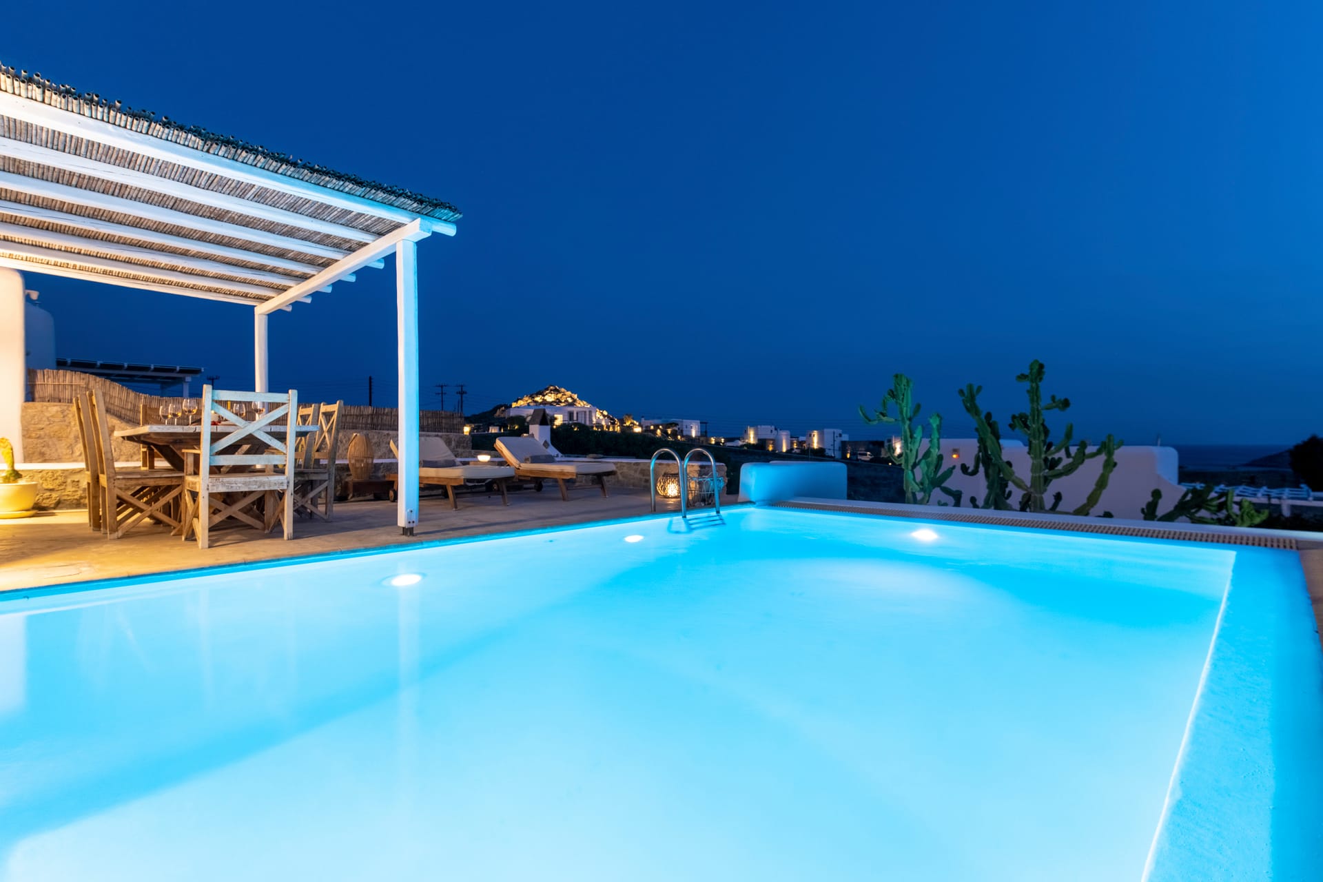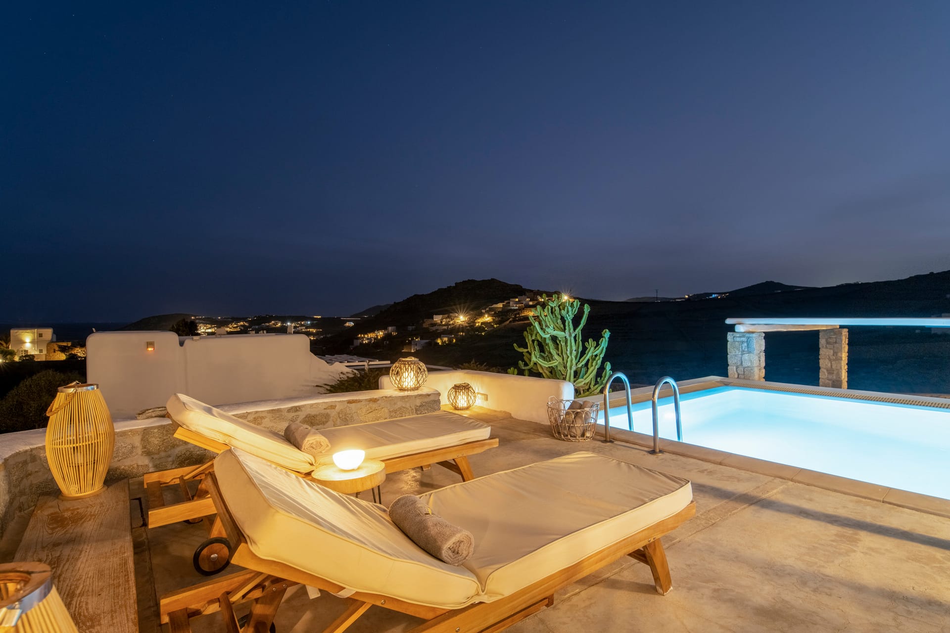 Also, the unique location of our villa, provides the exceptional advantage to reach the majority of the famous South crystal water beaches of the island and most famous Beach bar clubs and restaurants in less than 15 minutes !
