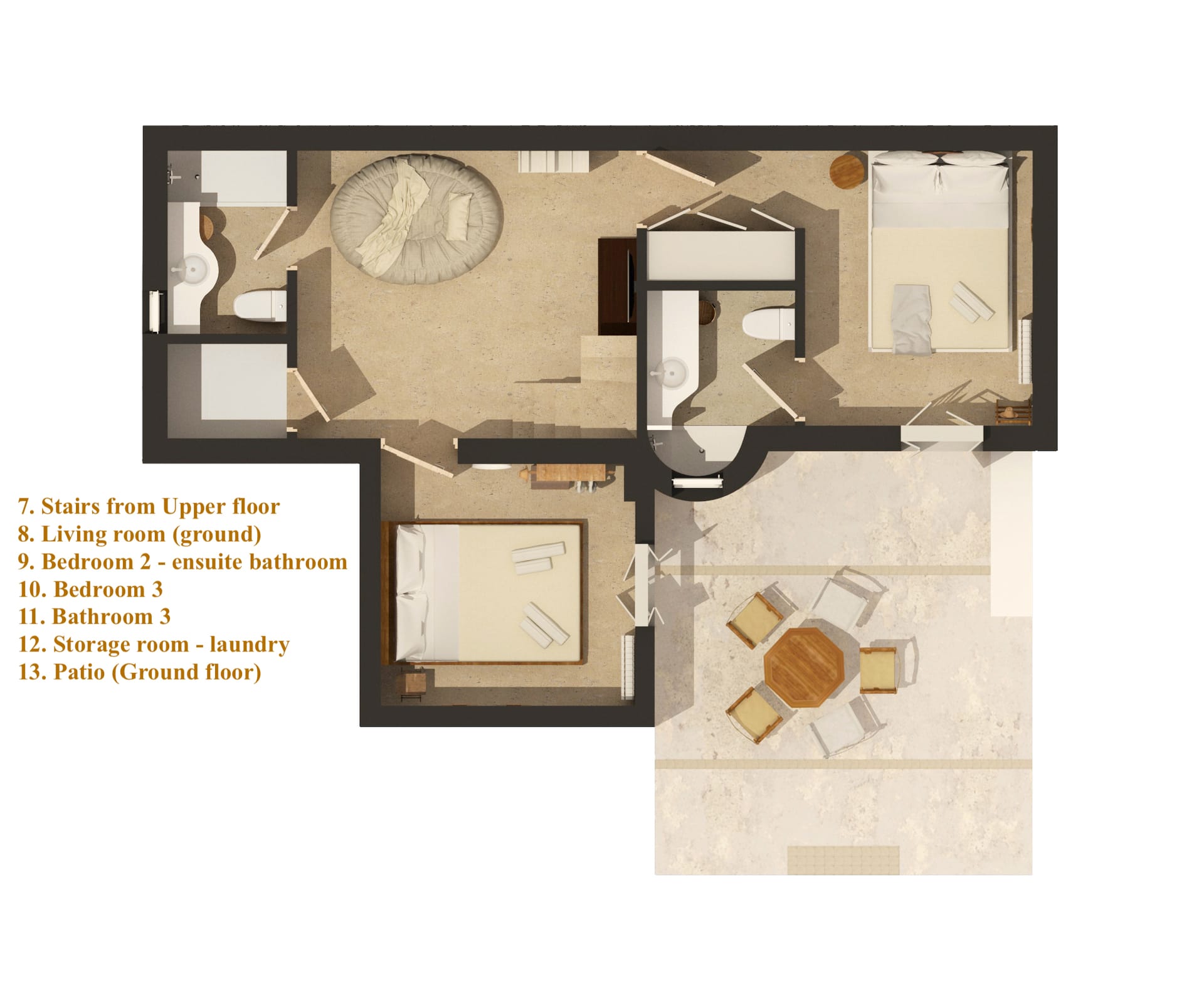 ➡️ Master-bedroom 2 ( Queen-sized bed, en-suite bathroom) on the ground level