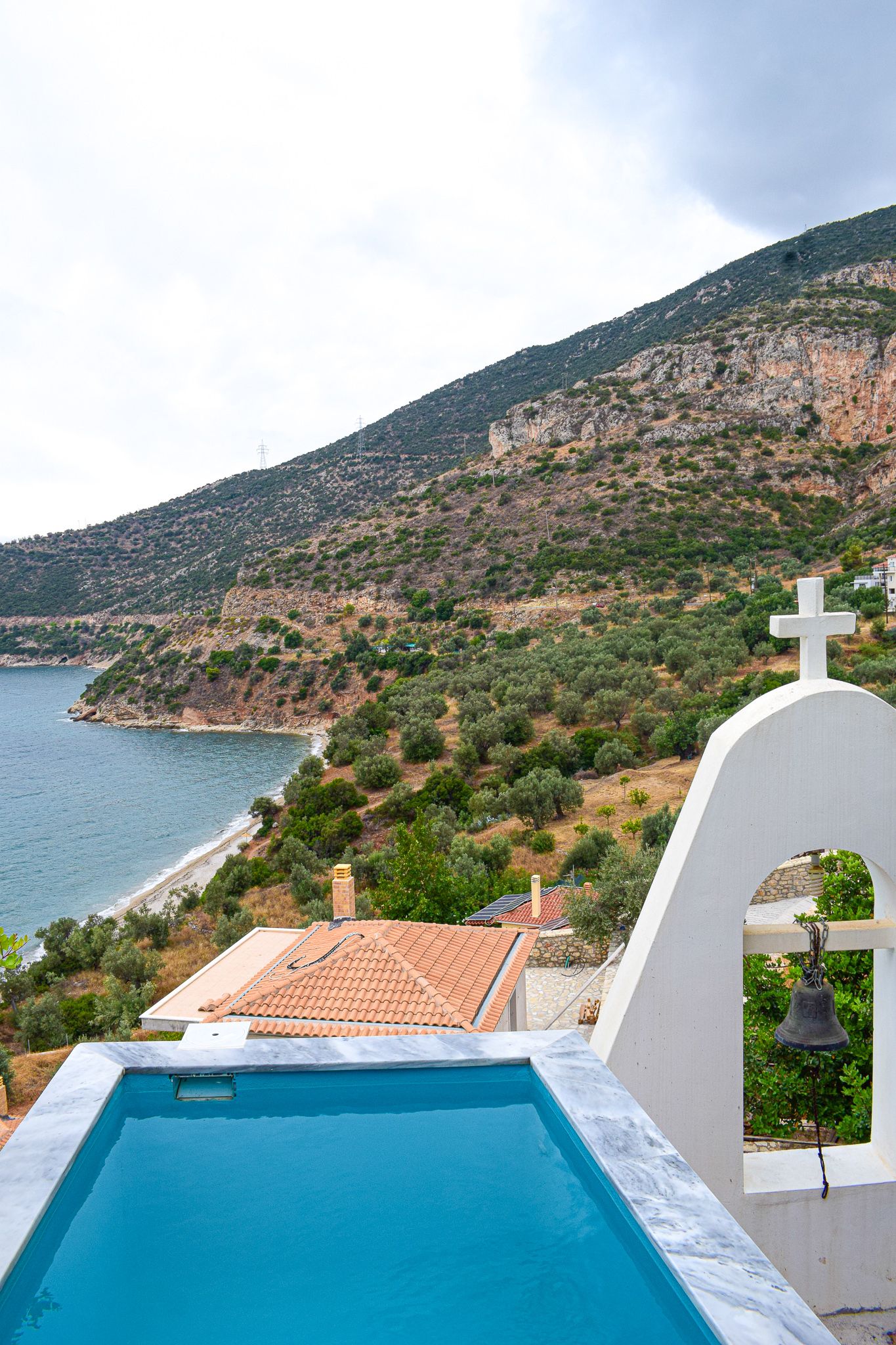 The villa is located on a hillside overlooking Aegean Sea offering impressive view of the Aegean sea and the surrounding islands of Rineia and Tinos, offering spectacular Sunsets.