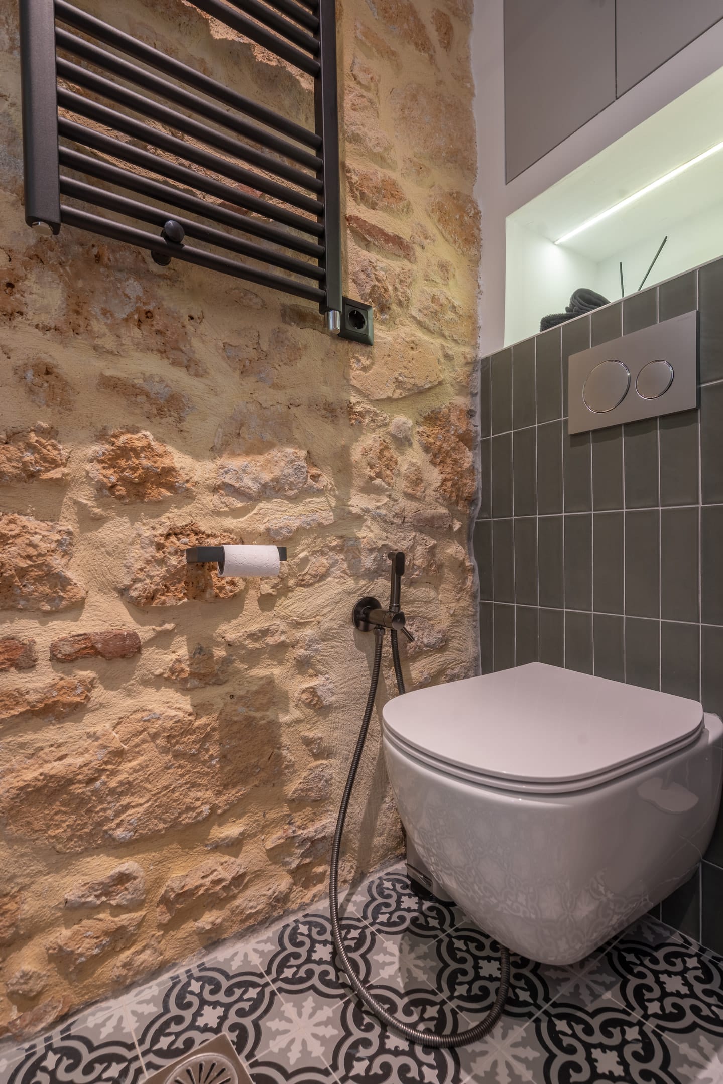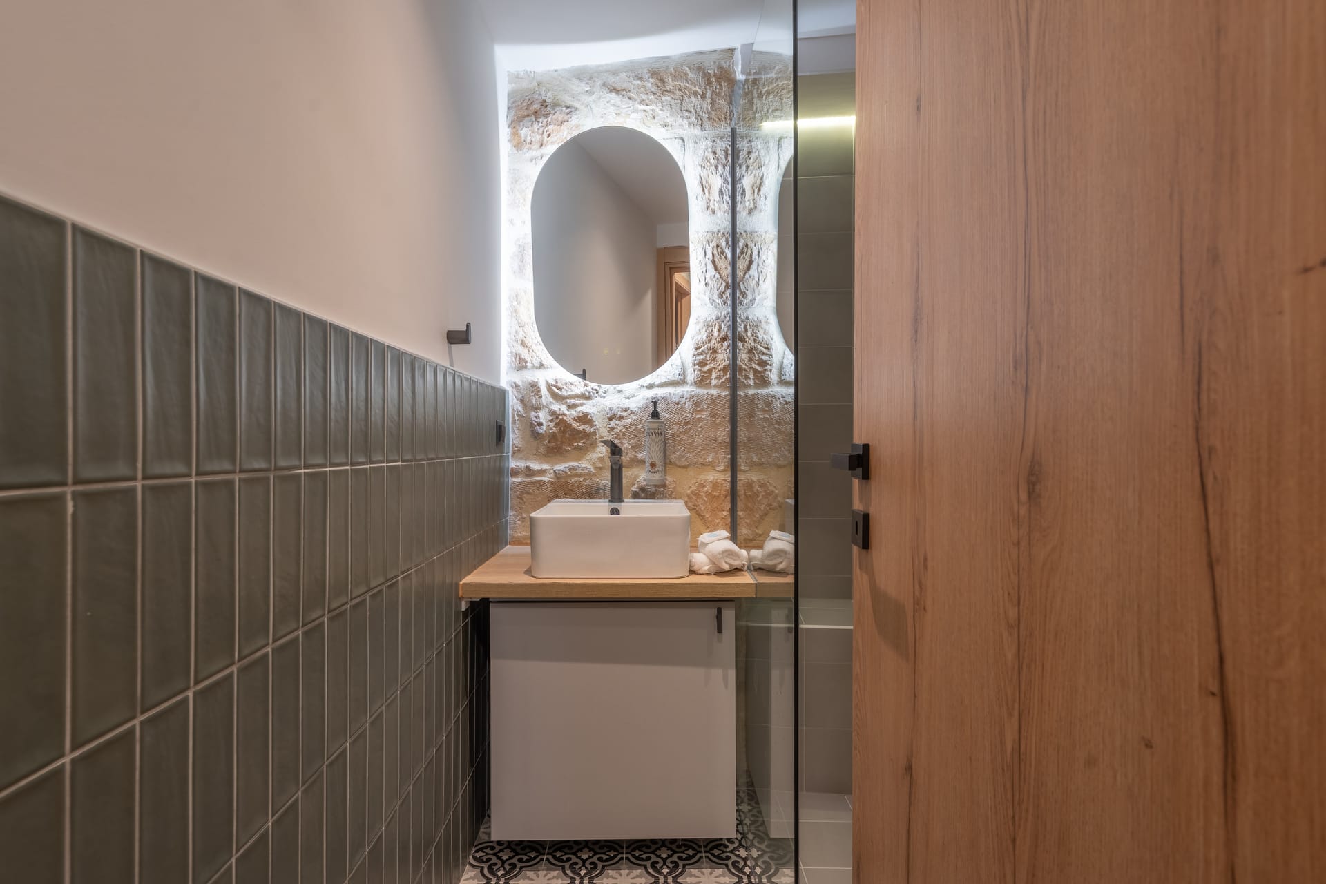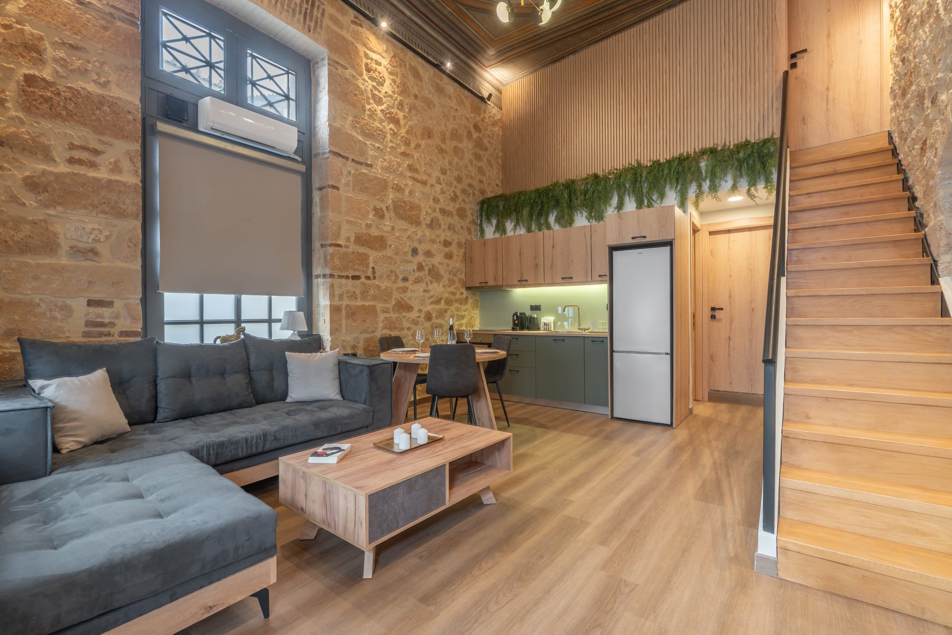 On the ground floor, you will find a spacious open-plan living area, a fully equipped kitchen, a beautiful bedroom, and an ultra-luxurious bathroom. A staircase leads to another bedroom, also with a double bed, creating a space of comfort and elegance.