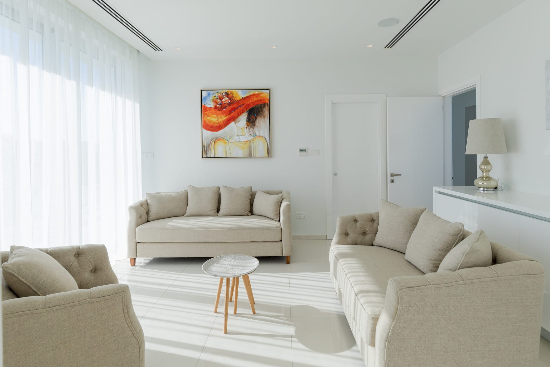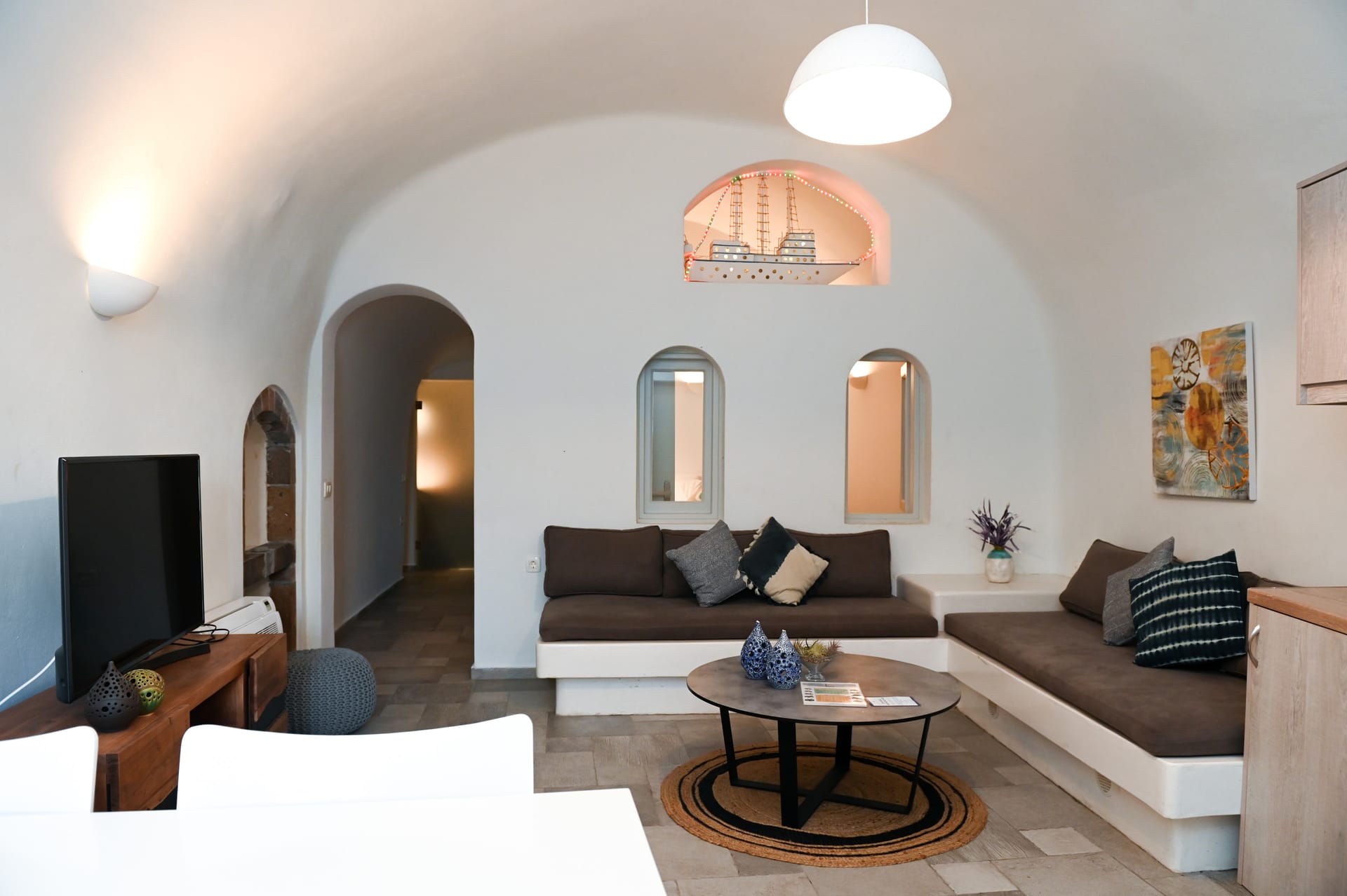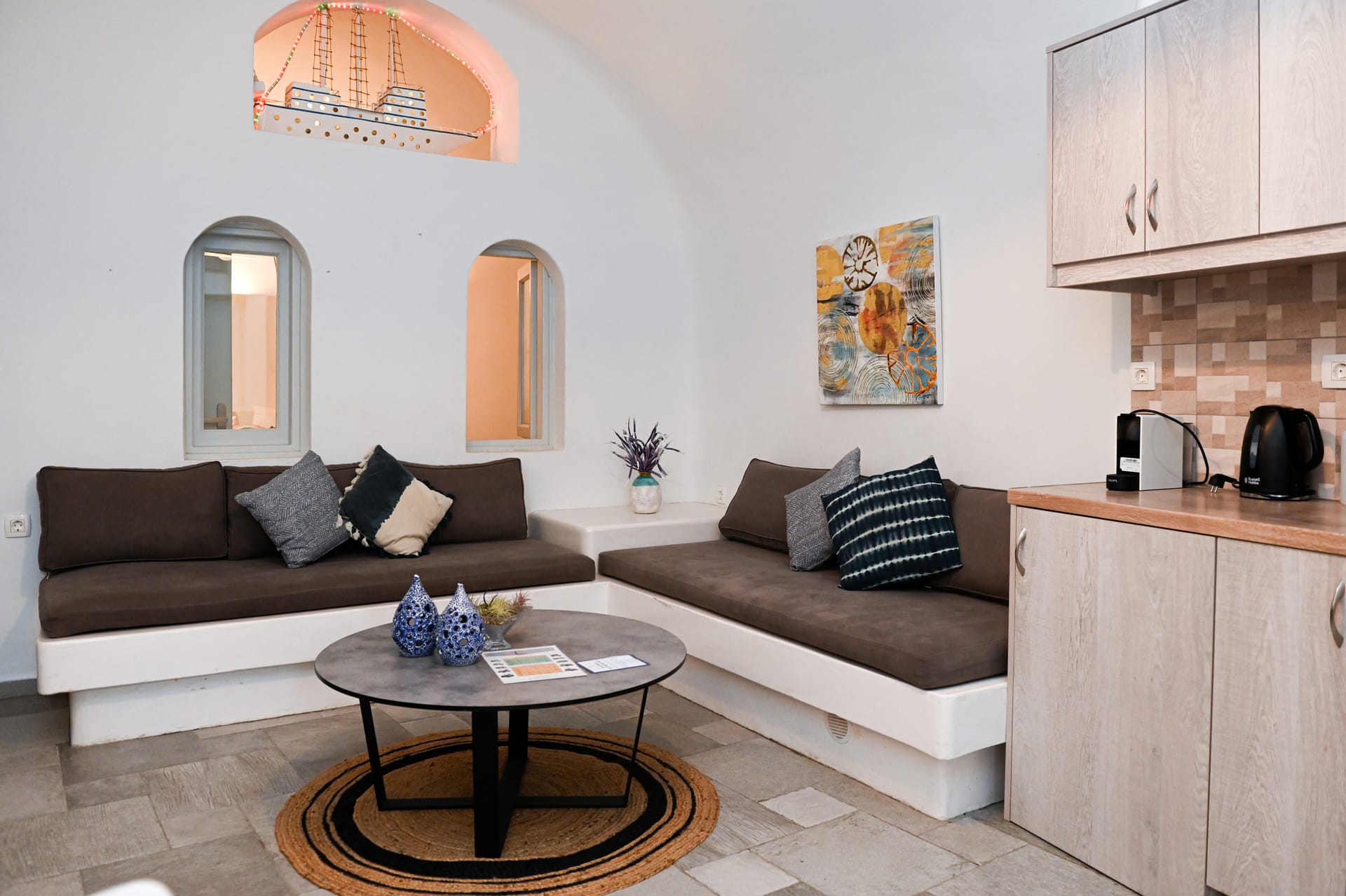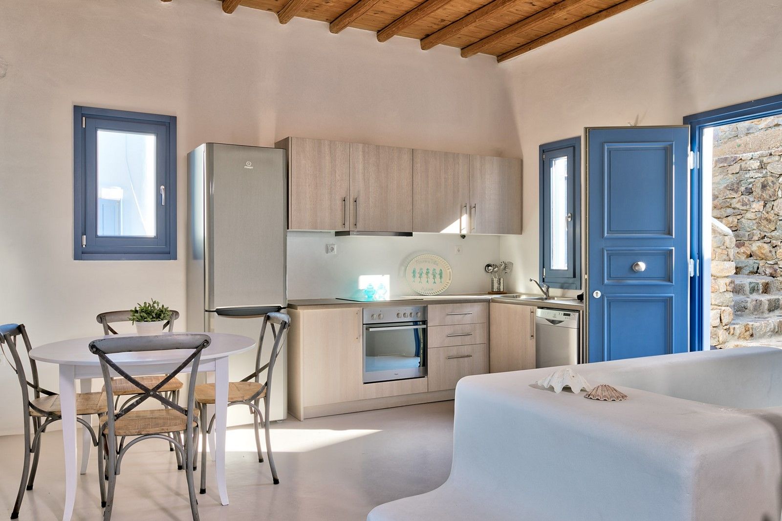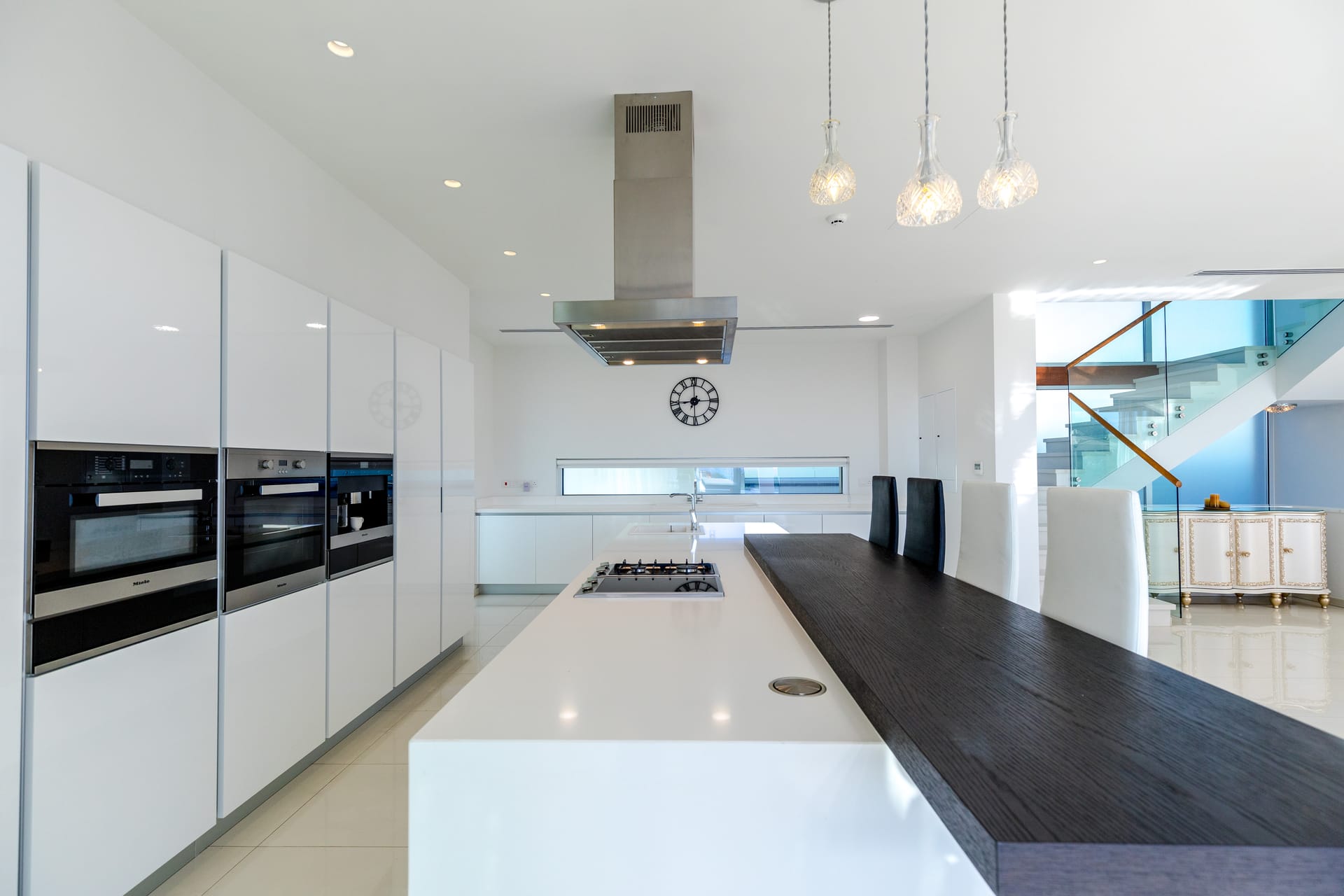 Enter your luxurious seaside escape and a spacious, sun-filled open-plan living room, dining area and fully fitted kitchen with high-end appliances await you.