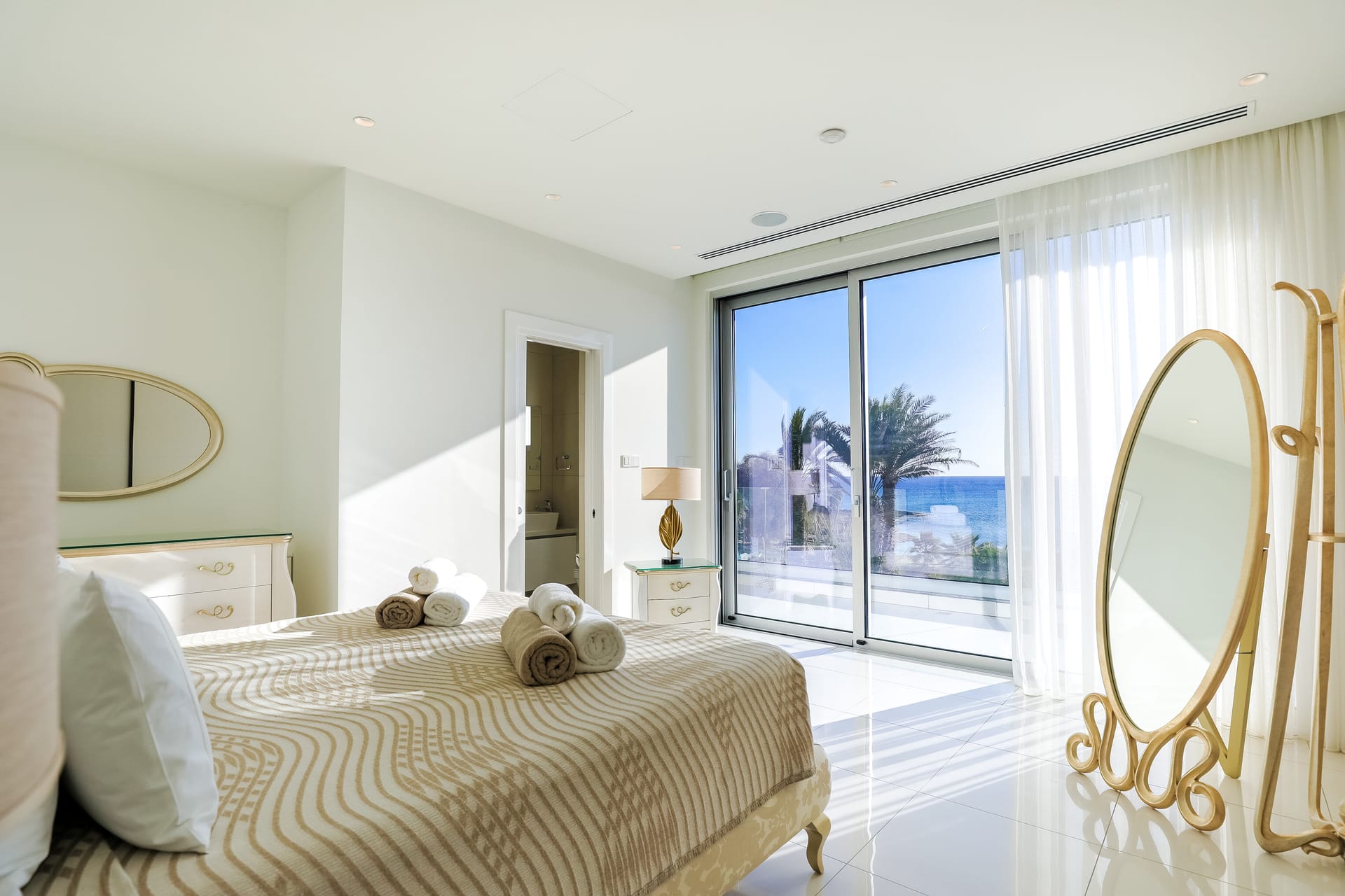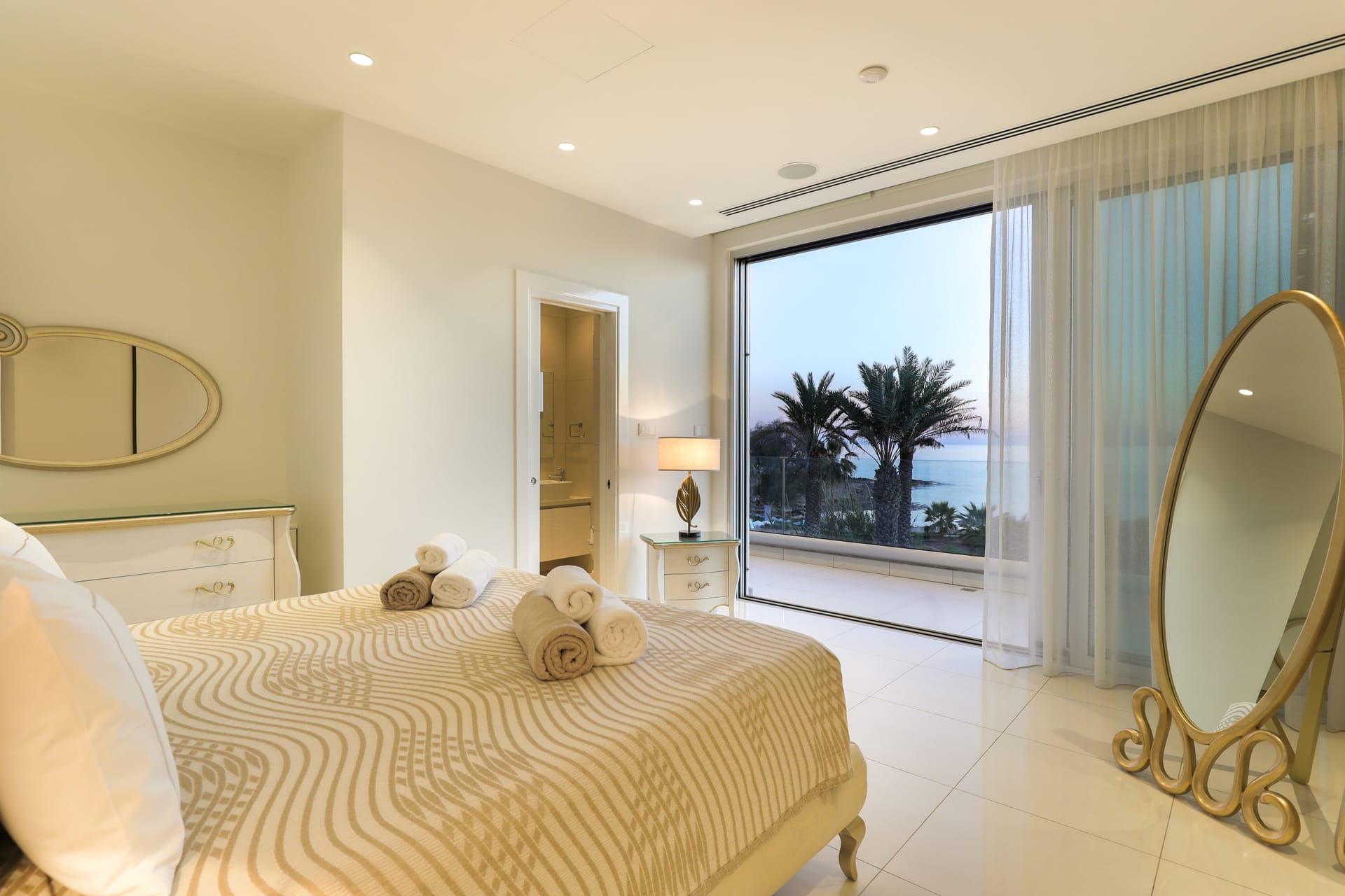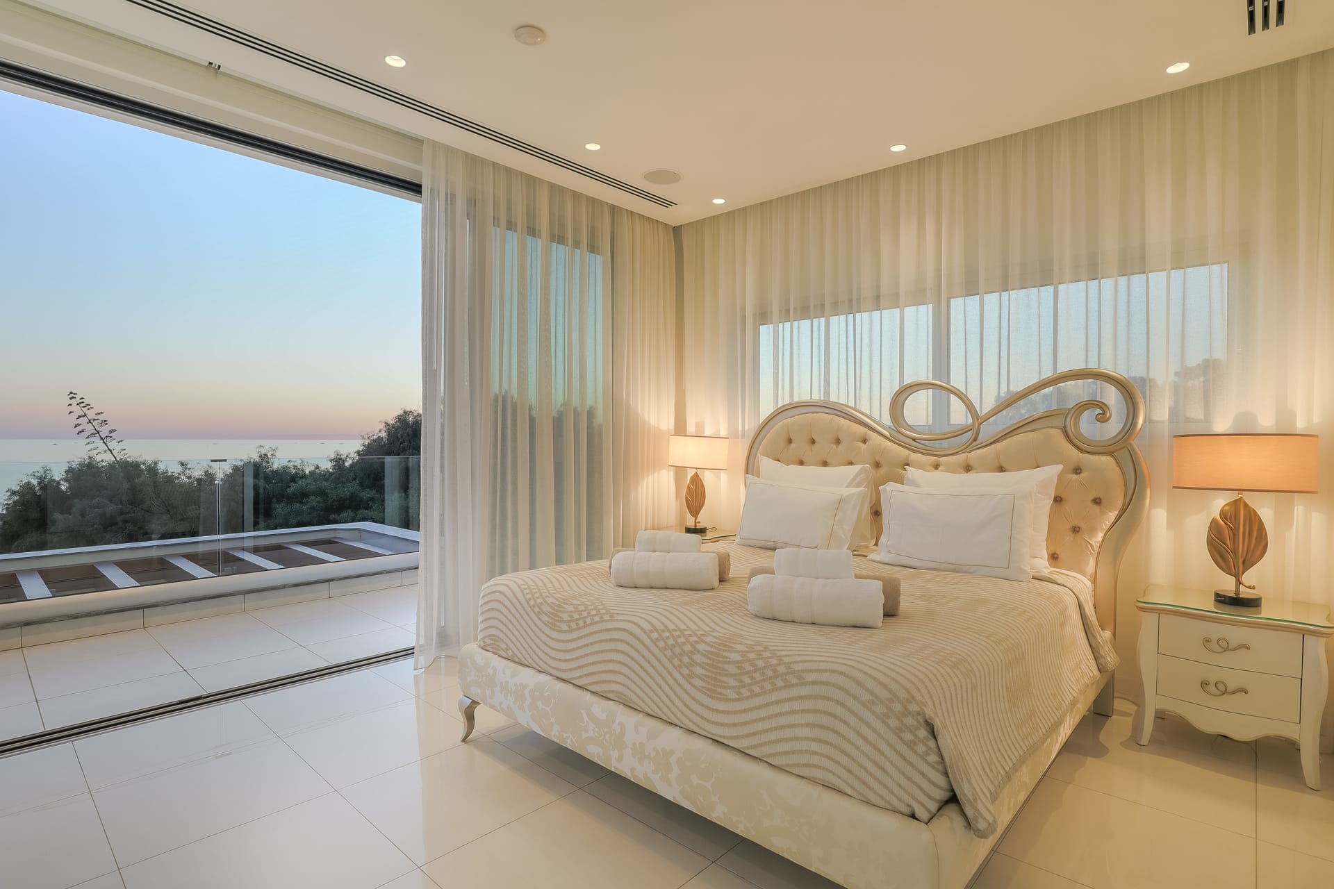 Apart from luxurious interiors, the Palace of Mediterranean was designed to help you make the most of your Cyprus holiday in the sun. You’ll find it will be difficult to leave the outdoor infinity pool with jacuzzi section, except to sunbathe on the surrounding deck or enjoy a BBQ meal al fresco. Alternatively, retreat to the furnished rooftop terrace and enjoy an evening under the stars.
