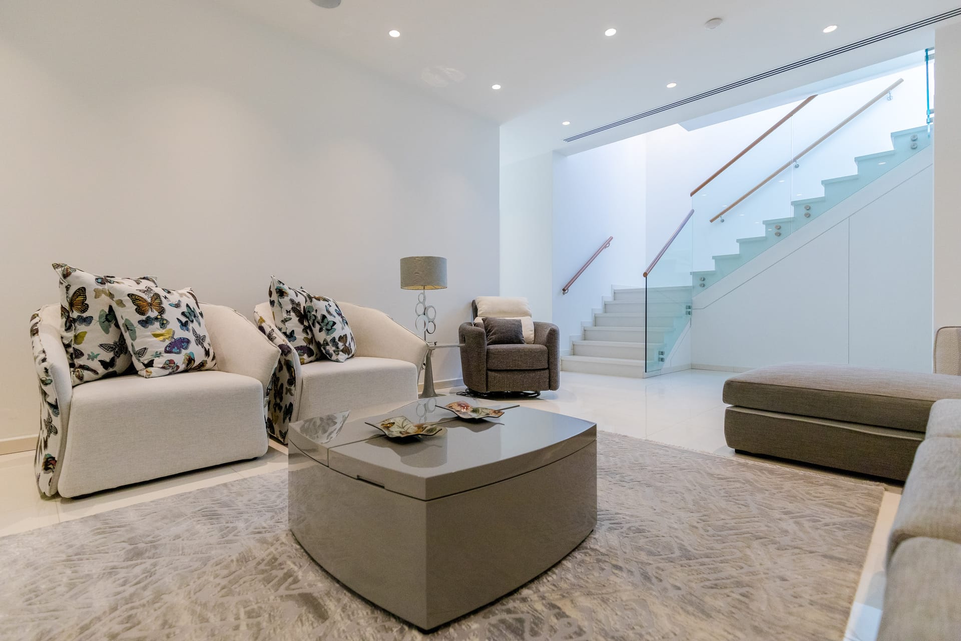 On the upper floor, each of the three double bedrooms with a stunning sea view balcony provides the privacy of a twin vanity ensuite bathroom. Two bedrooms also have a walk-in wardrobe, while the master bedroom connects to its own private sitting room.