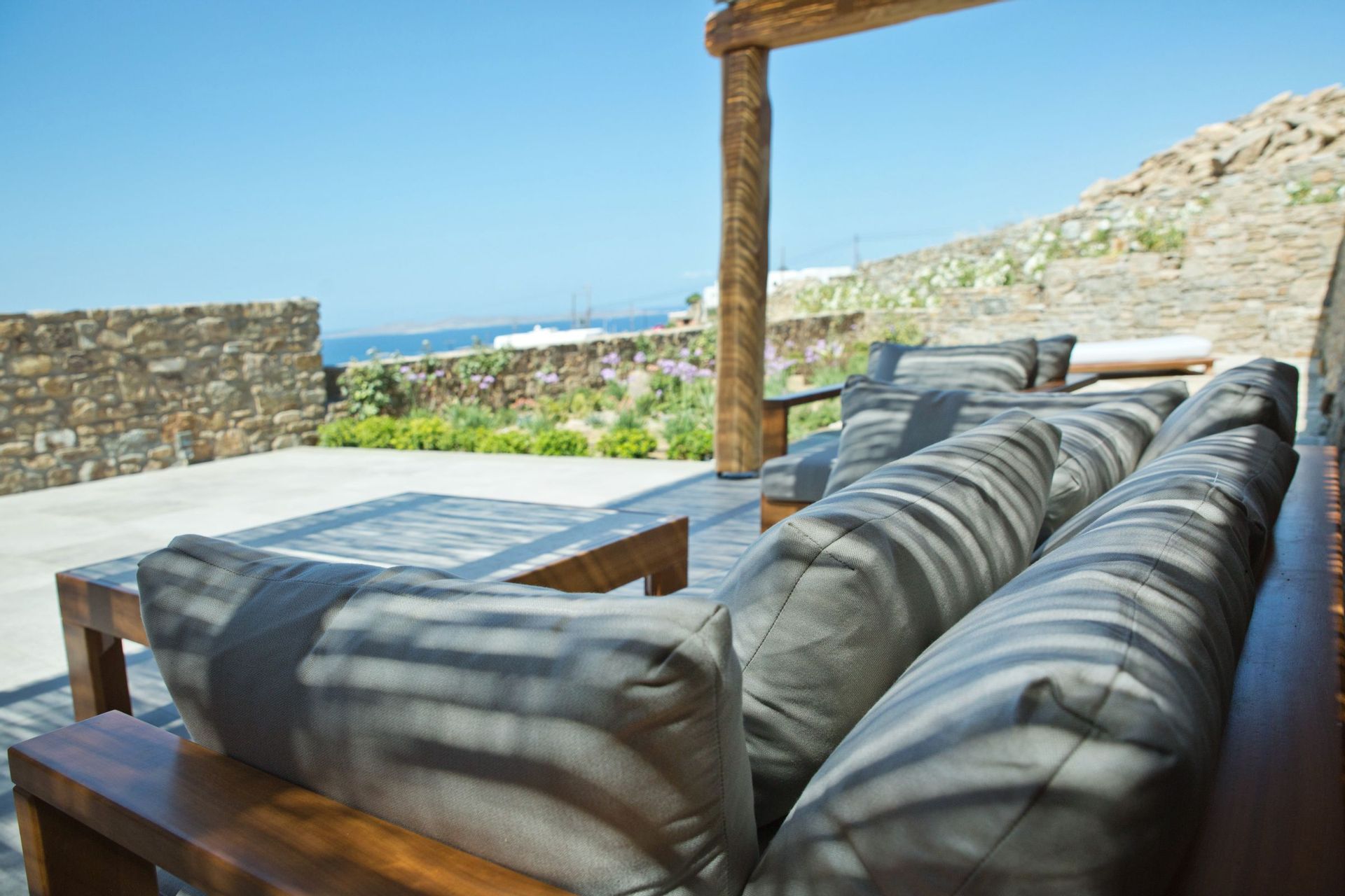 Imagine a long sunbathing session, after taking breakfast on the large veranda, just before driving to one of the nearby spectacular sandy beaches that, among other, have made Mykonos one of the world’s top holiday destinations. Villa El Corazon is situated in Agia Sofia, just a few minutes away from Mykonos town. The ideal location for those seeking a relaxing holiday in a quiet setting, while being conveniently near some of the most famous beaches, world-renowned restaurants, bars and nightclubs such as Scorpios and Nammos.