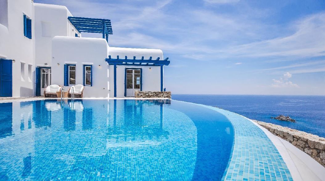 blue of the Aegean Sea. Built in a traditional Myconian whitewashed architecture and