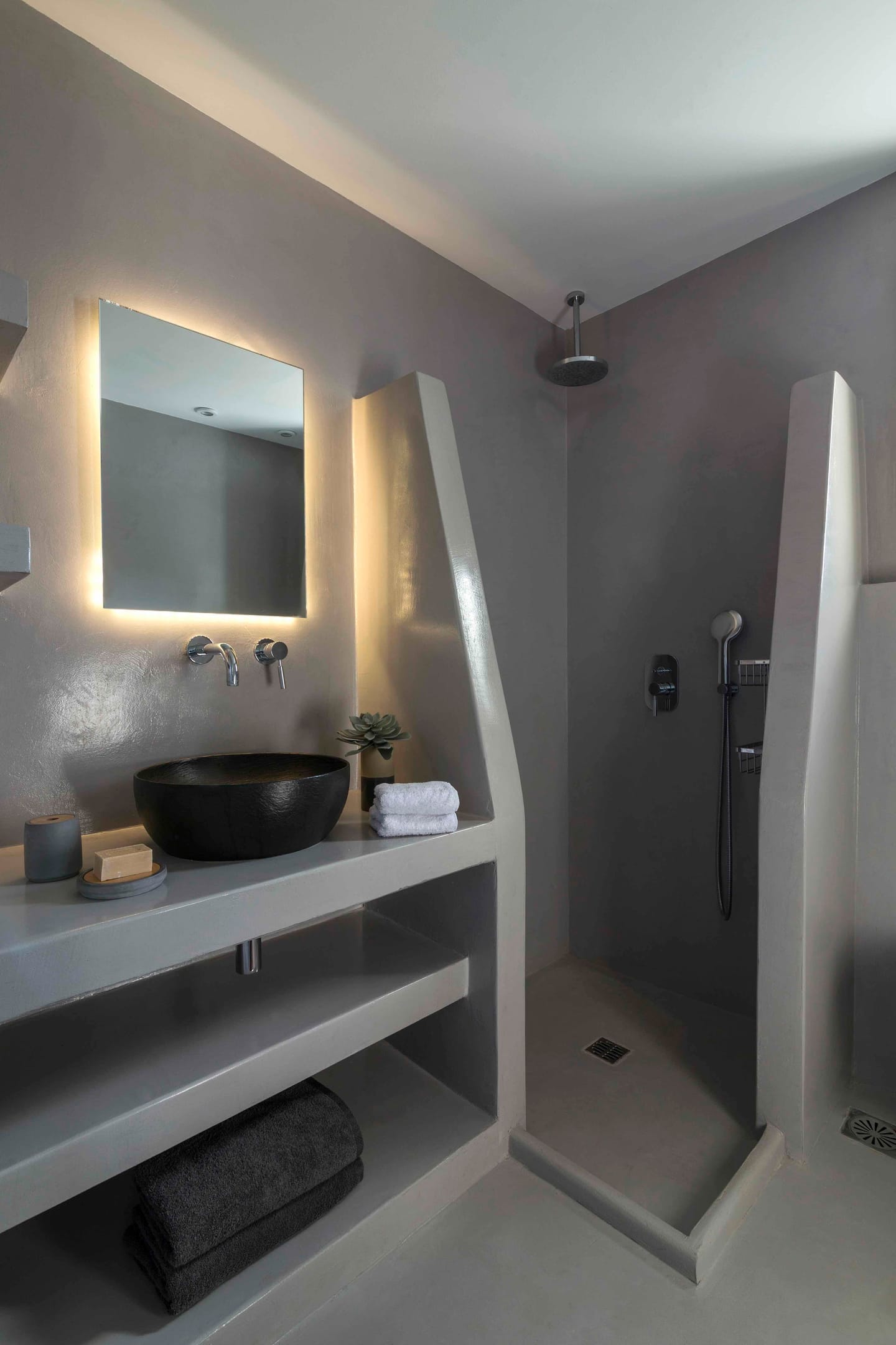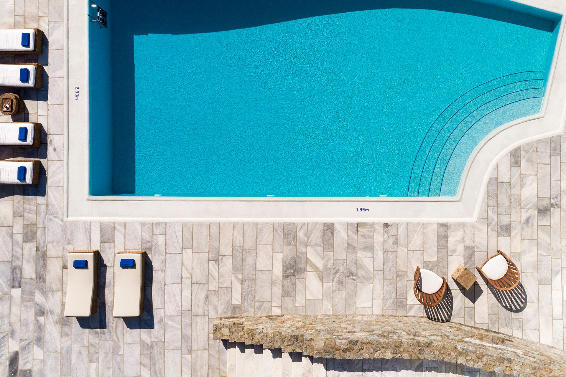 perfectly combined by a Cycladic wall design with bright blue colored walls. You will