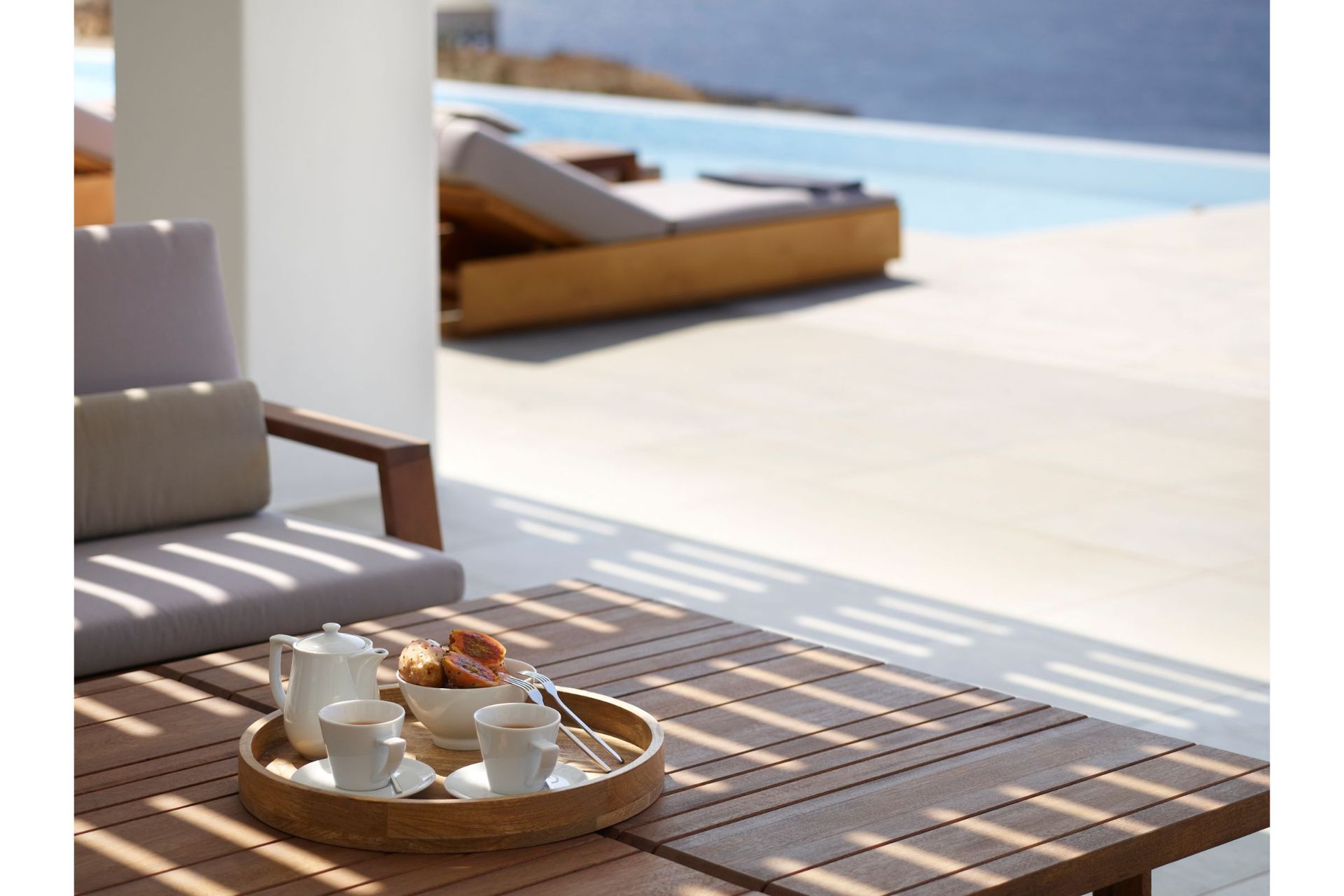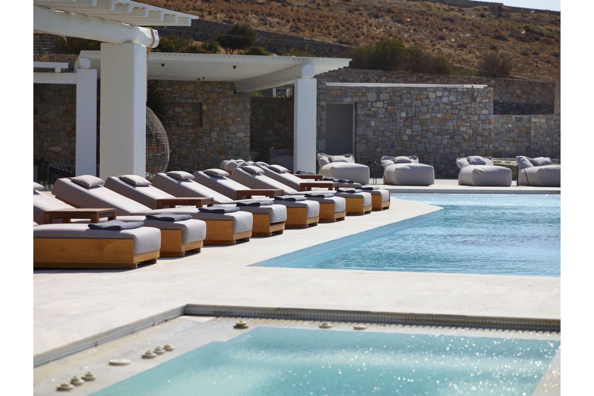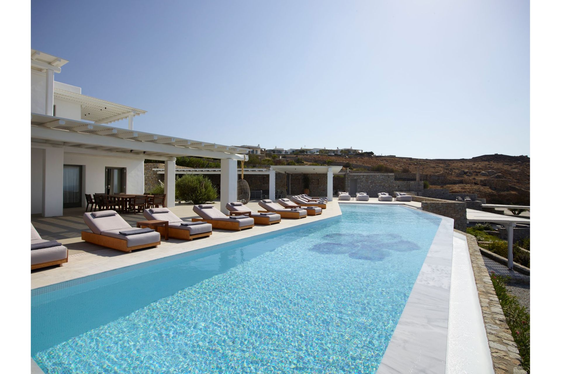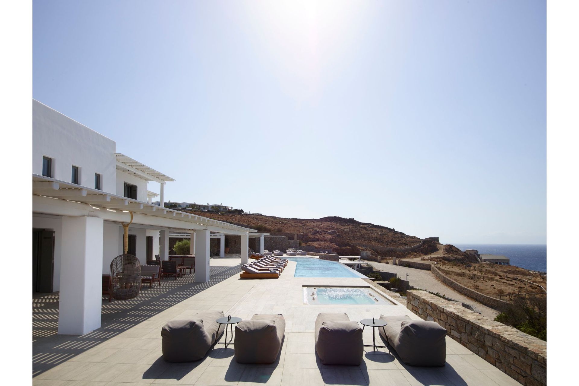Step into Villa Vitae and life live to the fullest! Villa Vitae is located in the popular area of Kalo Livadi, just 300 m away from Kalo Livadi’s cosmopolitan beach one of the island’s most historical and sought-after beaches, which features a wide range of bars & restaurants to choose from. Guests enjoy the convenience of being 300 m away from the sea and of course the calming and picturesque sea views. This residence is ideal for friends and families. Located just 15 minutes away from Mykonos Town, experience a location that offers the best of both worlds – serenity while being right on the edge of the action.