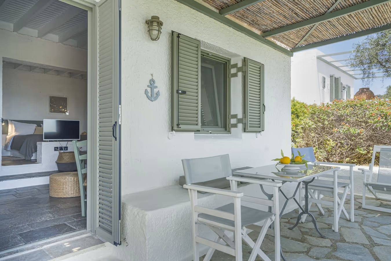It is set in its own landscaped grounds above the beaches of Kalafatis and Agia Anna, only 150 meters from them.