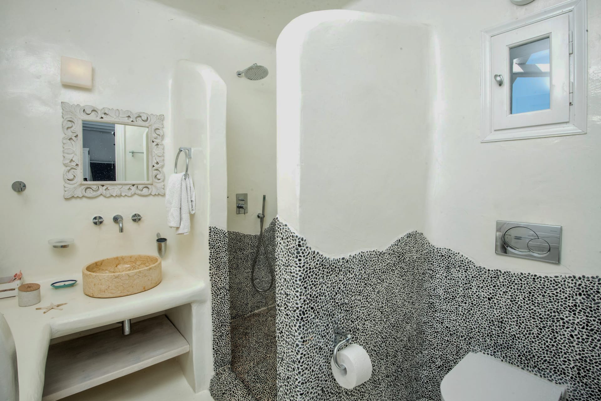 The combination of its stunning outdoor spaces, including the central pool terrace, and thoughtful design touches that invite nature in make it a perfect place for unwinding in style. The villa's luxurious features, coupled with the natural charm of Mykonos, create a unique sanctuary.