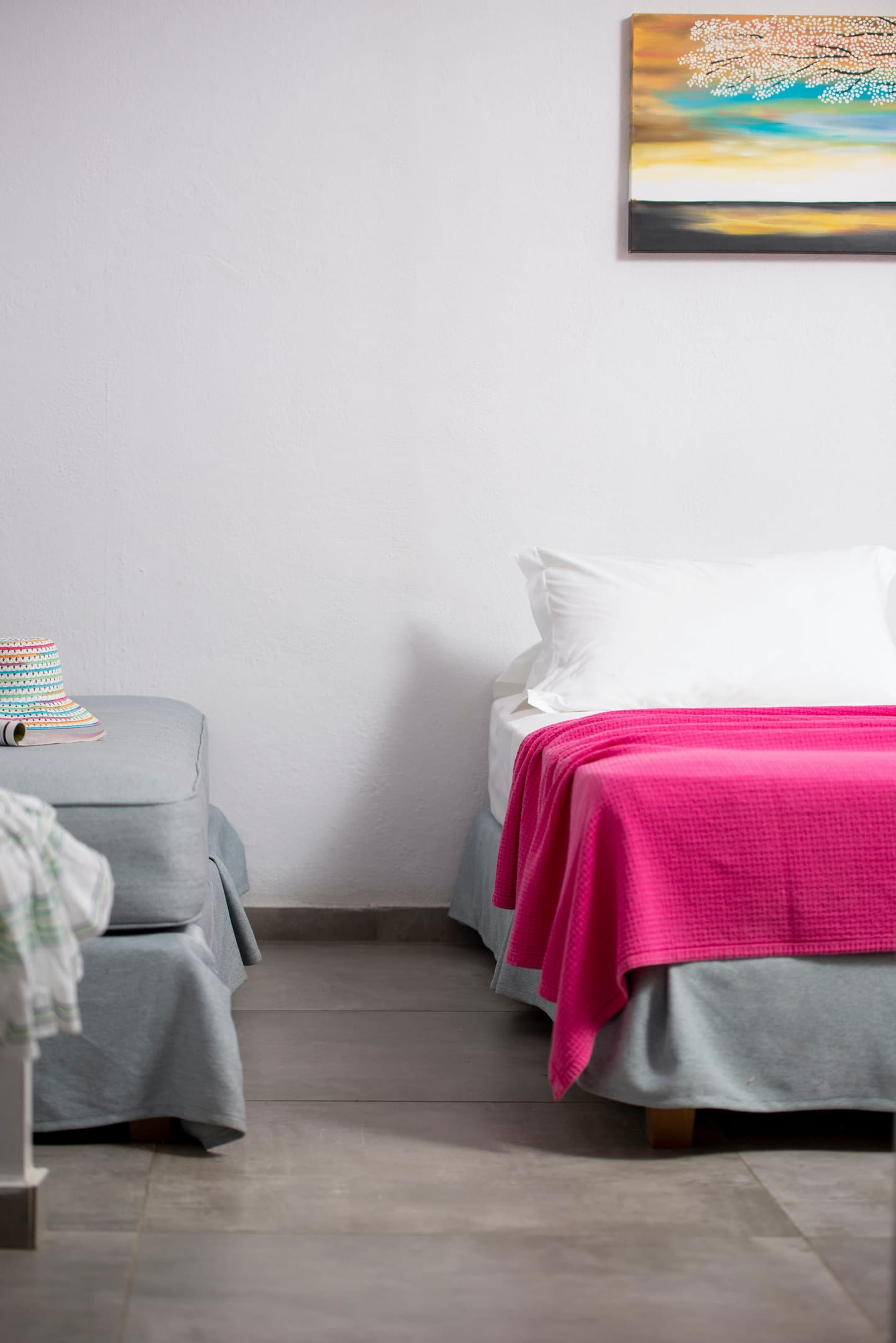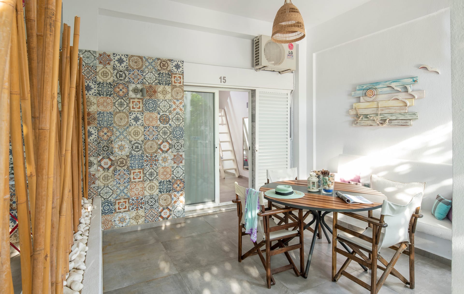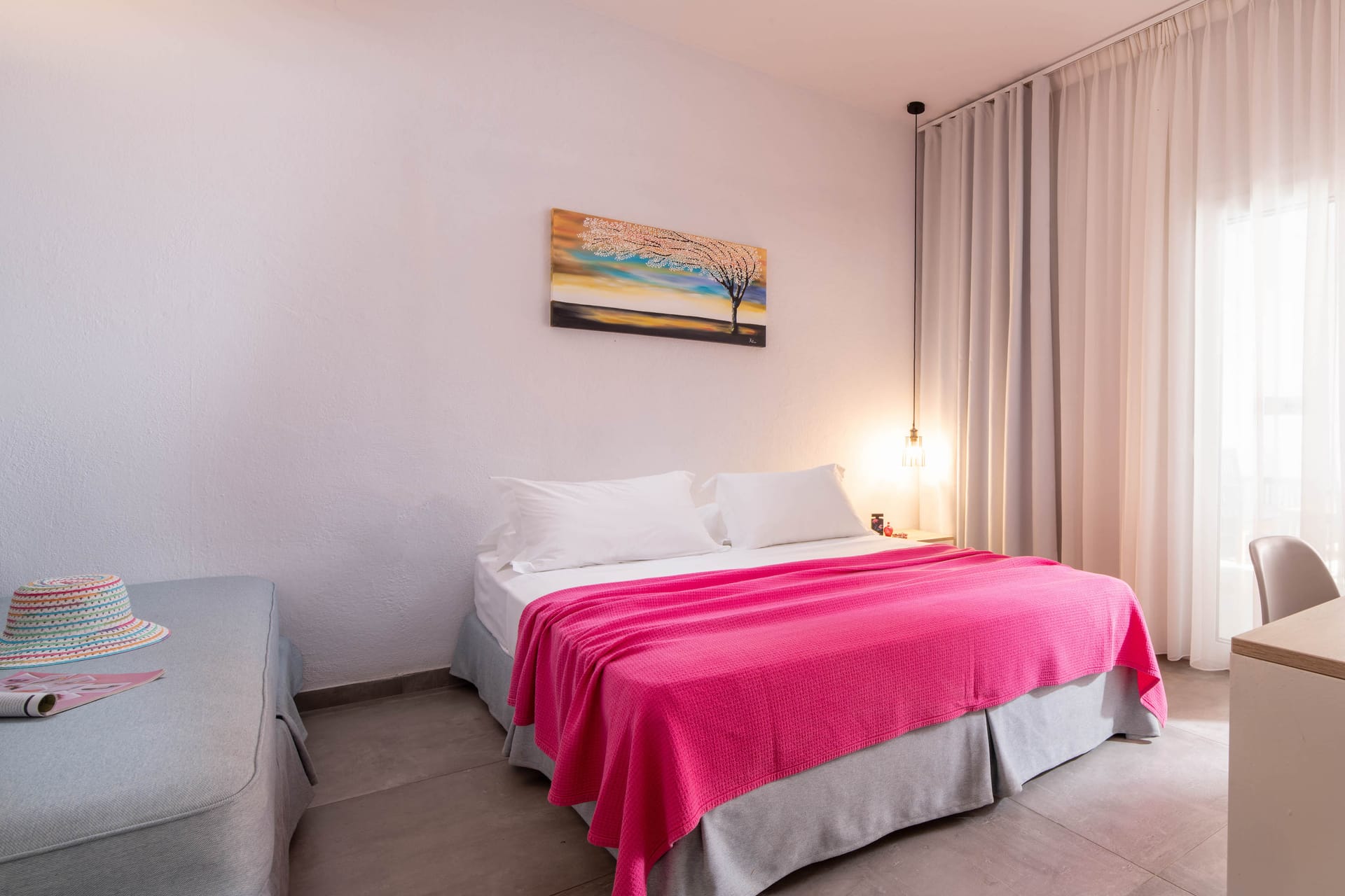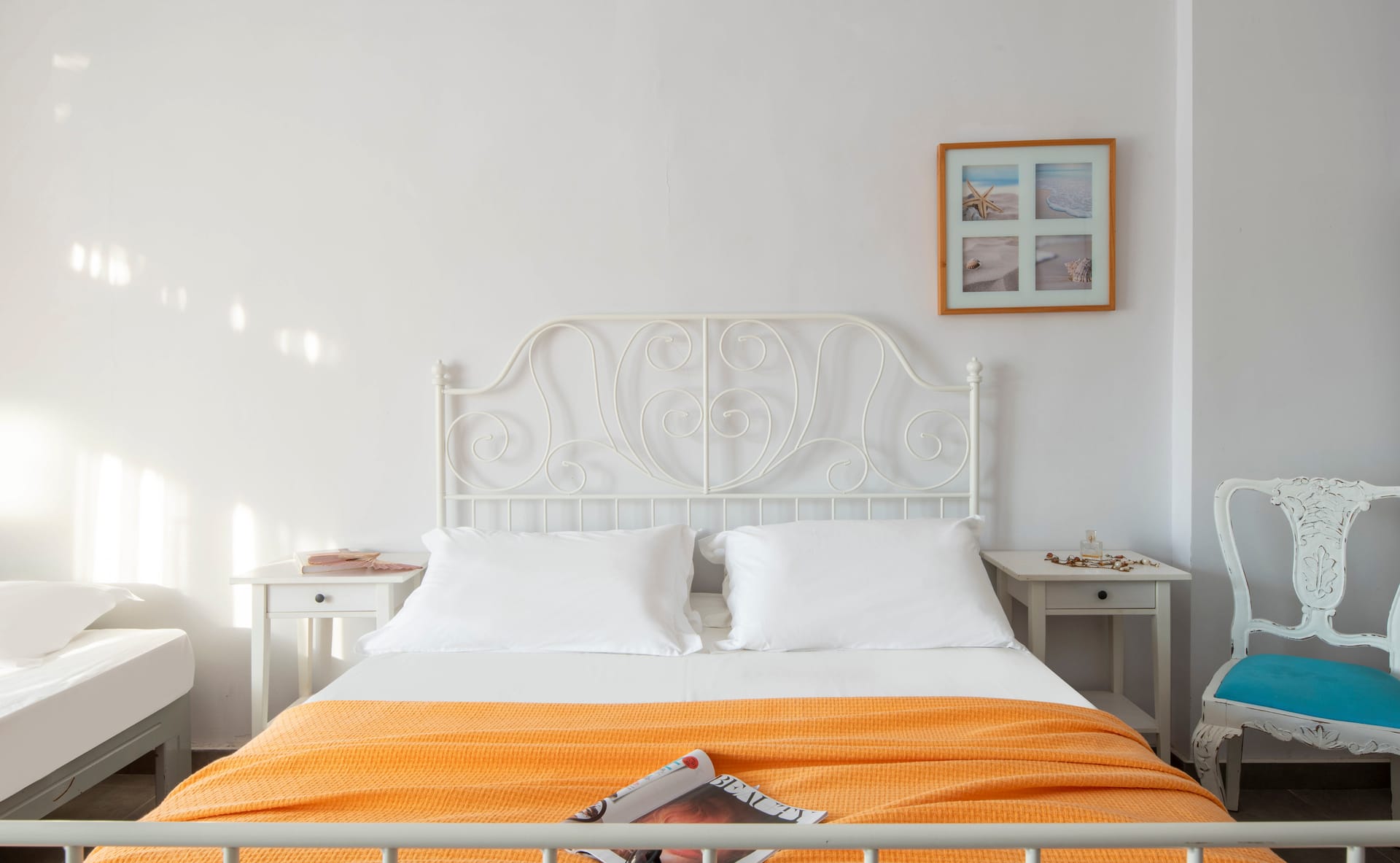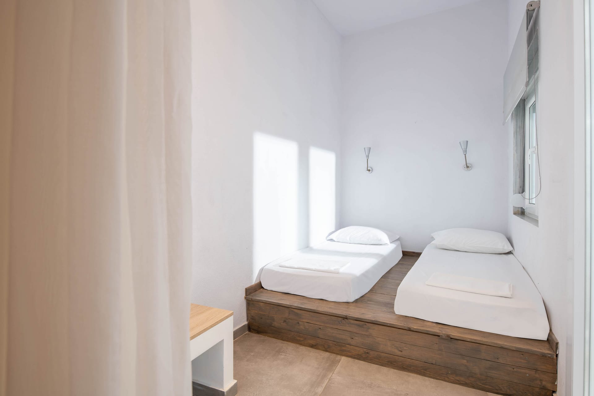 Family rooms with a surface of 21-22 m² have 1 double bed and 2 single-ones, featuring a fully equipped kitchen. They are located on the 1st or 2nd floor and can host 2 adults or a family (2 adults and 2 children). The family room has a big wardrobe, bathroom with shower, and private balcony with tents and sea or street view.