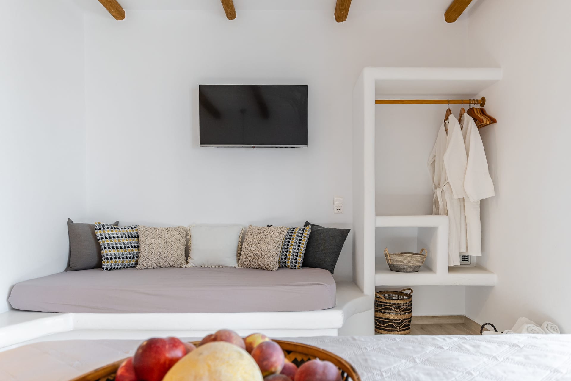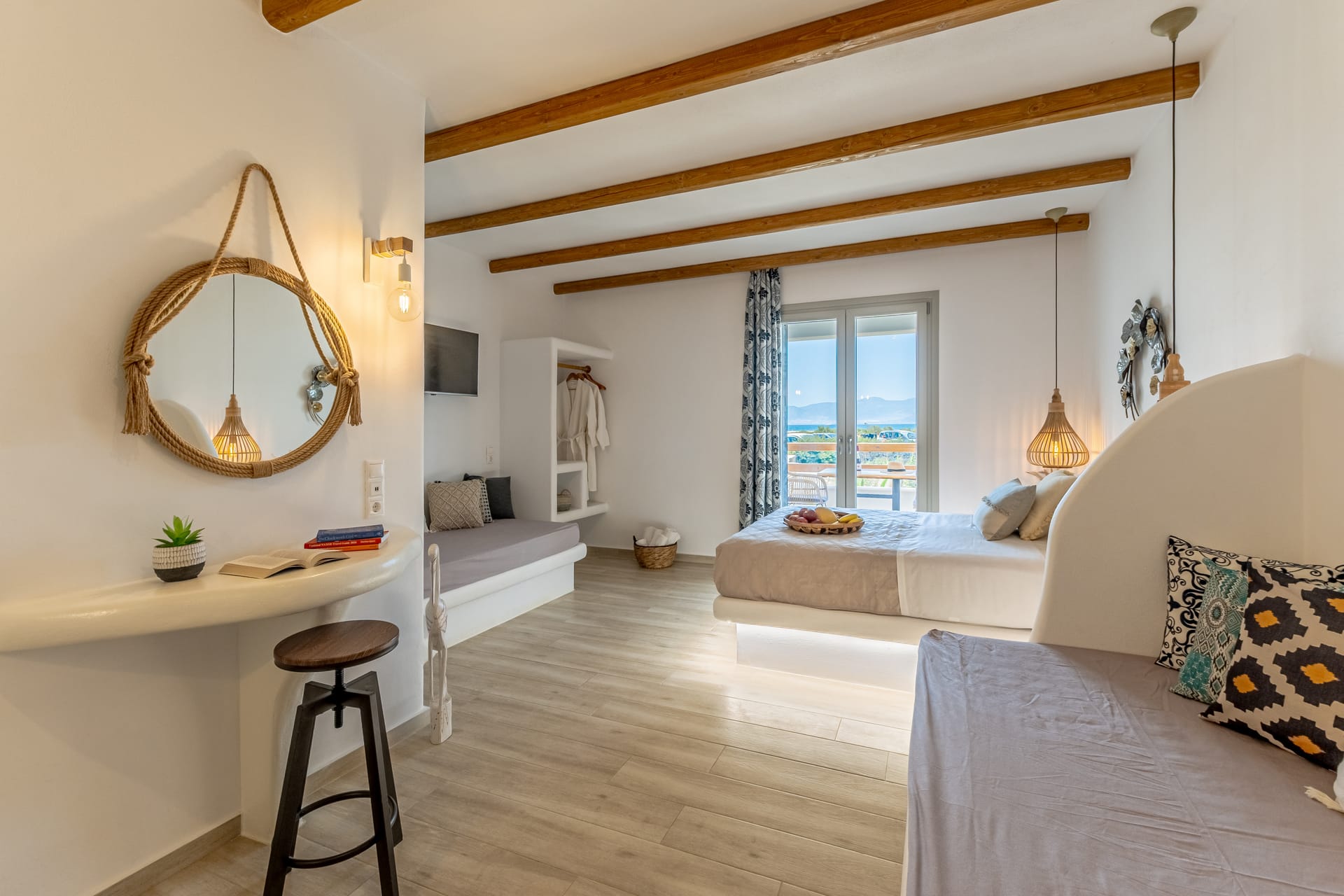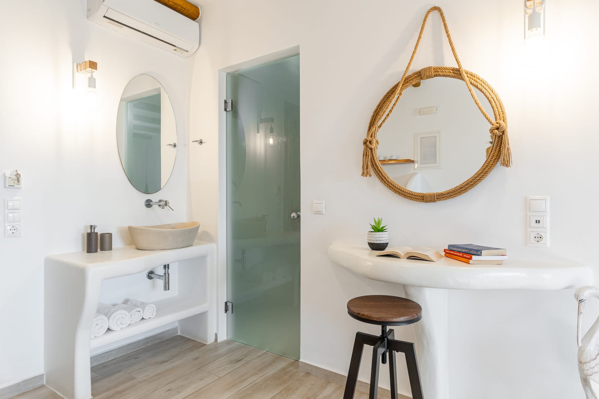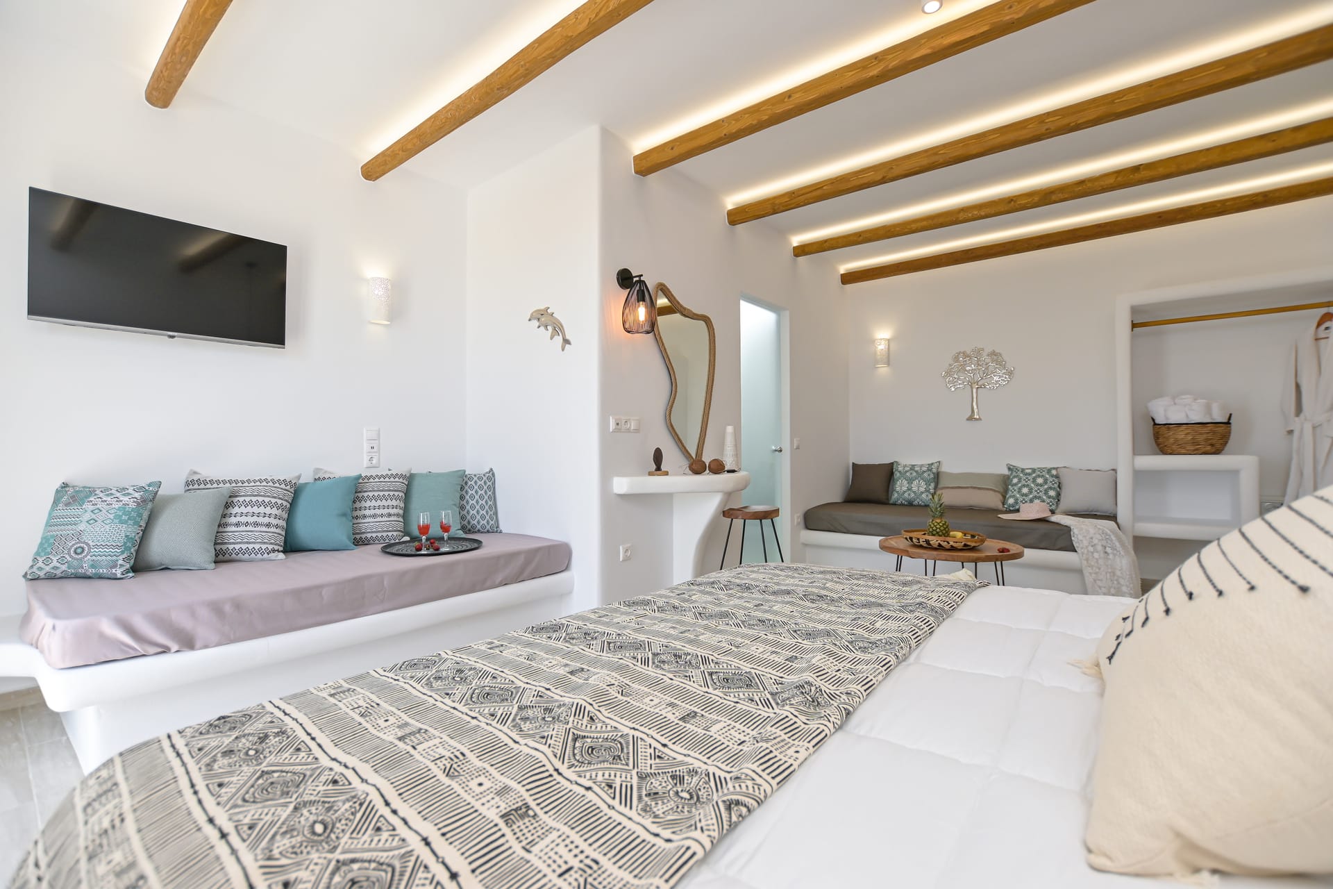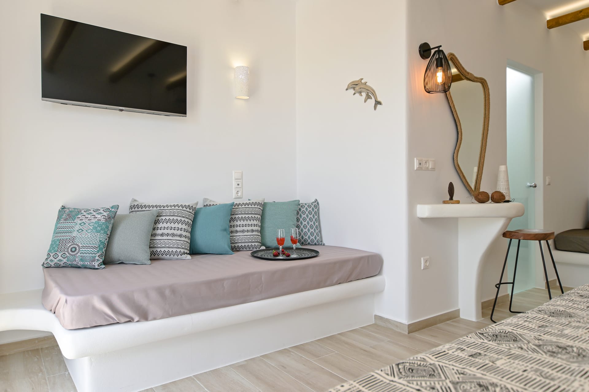This suite is the perfect choice for those who seek space, comfort, and stunning sea views in an authentic Cycladic setting.