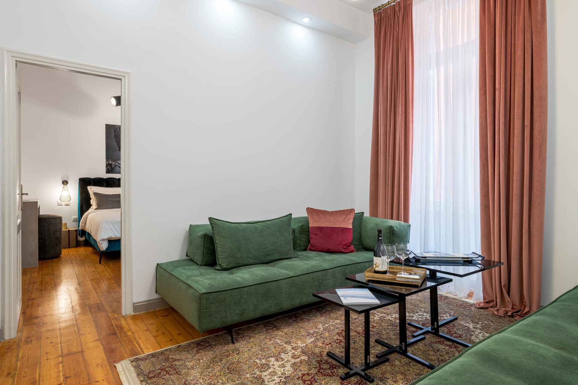 2 Mazi suites can be rented as a single unit, constituting the ideal choice for a large friends and family getaway. With four luxurious bedrooms and four lavish bathrooms, two tastefully appointed living areas, two private balconies, an attic and a fully equipped kitchen, there is plenty of room for up to 14 guests – who’ll enjoy a comprehensive homey experience in the heart of Athens.