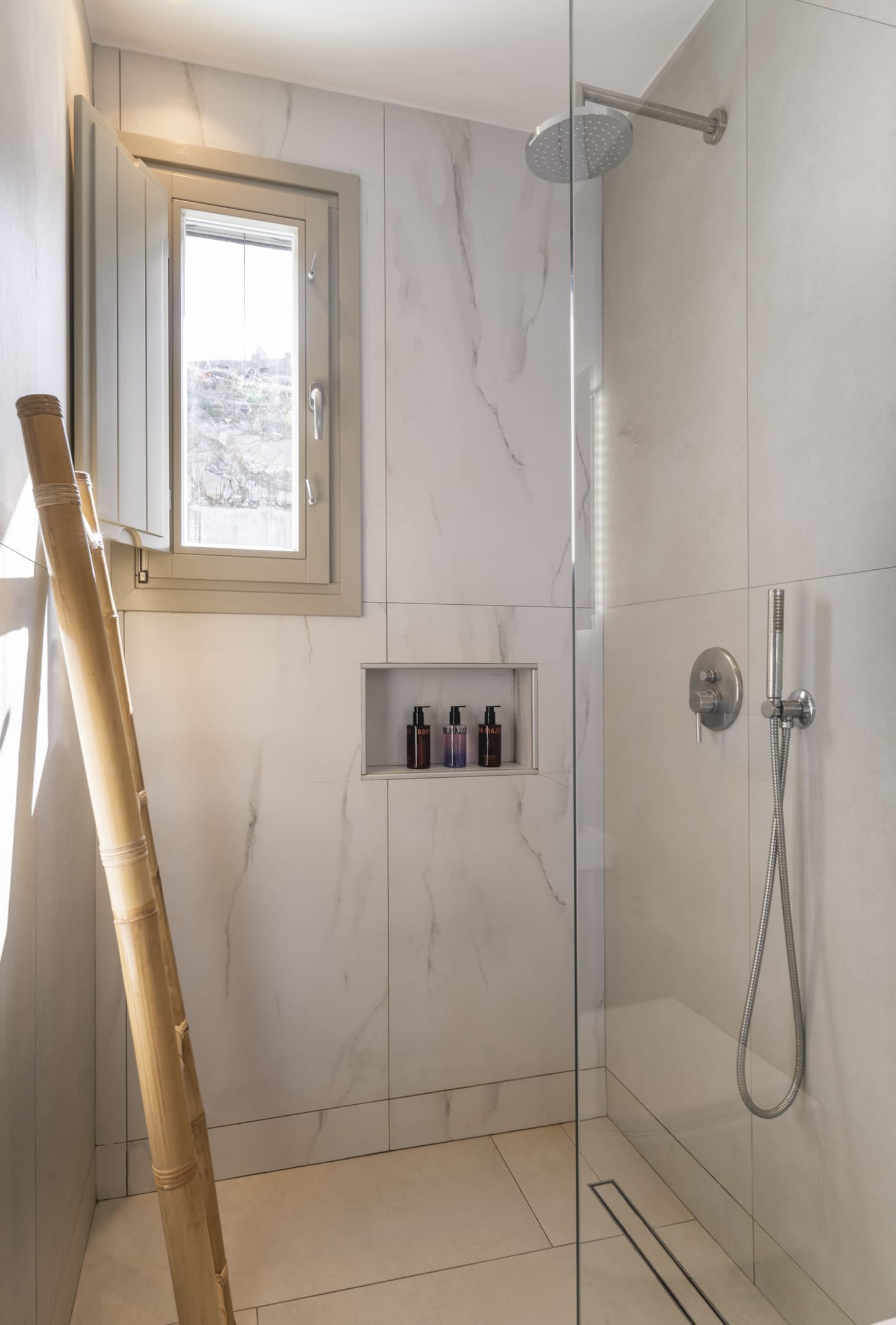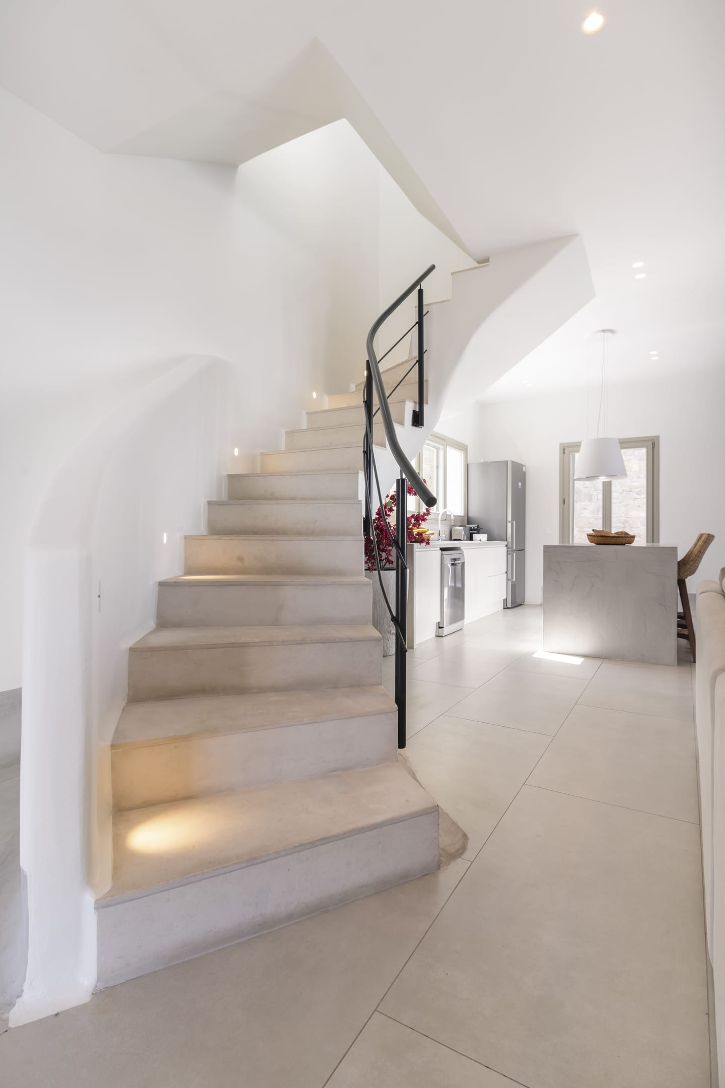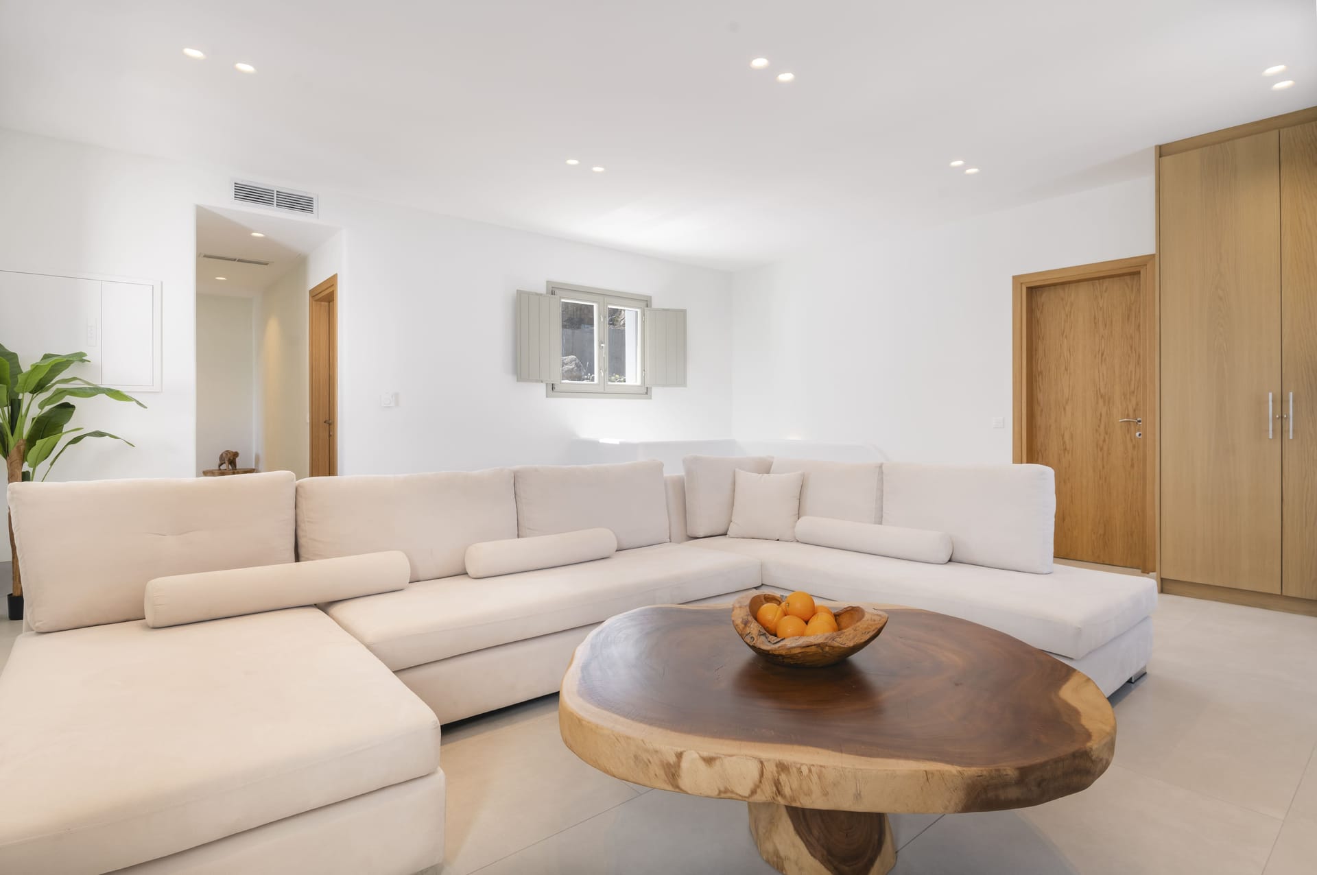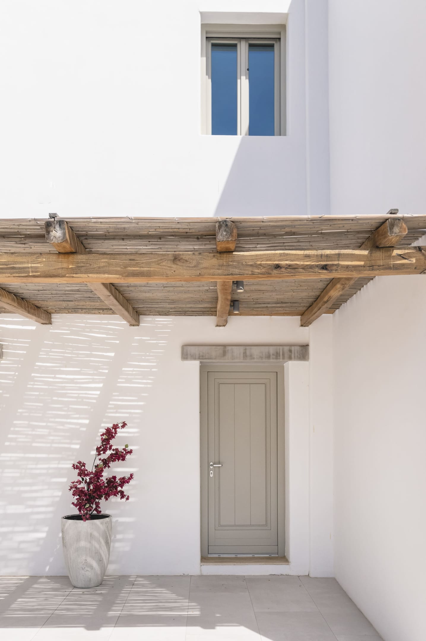 Designed in a modern Mykonian style, Villa Myko Three showcases clean lines and natural colors. Large windows and doors let in plenty of light and connect the indoor and outdoor spaces, offering breathtaking views of the Aegean Sea.