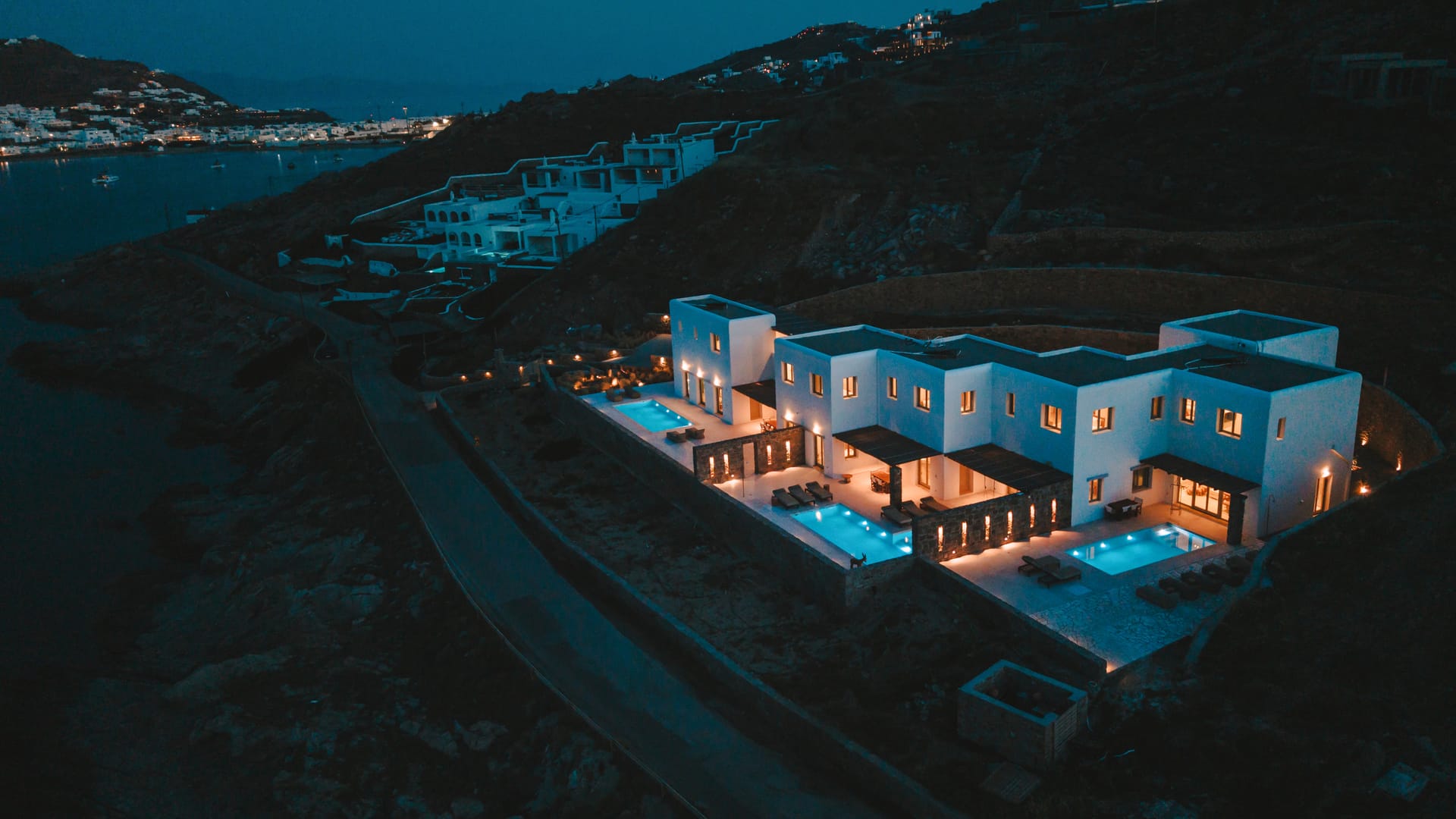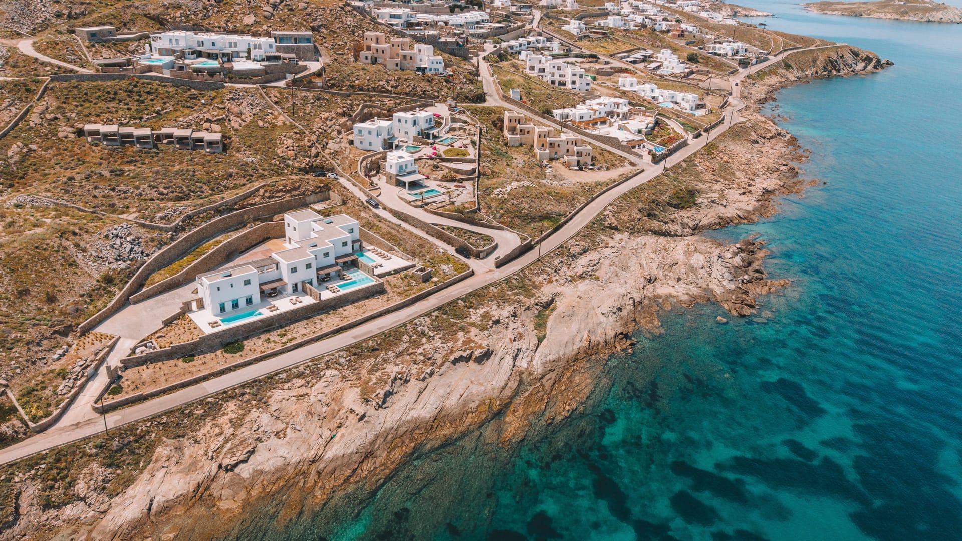 Welcome to Villa Myko Thee, a newly built home in Kanalia, Mykonos. This villa features 5 en- suite bedrooms, a private pool, and stunning views of the Aegean Sea, making it perfect for a relaxing holiday.