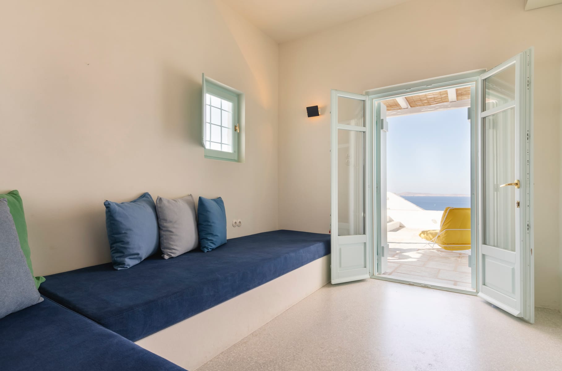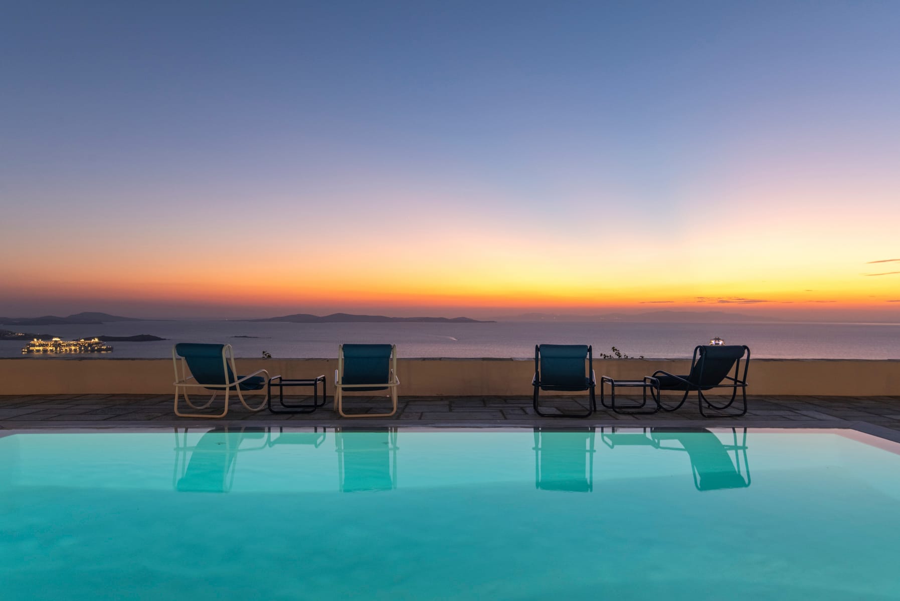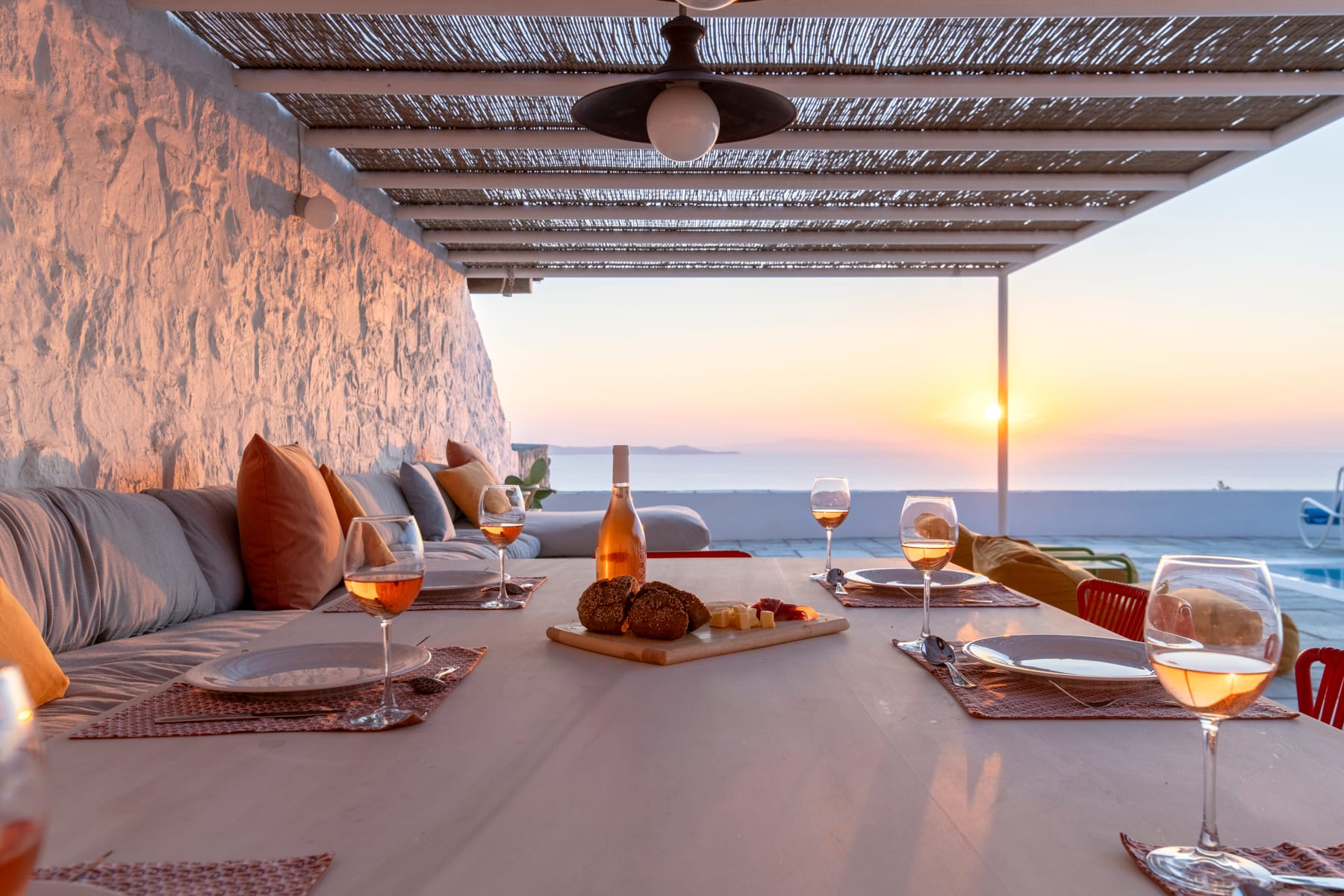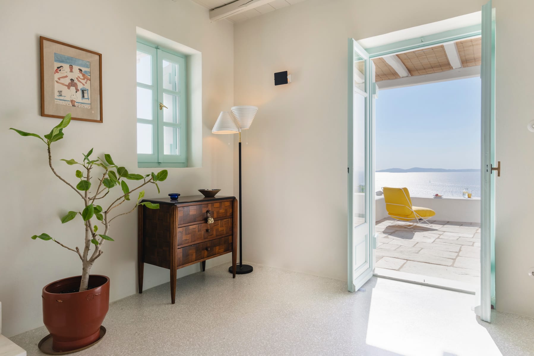 One of the most lovingly refurbished villas on Mykonos, Villa Papyrella indulges guests with sophisticated Cycladic hospitality and a feeling of being pampered by good friends. The villa boasts a 180-degree panorama of Cycladic islands and Mykonos town, offering unparalleled sea & sunset view. All bedrooms have direct access to this impeccable sea view.