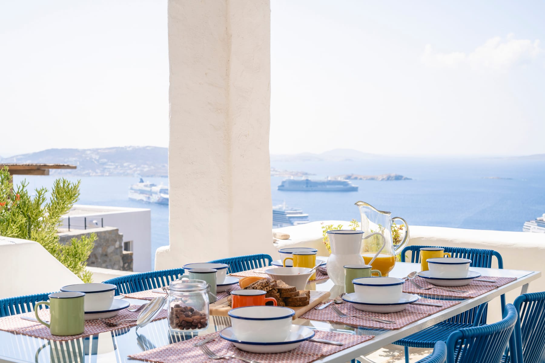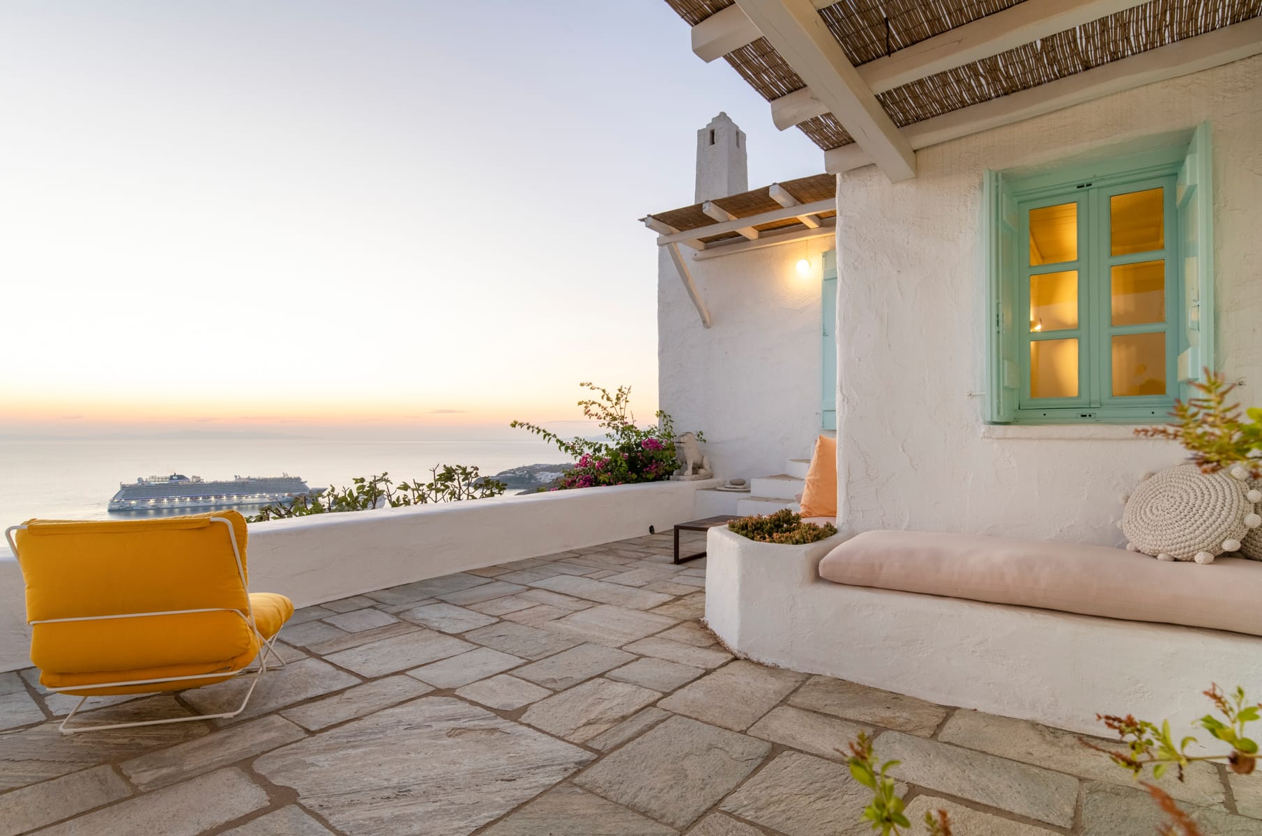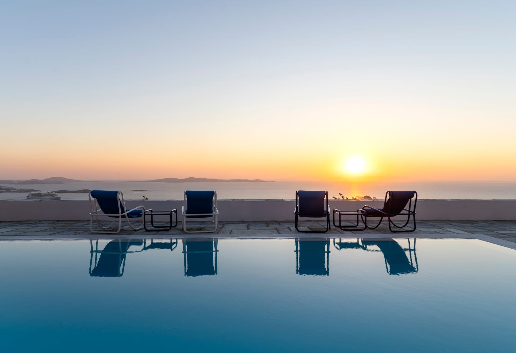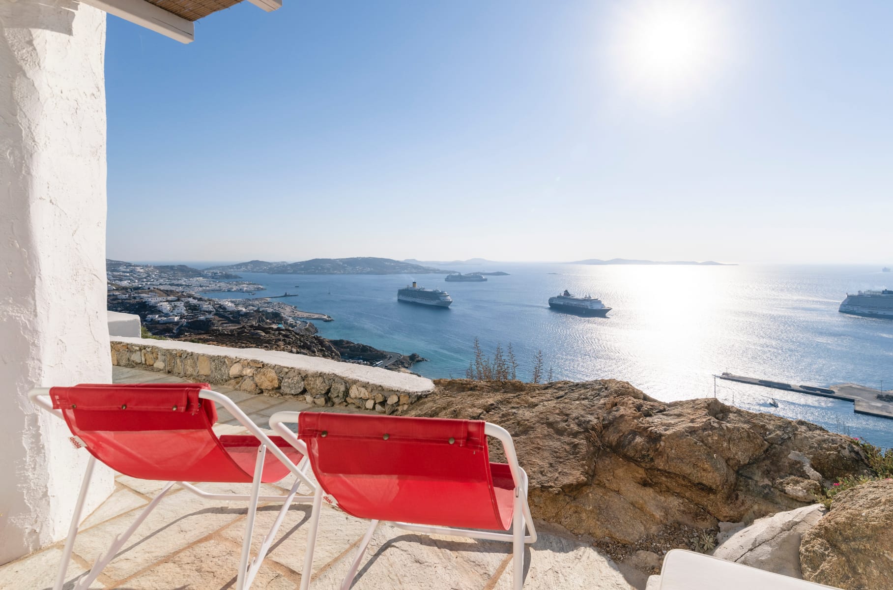 One of the most lovingly refurbished villas on Mykonos, Villa Papyrella indulges guests with sophisticated Cycladic hospitality and a feeling of being pampered by good friends. The villa boasts a 180-degree panorama of Cycladic islands and Mykonos town, offering unparalleled sea & sunset view. All bedrooms have direct access to this impeccable sea view.